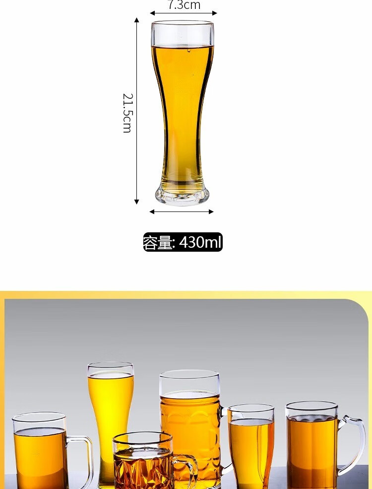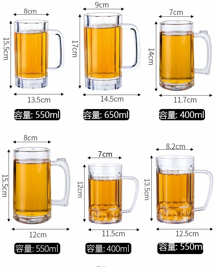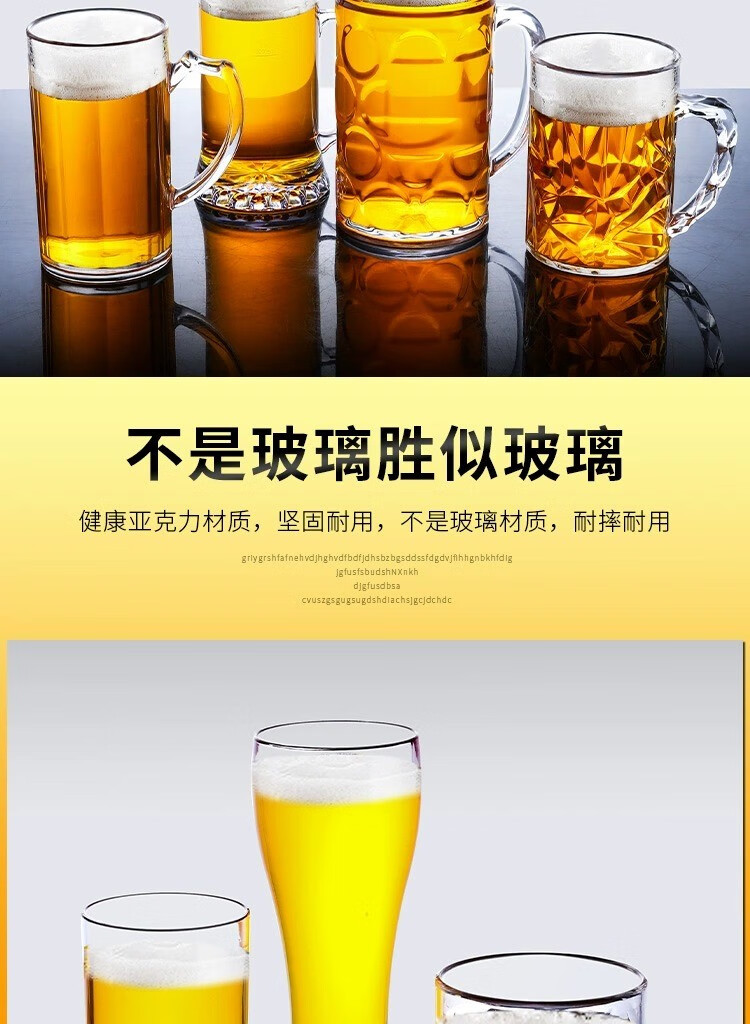 Lugaris acrylic beer cup is not broken, large-capacity draft beer cup, plastic tea cup, anti-fall KTV bar commercial home, reinforced and thickened No. 2 double-drinking beer cup b-430ml