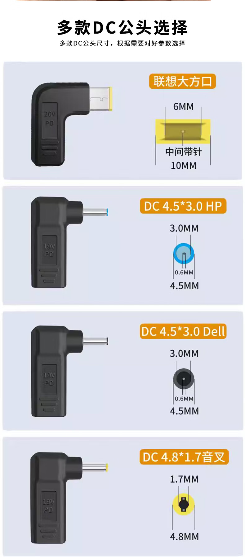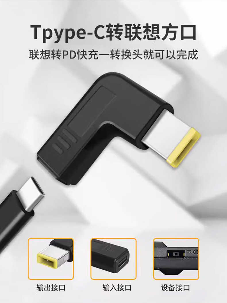 USB-C to square port with pin DC converter TYPEC laptop power conversion connector TYPE-C female to Lenovo square port no specifications