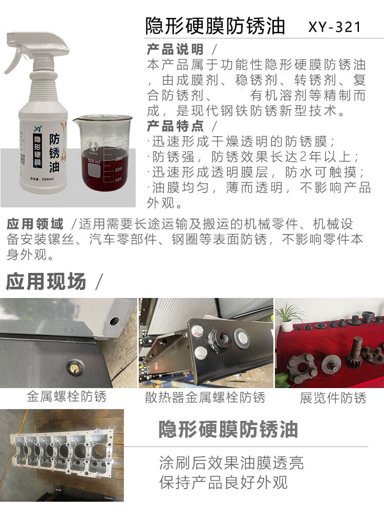 Metal surface rust removal and anti-rust oil mold special long-lasting anti-rust agent transparent hard film anti-rust oil film stainless steel vapor phase anti-rust oil (1L) comes with gloves