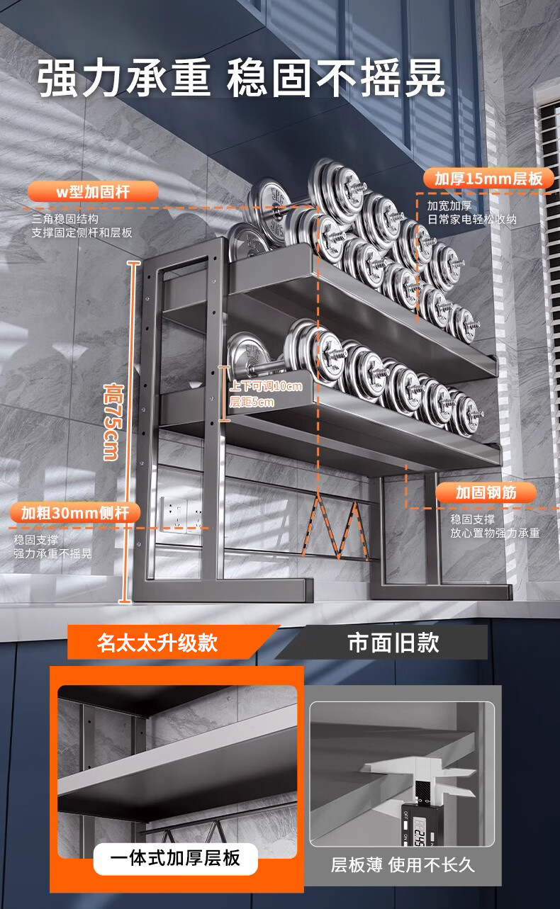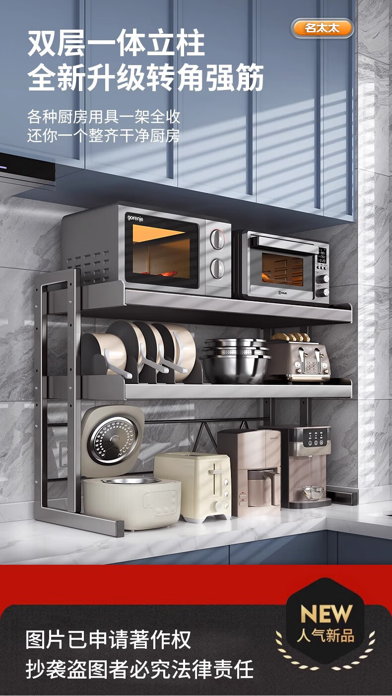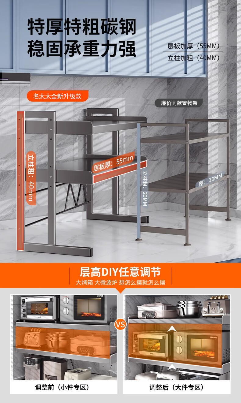 Mrs. Kitchen Microwave Rice Cooker Storage Rack Countertop Heightened Extended Microwave Shelf Adjustable Oven Storage Rack Special Offer * Three Layers 80cm Main Rack