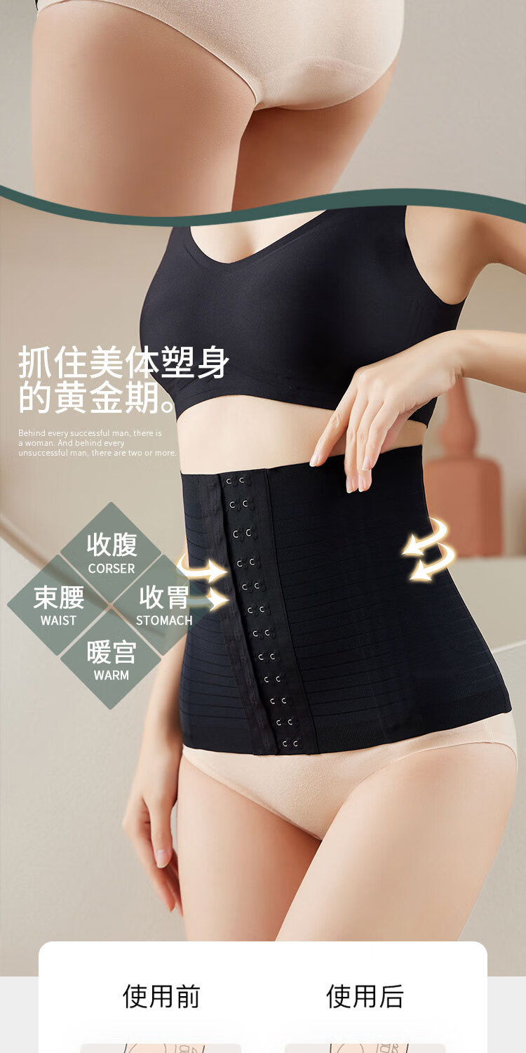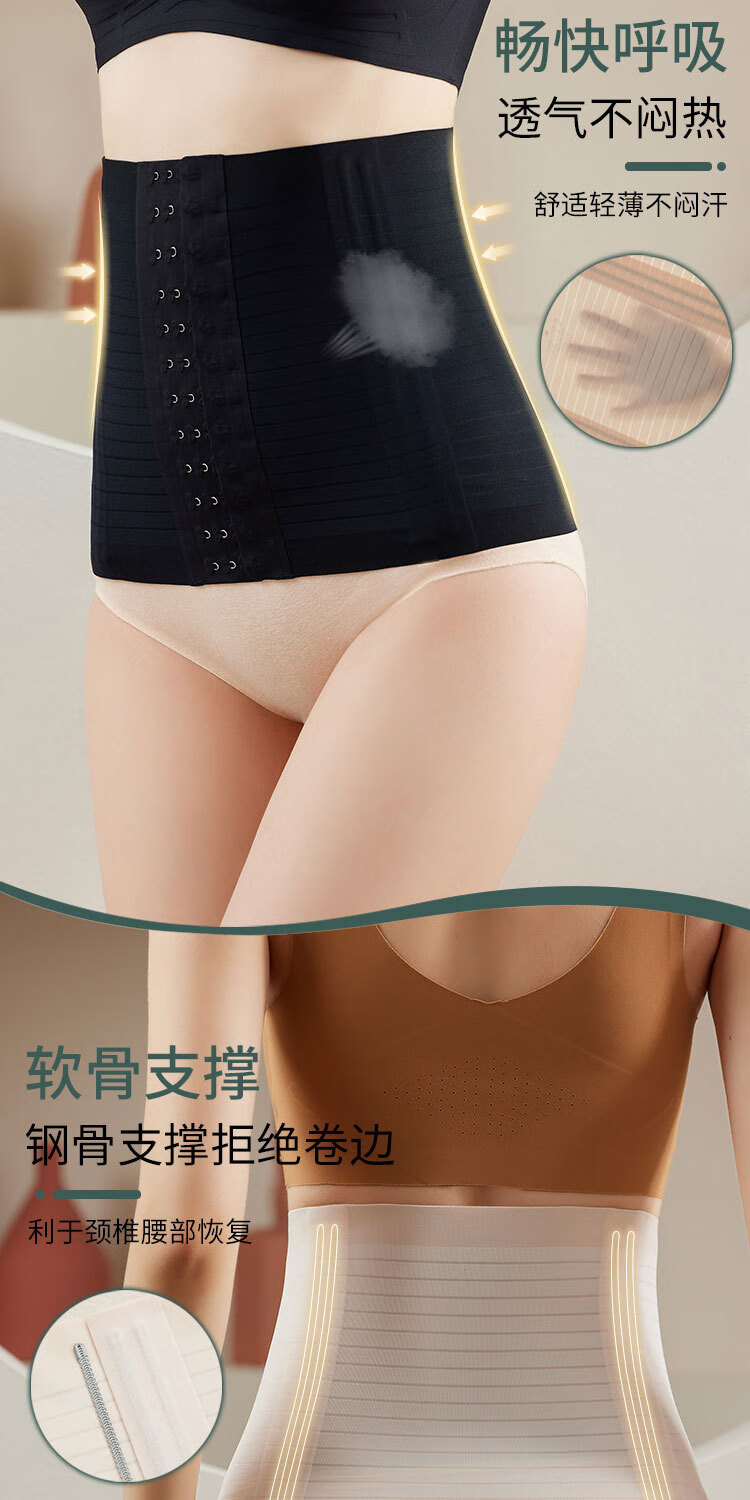 Waist corset and abdominal belt for women's sports and fitness postpartum body shaping and abdominal belt summer thin black M