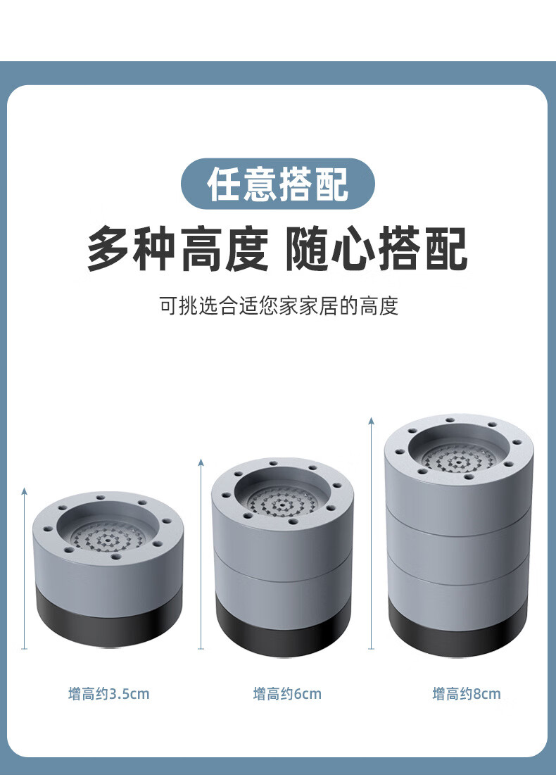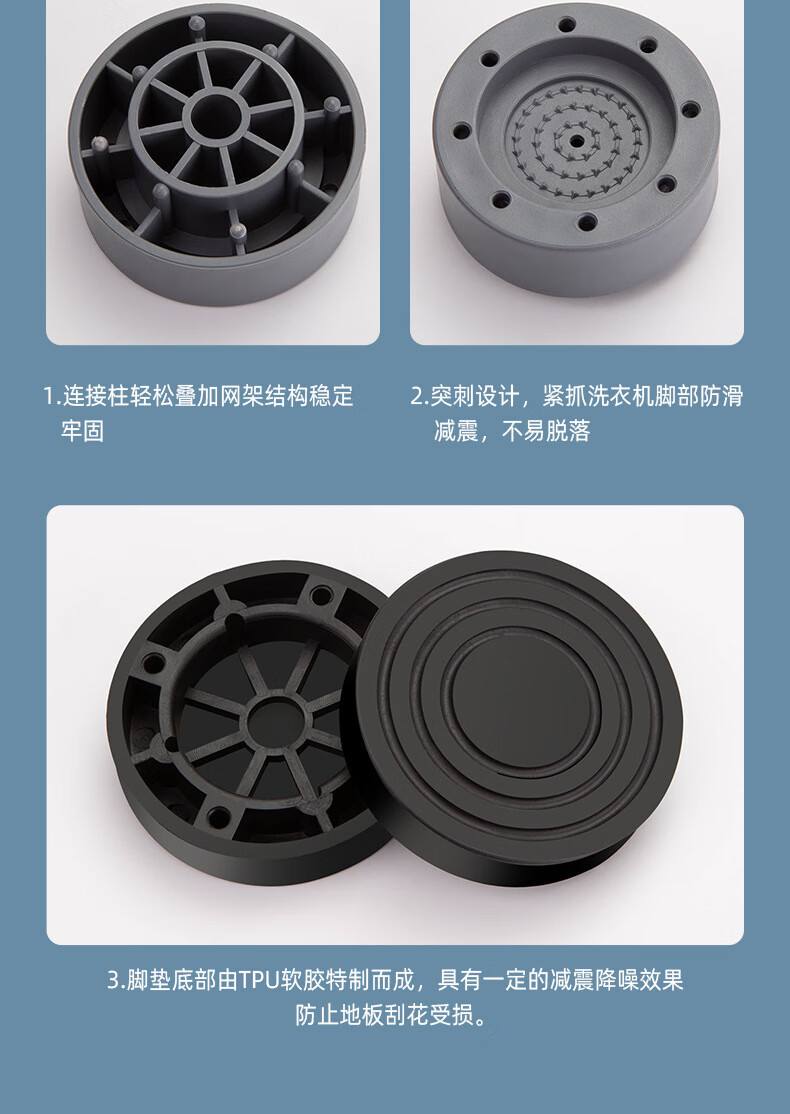 Washing machine base universal silent heightening suitable for Haier Little Swan moisture-proof and shock-proof pad refrigerator heightening foot pads gray heightening foot pads 3.5cm 4 pack