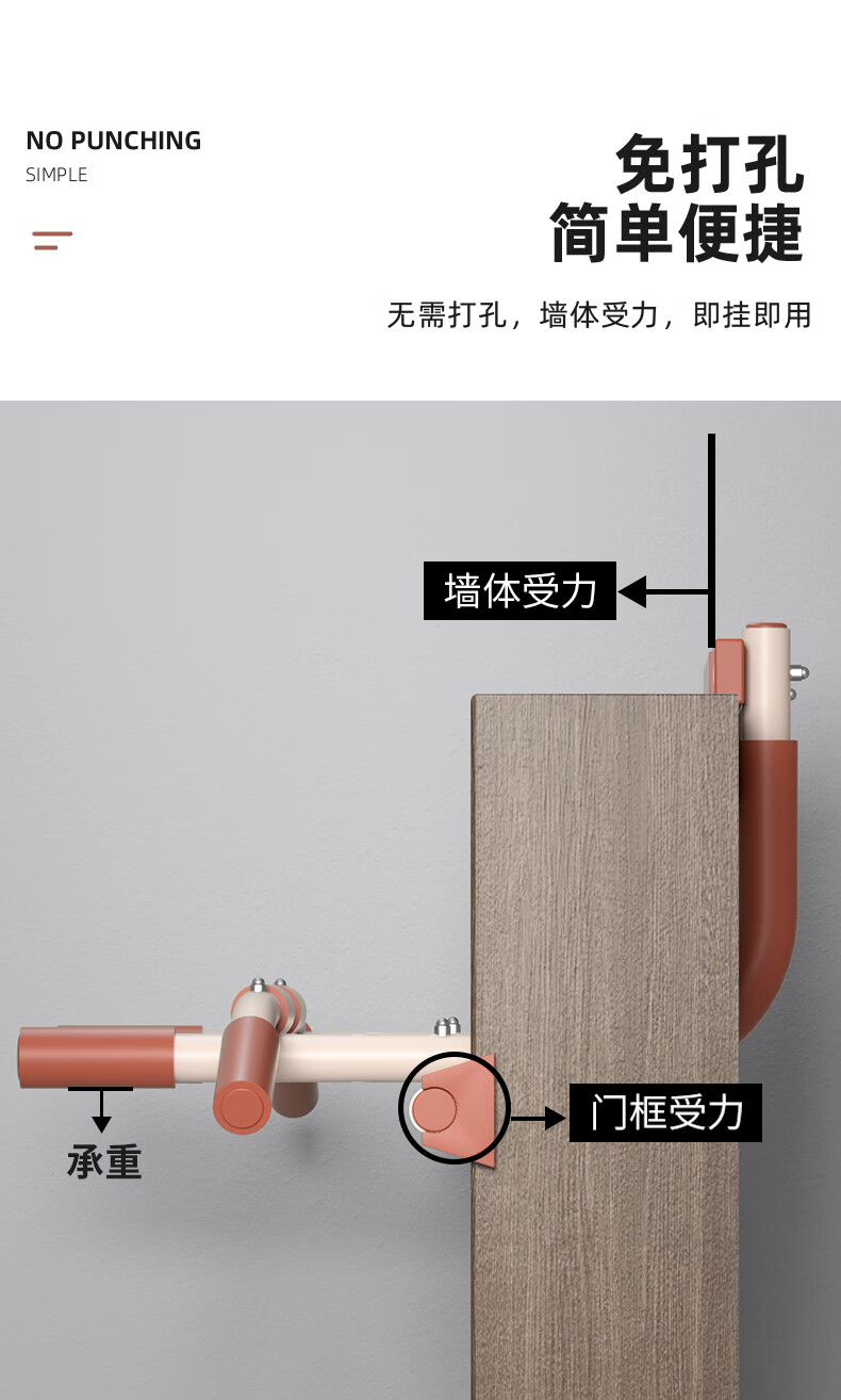 Ames horizontal bar indoor home pull-up device family door children's ring parallel bar door frame punch-free fitness equipment milky latte
