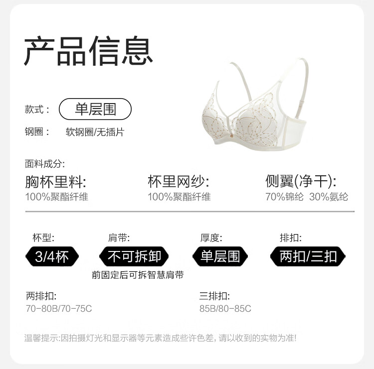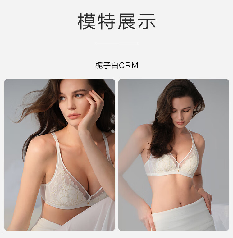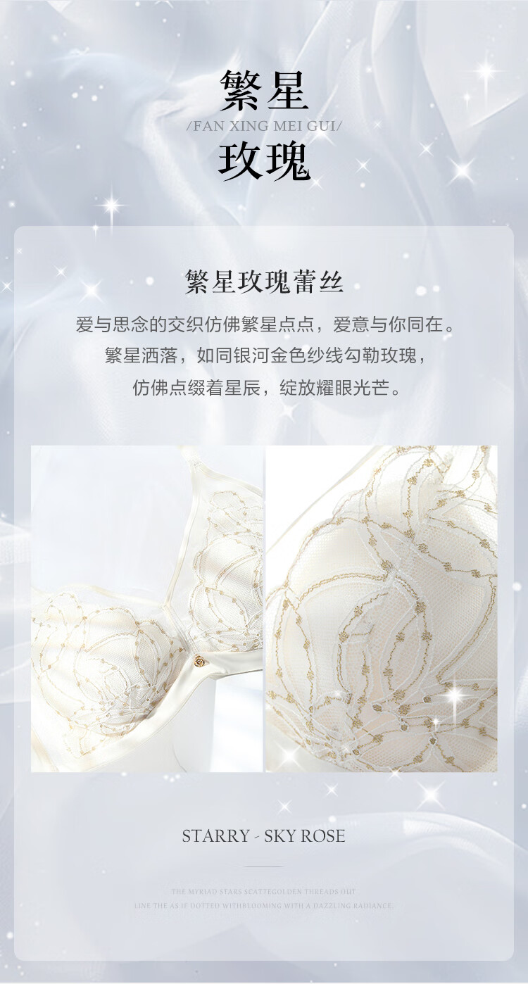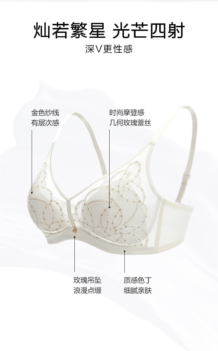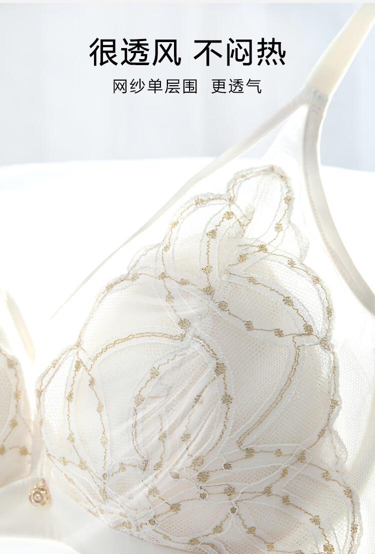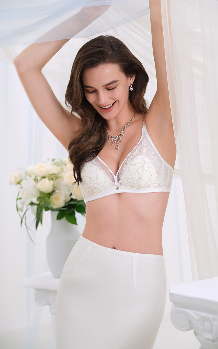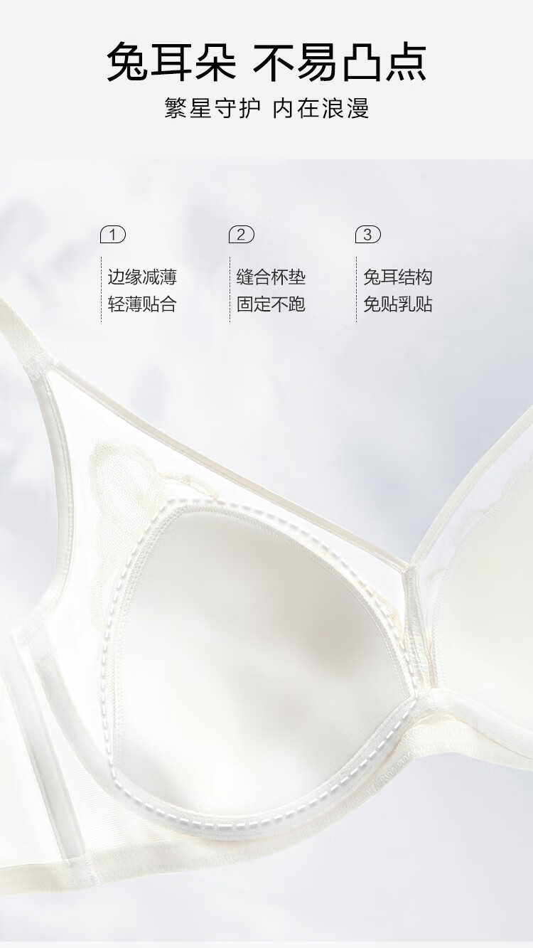 Embry Starry Rabbit Ears Set Light Luxurious Lace Single Layer Bra Women's Anti-Bump Triangular Cup Underwear Gift Gardenia White CRM 85B XL