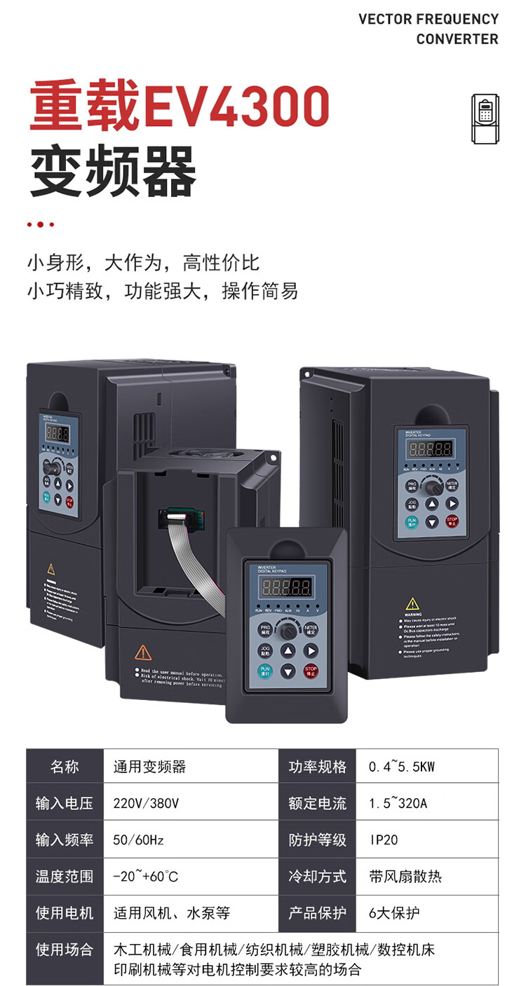 Frequency converter three-phase 380v single-phase 220v/1.5/2.2/5.5/7.5 kilowatt 11kw motor water pump speed regulator heavy load-37kw-three-phase 380v in/three-phase 380v out