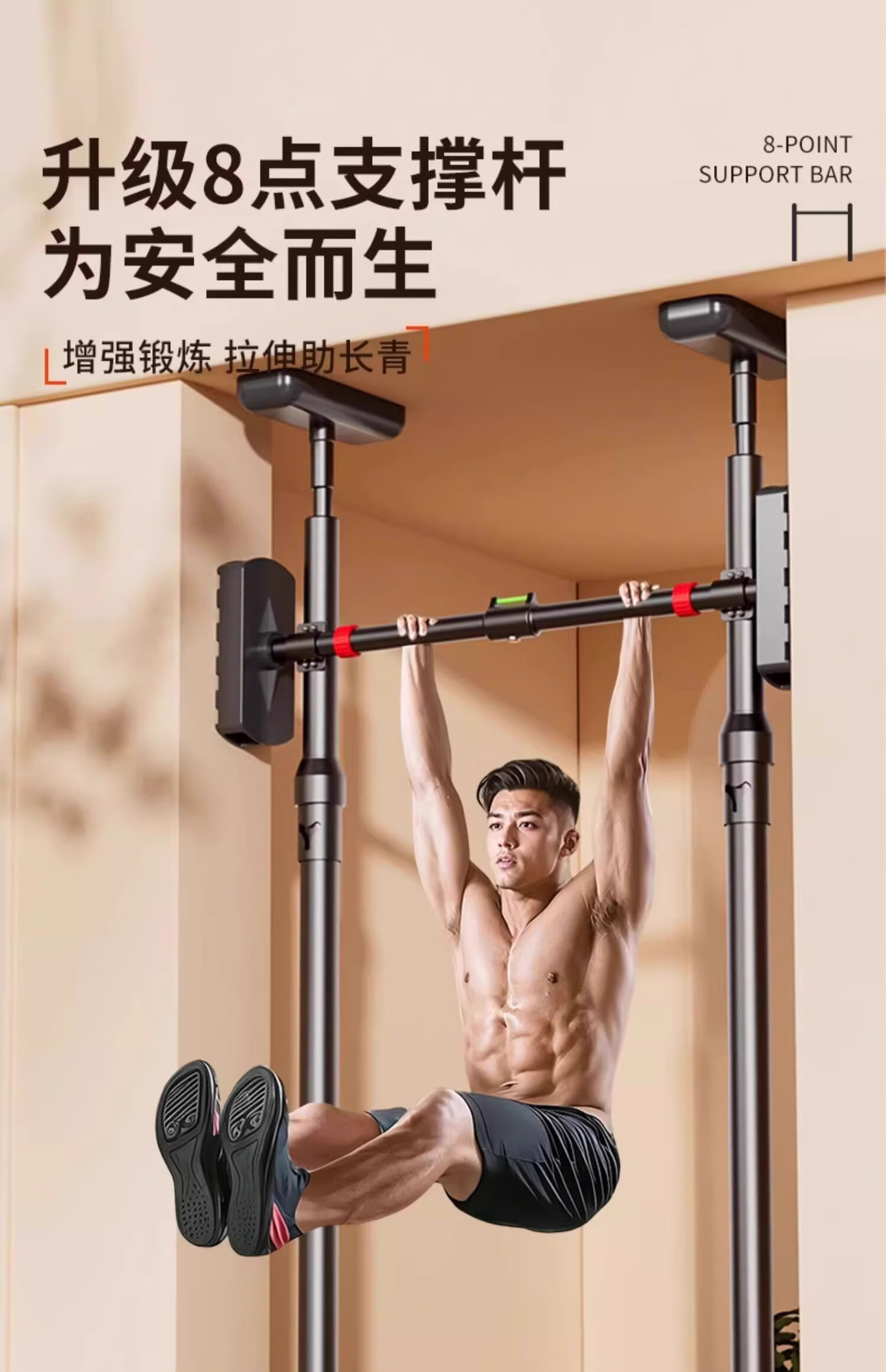 Maifeit horizontal bar home indoor wall fixed pull-up no punching floor-standing adult home fitness children's boom horizontal bar + ring suitable for width 90-115cm non-firm return/safe anti-slip