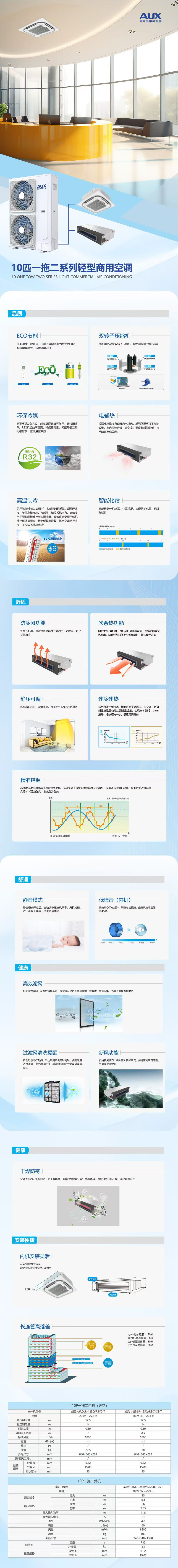 Oaks central air conditioner 10 HP one to two 5 HP ceiling unit frequency conversion cooling and heating 10p first class energy efficiency 5 HP duct unit ceiling air conditioner commercial office patio unit 380V 10 HP one to two with two 5 HP duct internal units