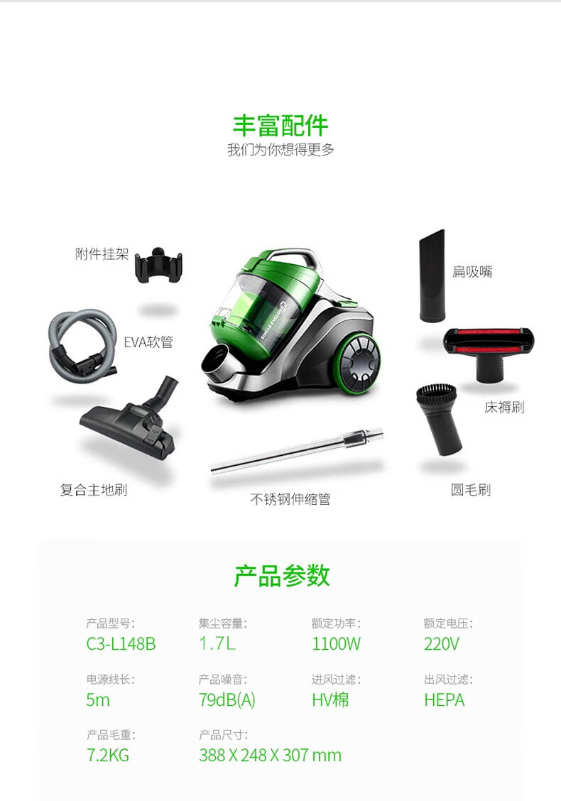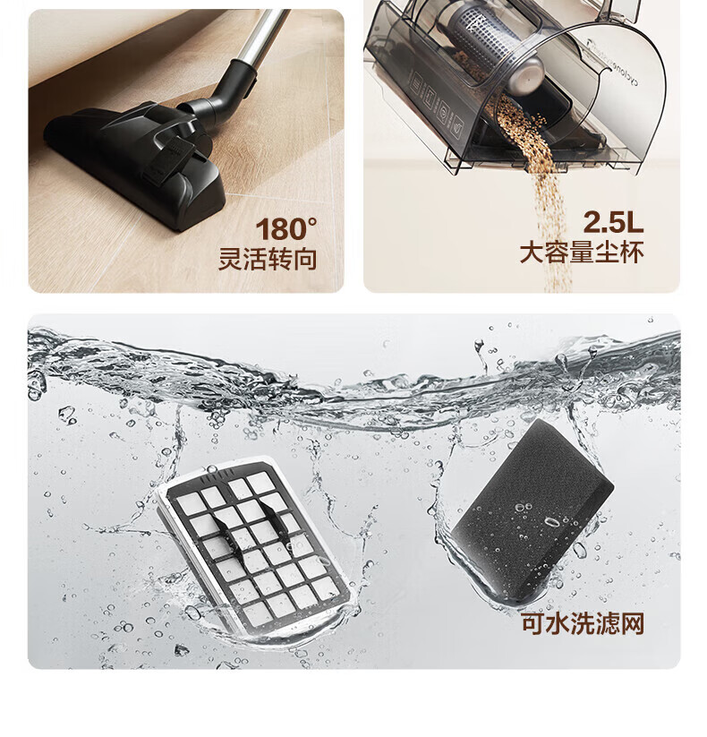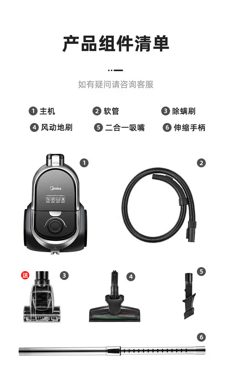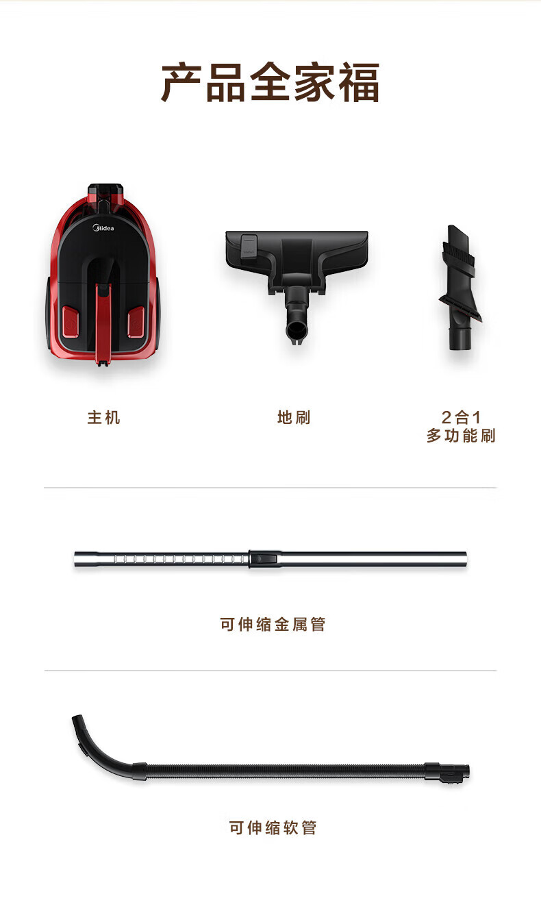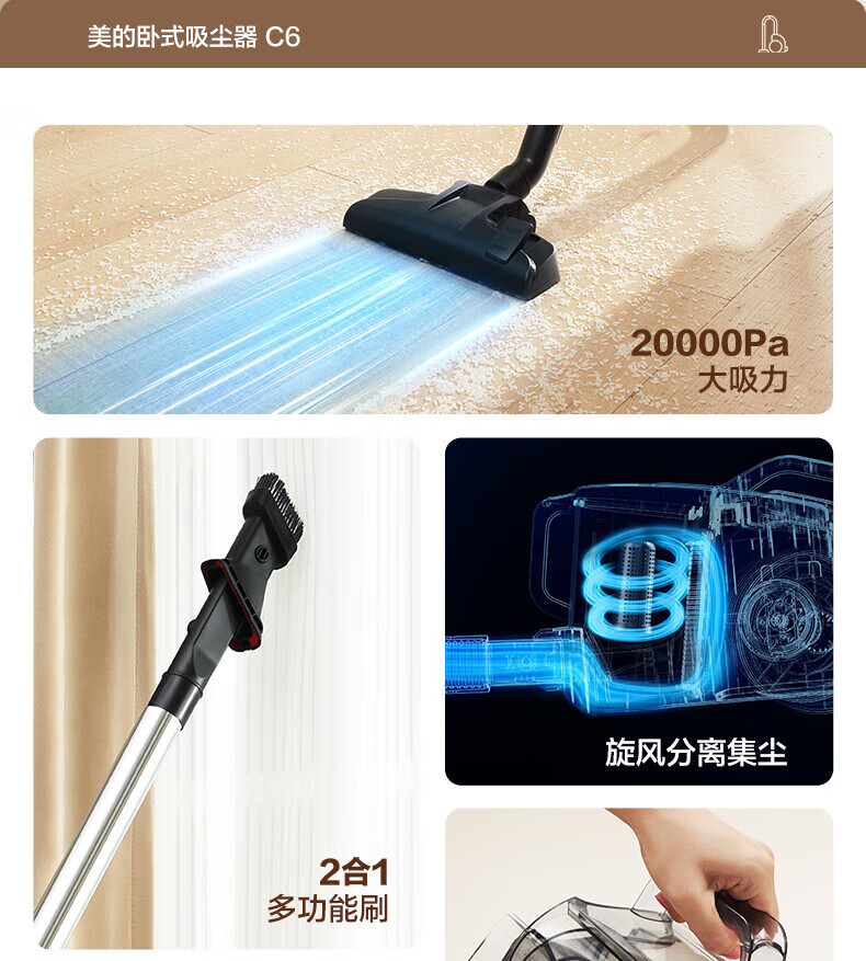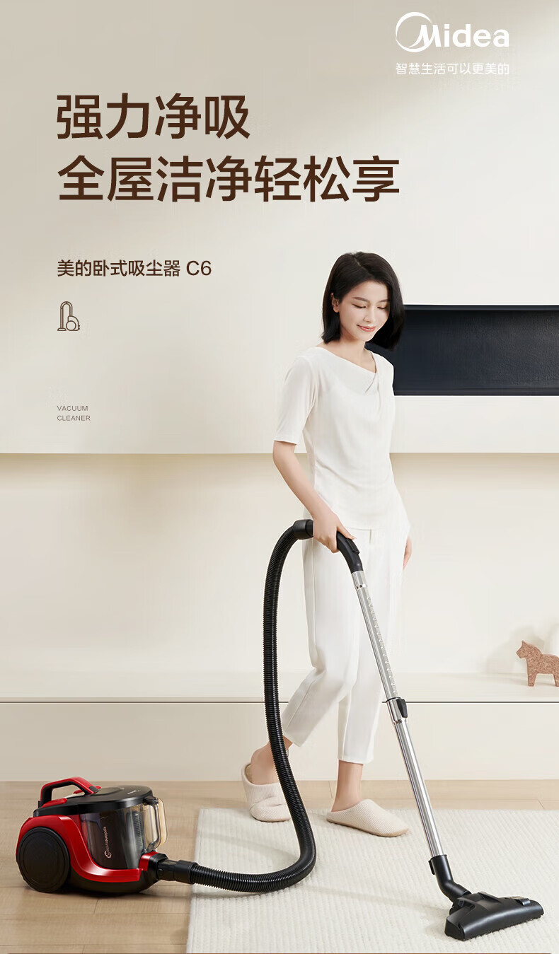 Midea vacuum cleaner home wired handheld horizontal large suction multi-purpose carpet cleaning machine high-power vacuum mite remover C6 strong suction one-click cord retraction 20000Pa