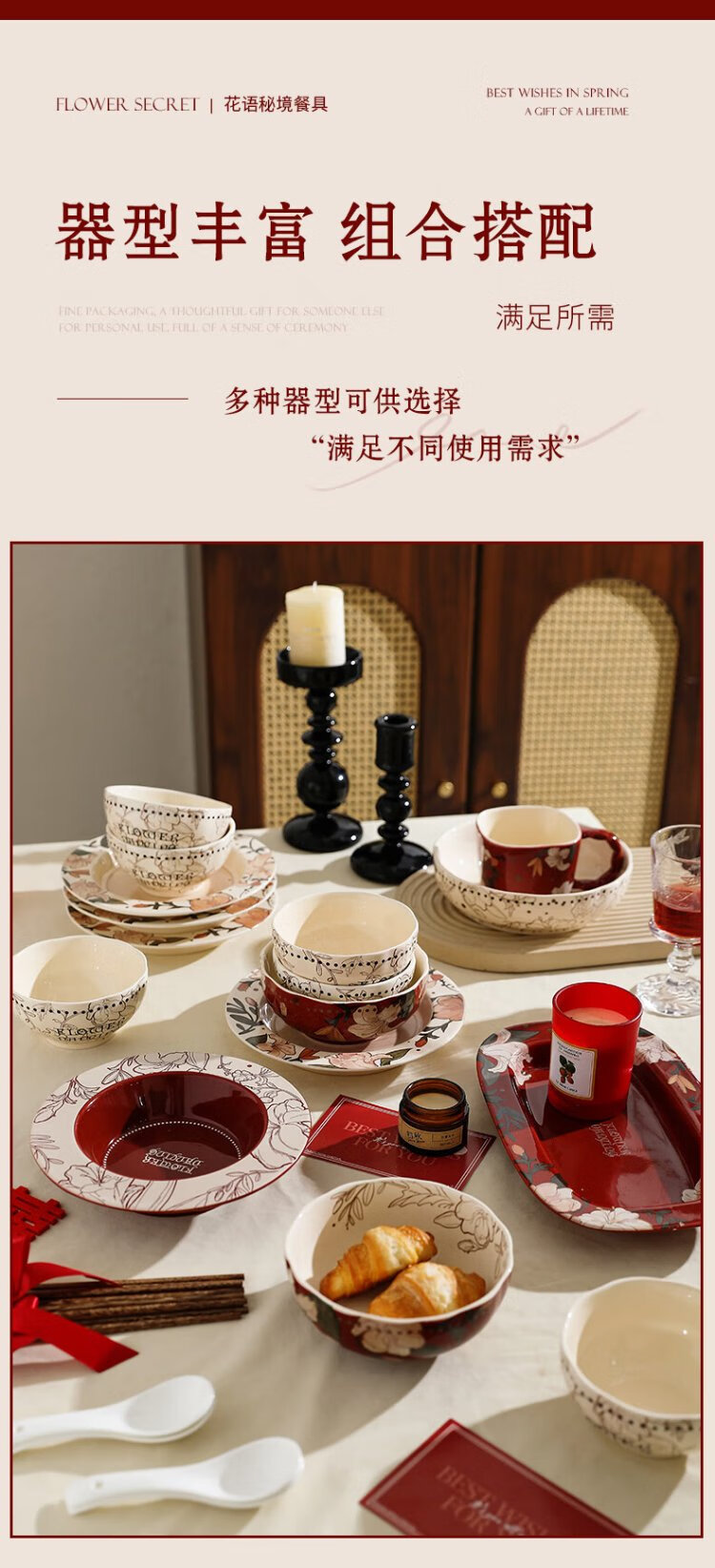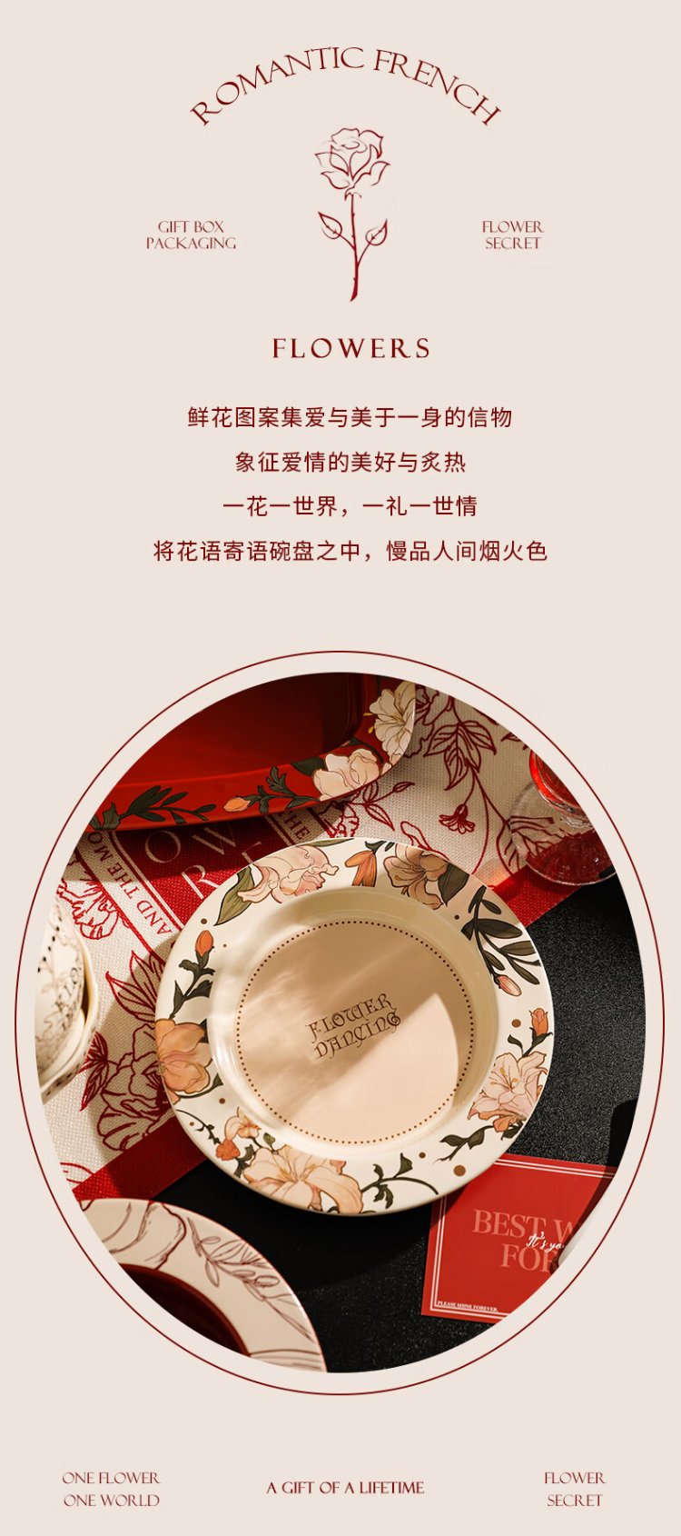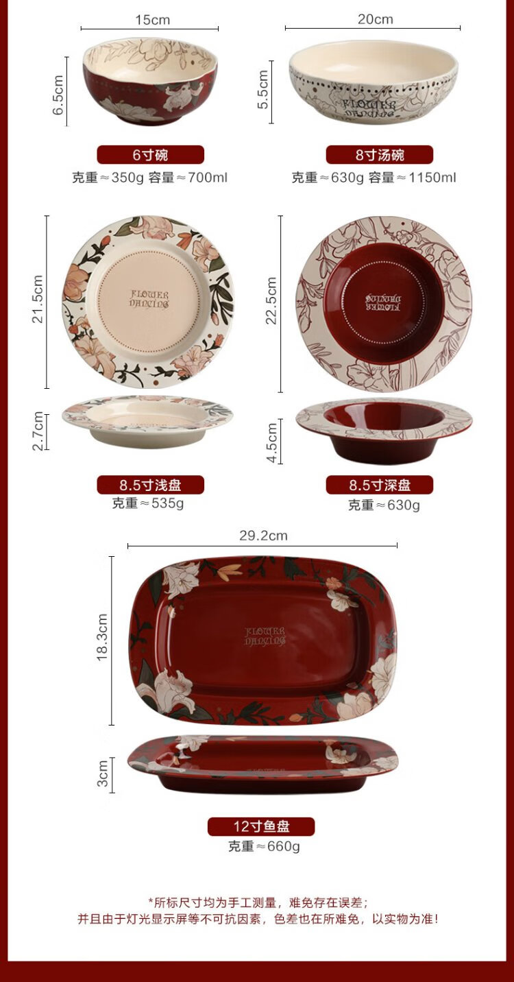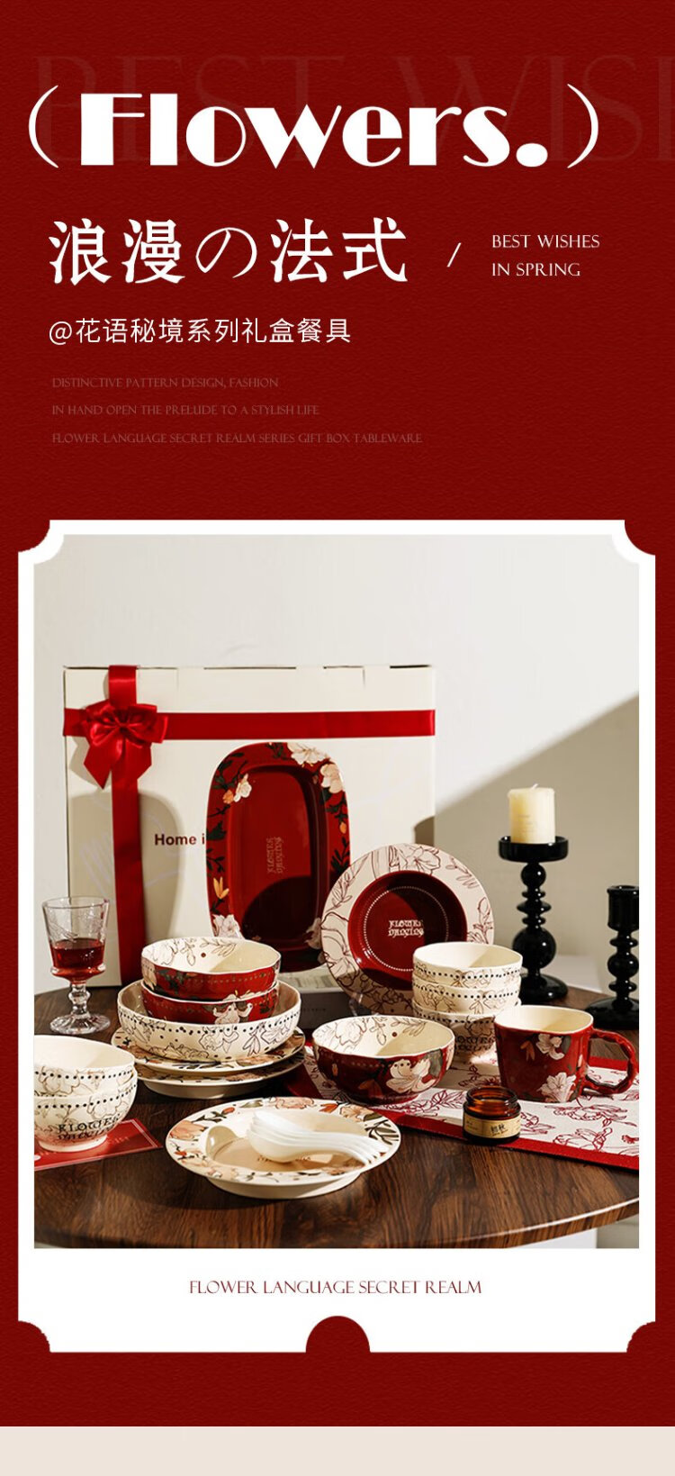 Sherry French wedding tableware set engagement wedding gift for the bride red high-end bowls and plates housewarming gift box 17-piece set for 4 people with ribbon gift box exquisite gift box | can be steamed and baked