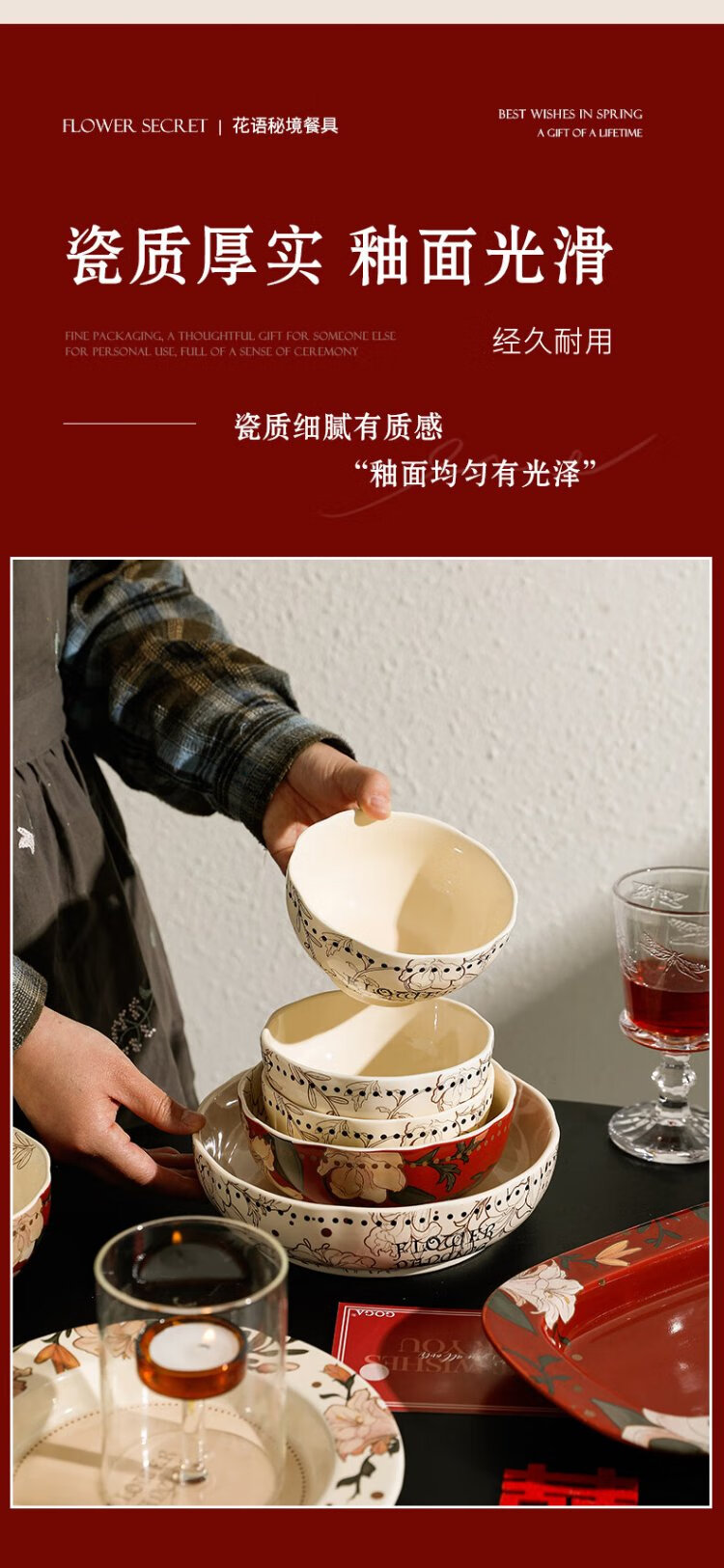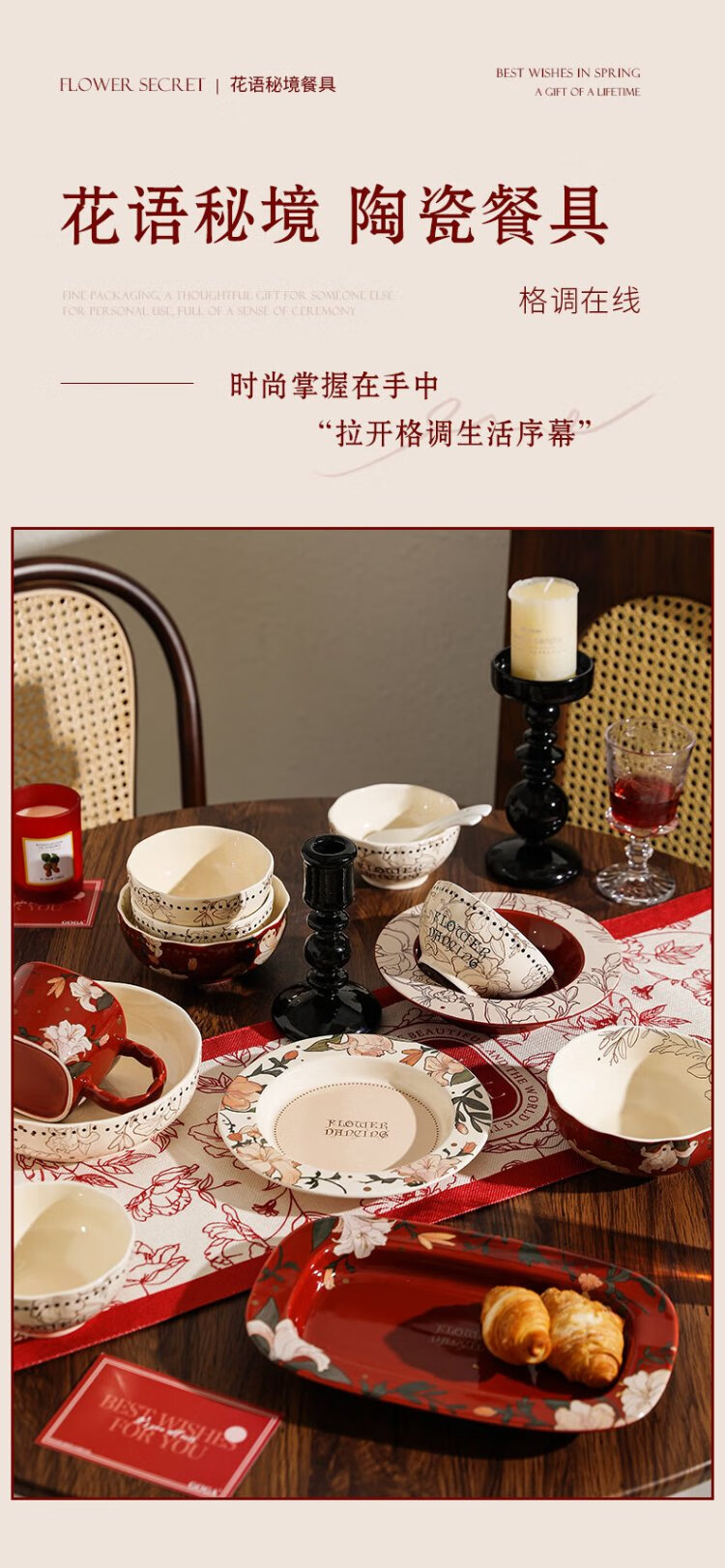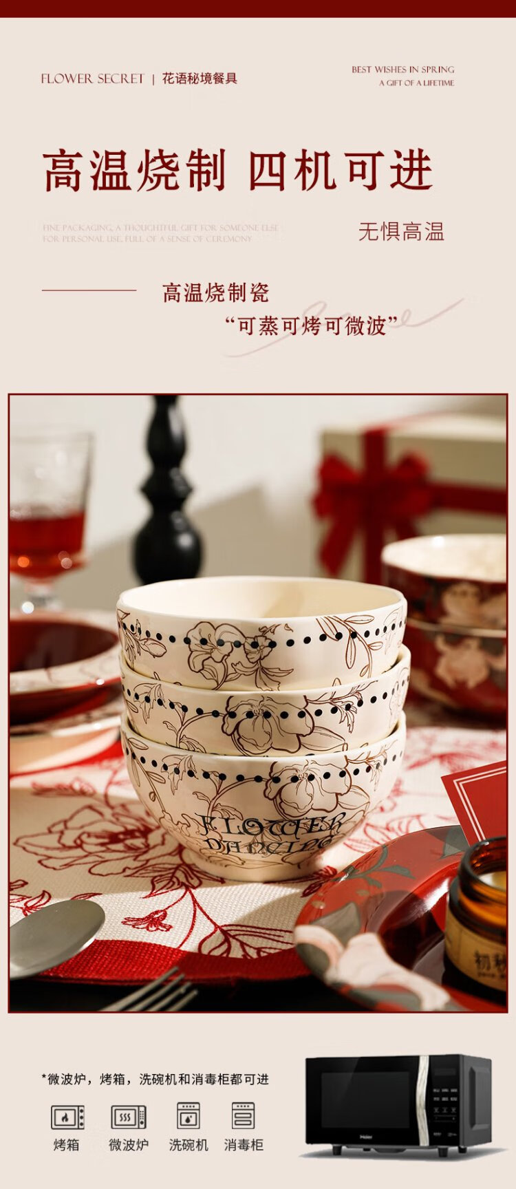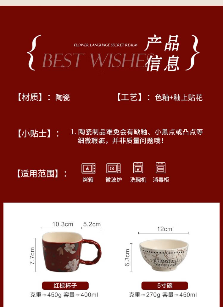 Sherry French wedding tableware set engagement wedding gift for the bride red high-end bowls and plates housewarming gift box 17-piece set for 4 people with ribbon gift box exquisite gift box | can be steamed and baked