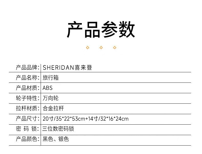 Sheraton (SHERIDAN) business travel trolley case, multi-purpose luggage, boarding code box, 20-inch + 14-inch combo trolley case, silver SHX807