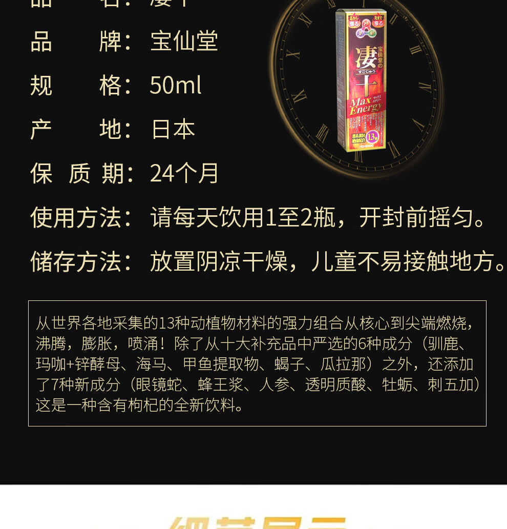 Directly mailed from Japan by Baoxiando, Qi Shi Maca Water enhances vitality, a magic weapon for men to quickly attack. Energy boils from the core to the tip. Qi Shi significantly improves 10 bottles (50ml/bottle)