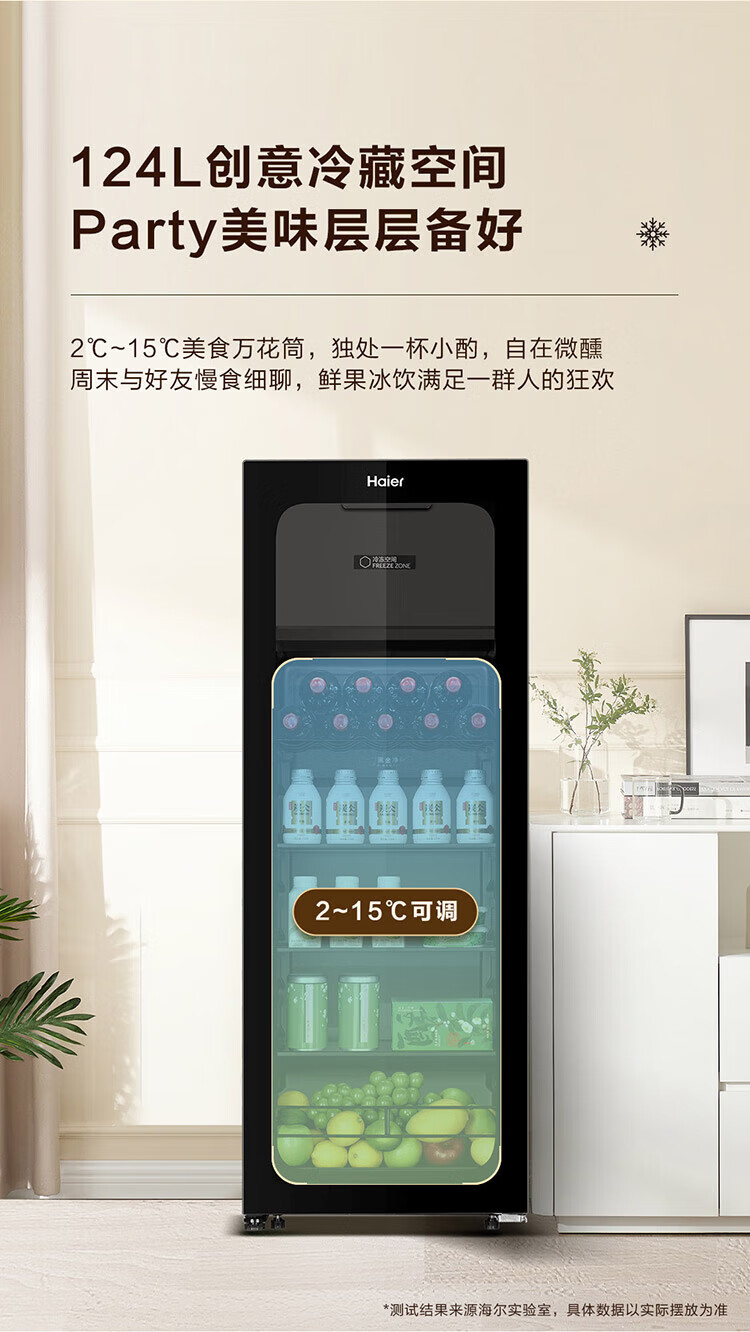 海尔冰吧136升冰吧酒柜双温分区存储茶叶饮料水果蔬菜美妆保鲜家用客厅办公室冷藏柜 136L