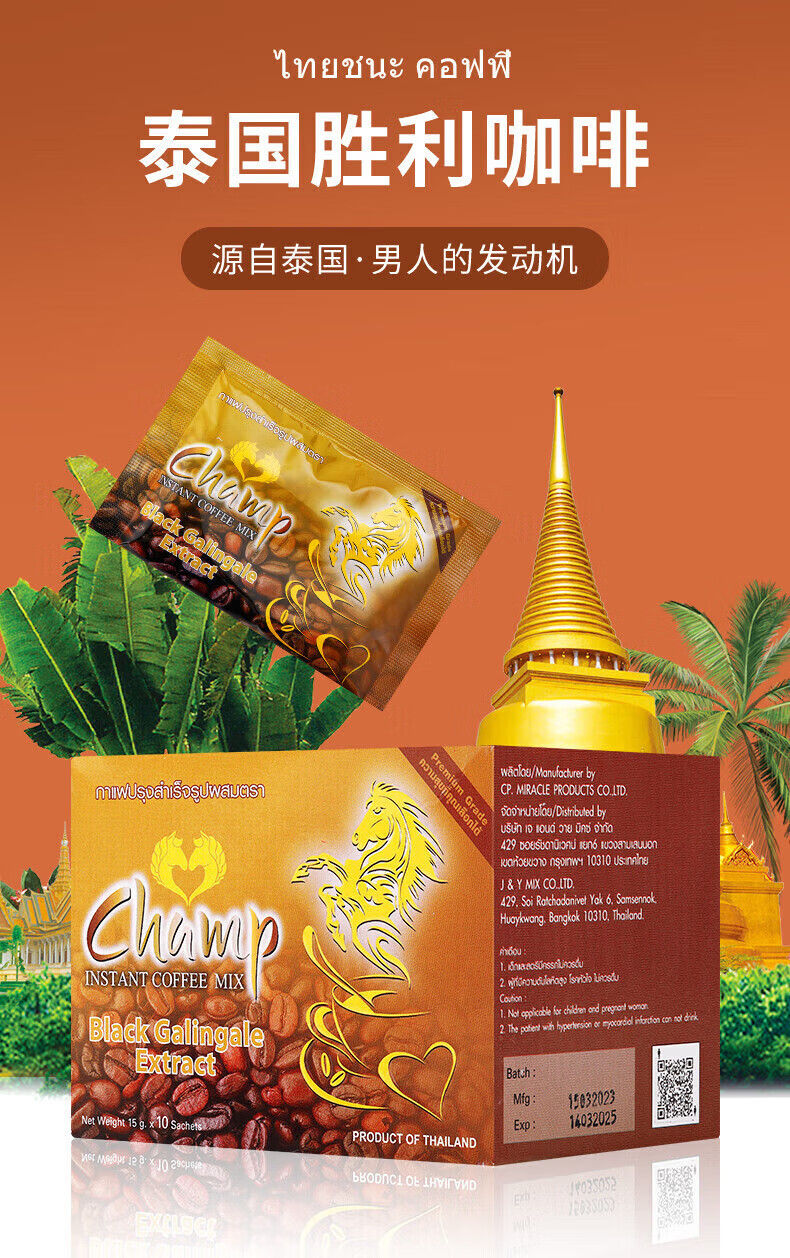 ERIC FAVREchamp Victory Thai Coffee Little Tiger Golden Horse Men's Adult Energy Coffee Original Fubaishi 1 box 10 bags Victory Thai Coffee/Thailand Direct Mail