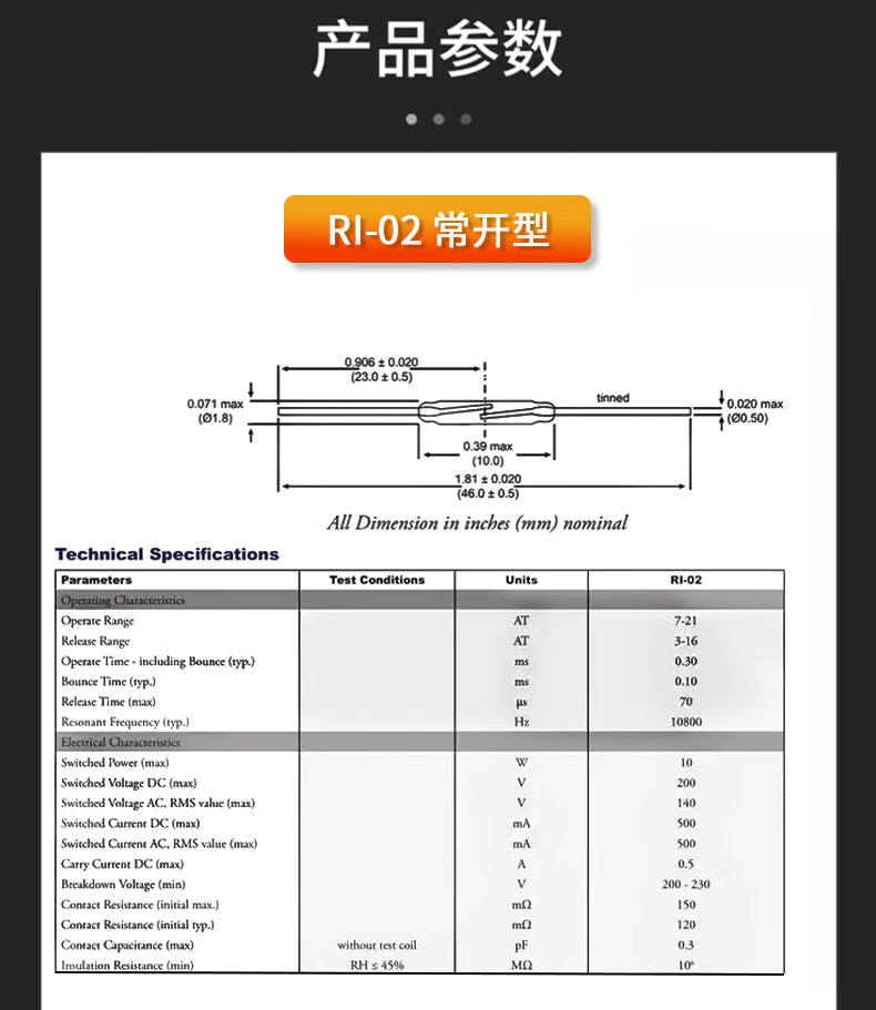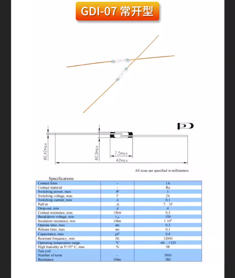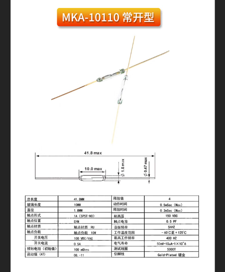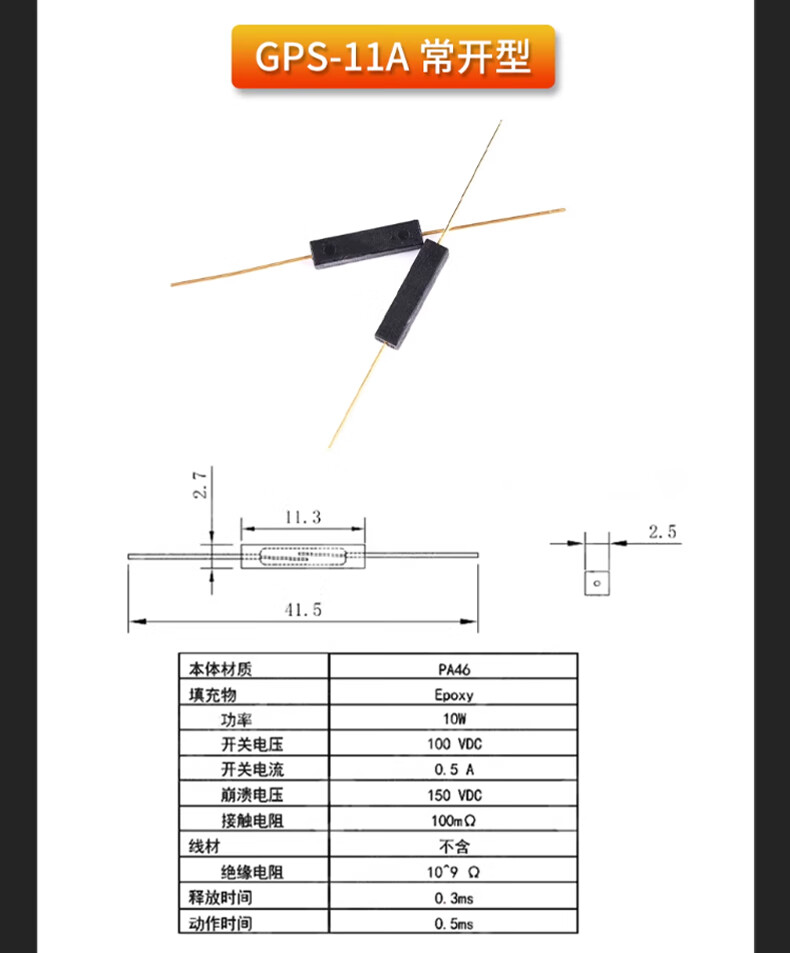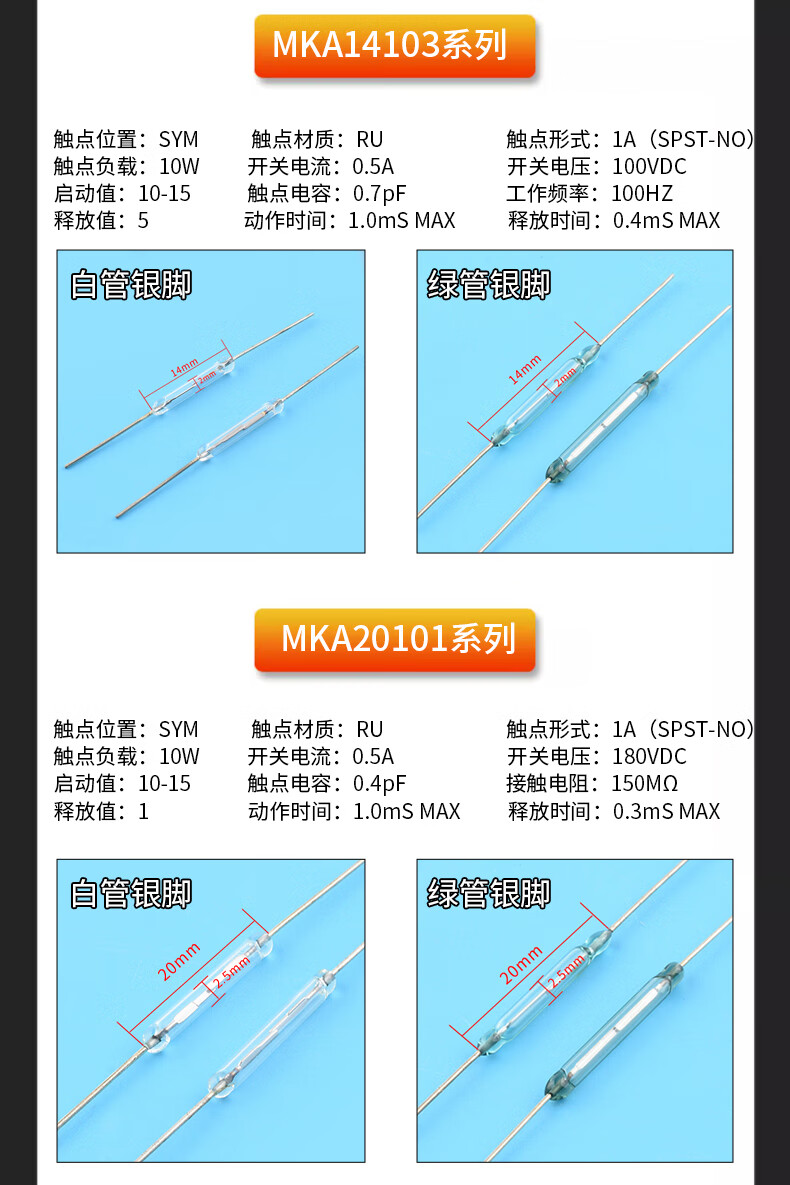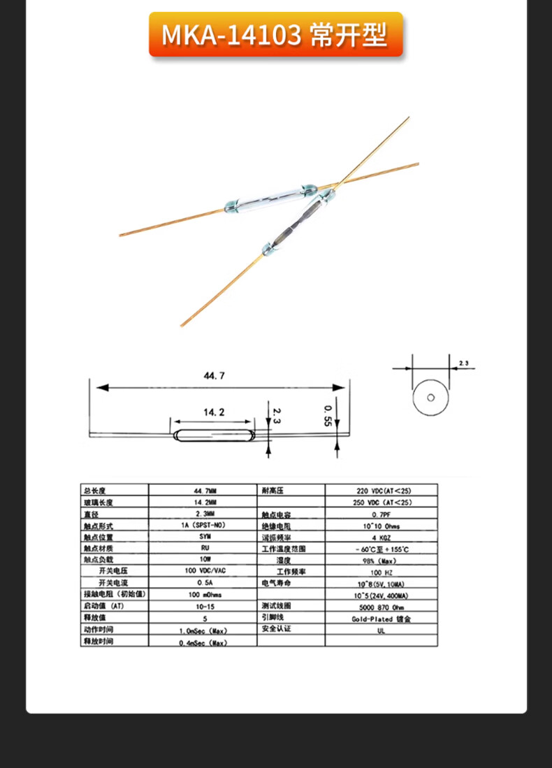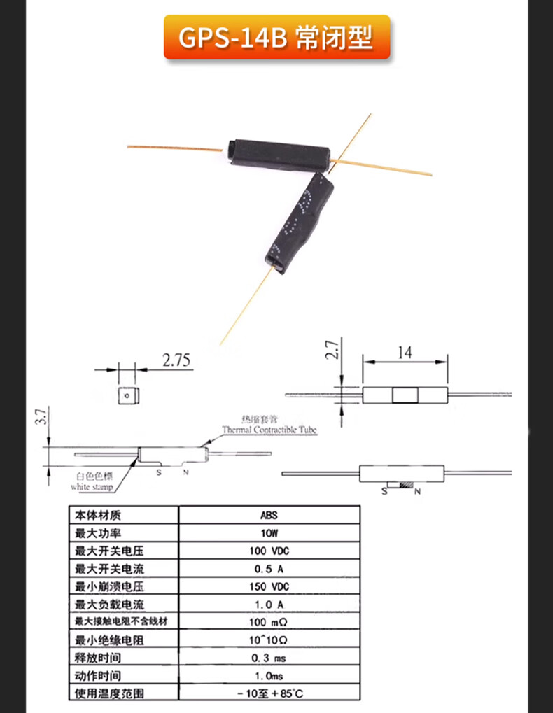 DZQJMKA14103 reed switch normally open type normally closed anti-vibration anti-damage magnetic switch gold-plated glass GPS-11A 14MM RI-70 normally open type (5 pieces)