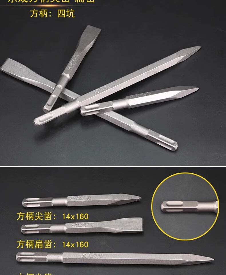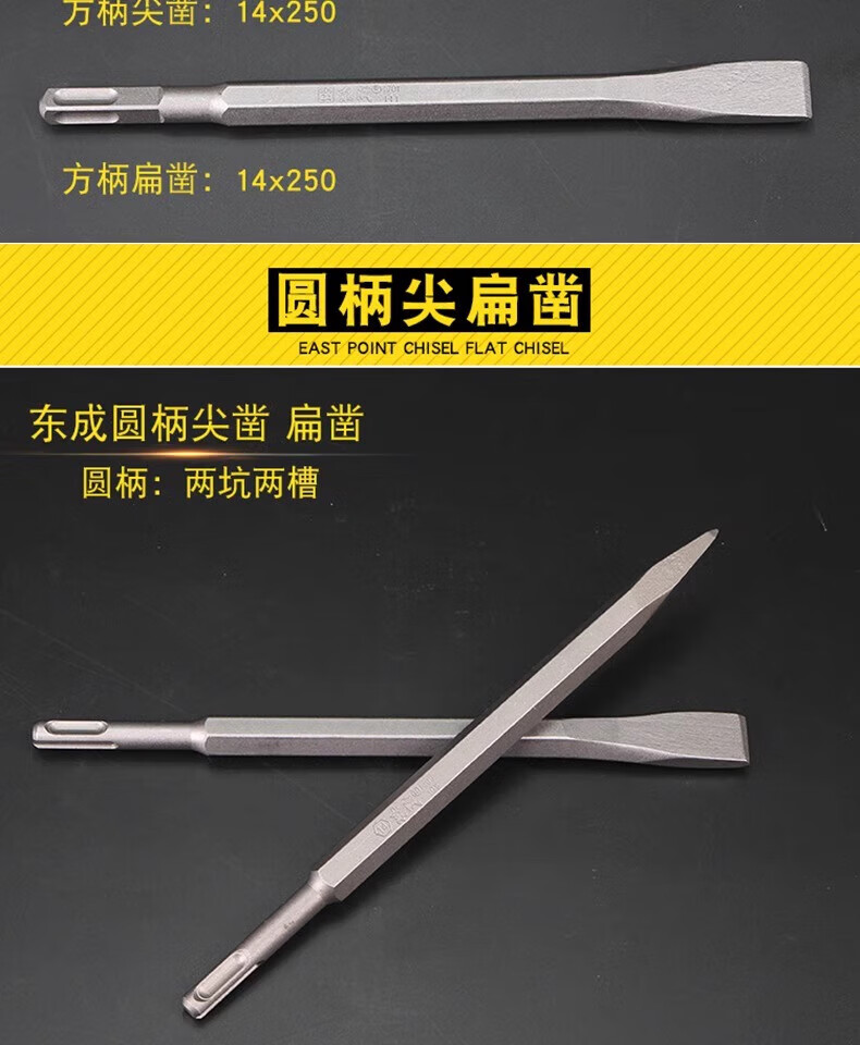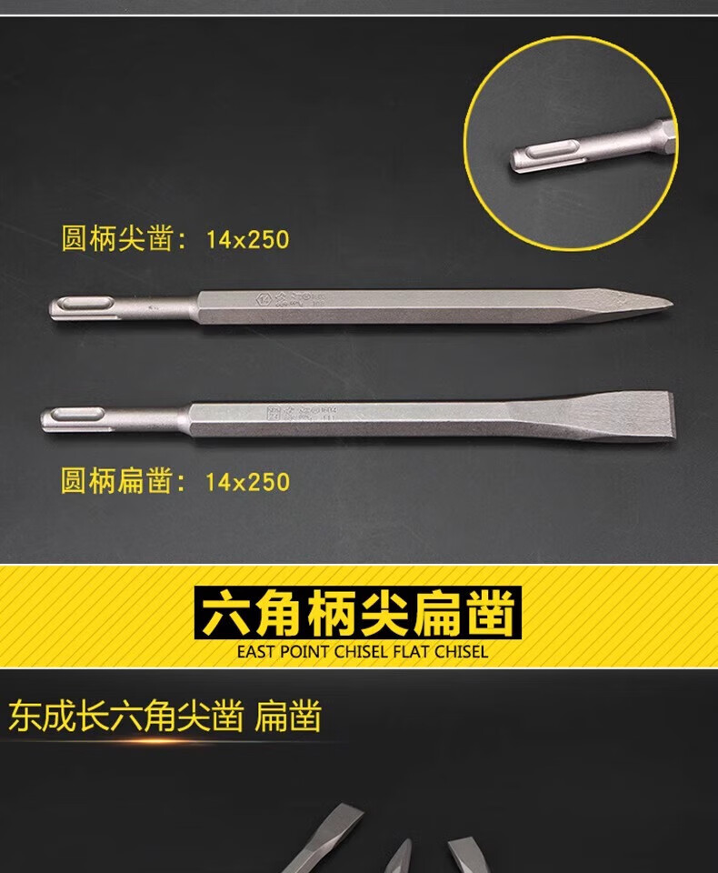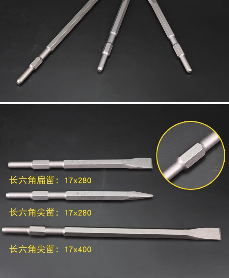 Dongcheng electric hammer chisel impact drill bit electric pick tip chisel pickaxe flat chisel square handle round handle hexagonal handle widened and lengthened shovel long hexagonal tip chisel-17X280