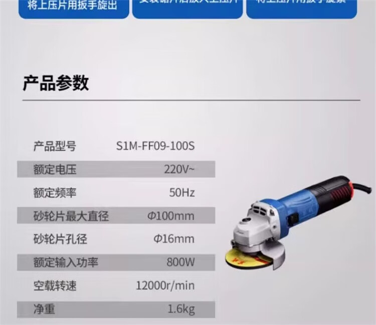 Dongcheng angle grinder 800W multifunctional 100 type cutting and polishing power tool S1M-FF09-100S 800W/side opening
