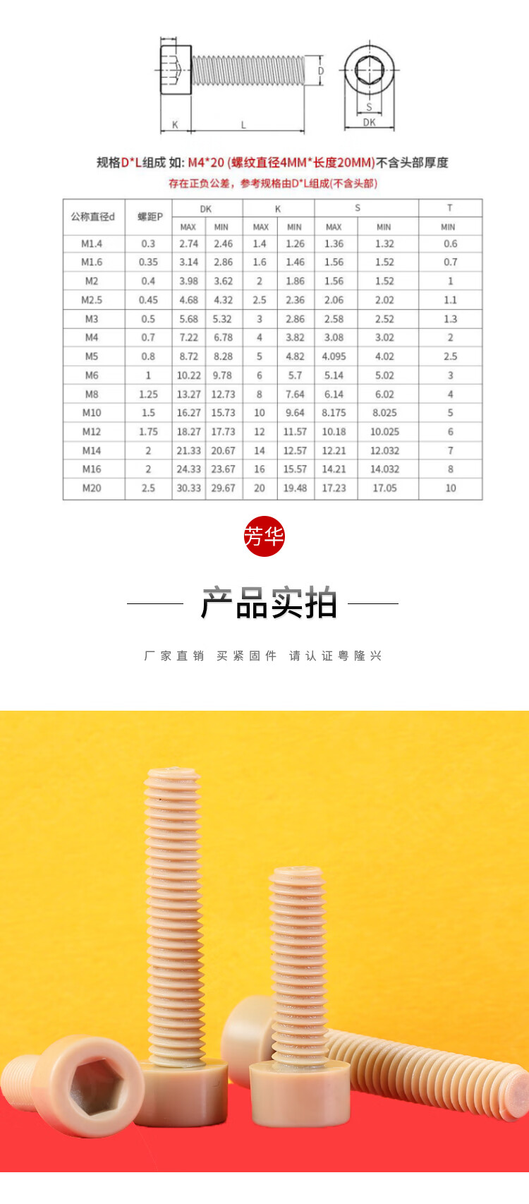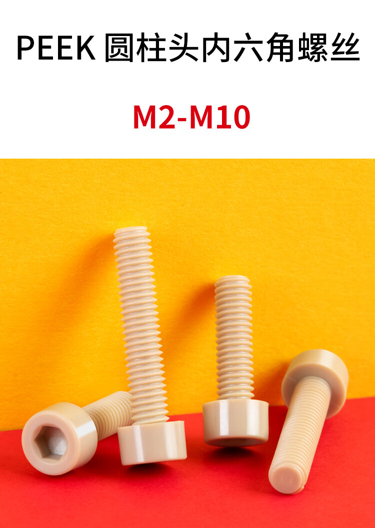 Bingneng PEEK high temperature resistant insulating cylindrical head hexagonal screw nylon plastic cup head screw M2M2.5M3M4-M20 M8*12 (1 piece)