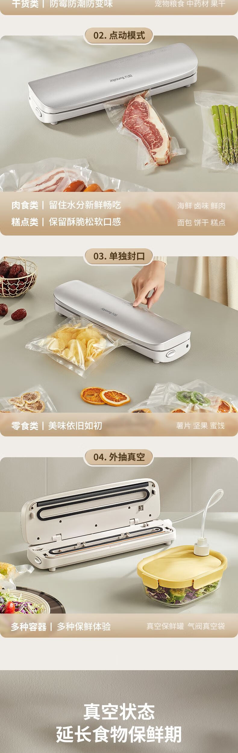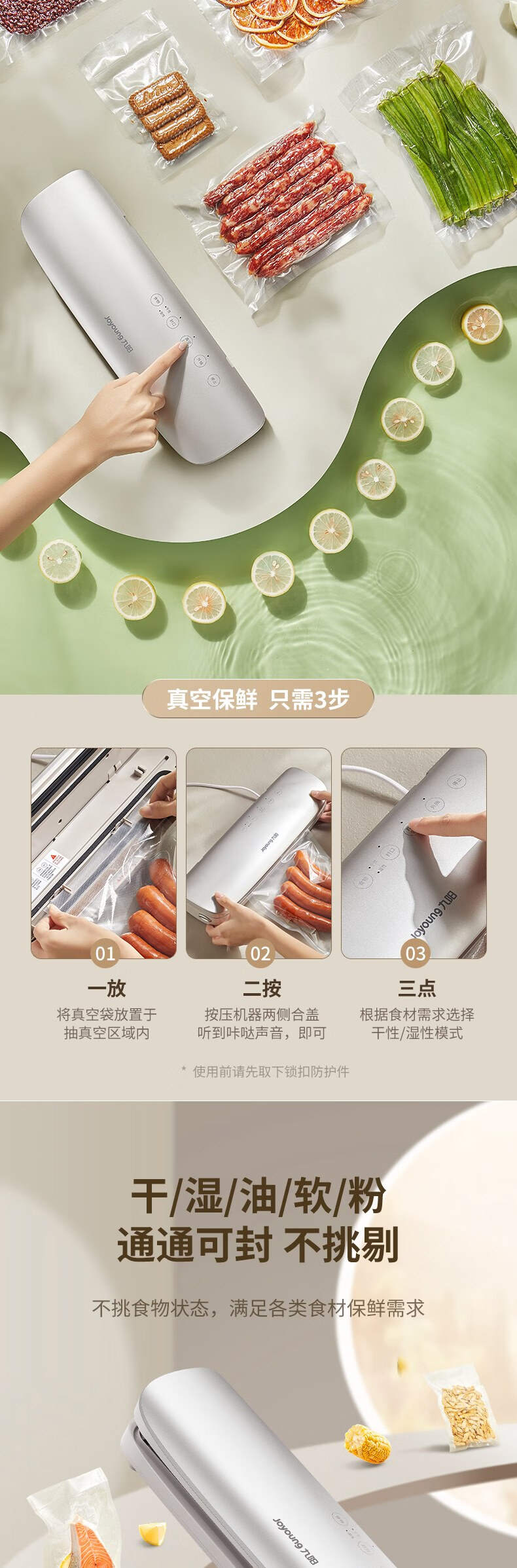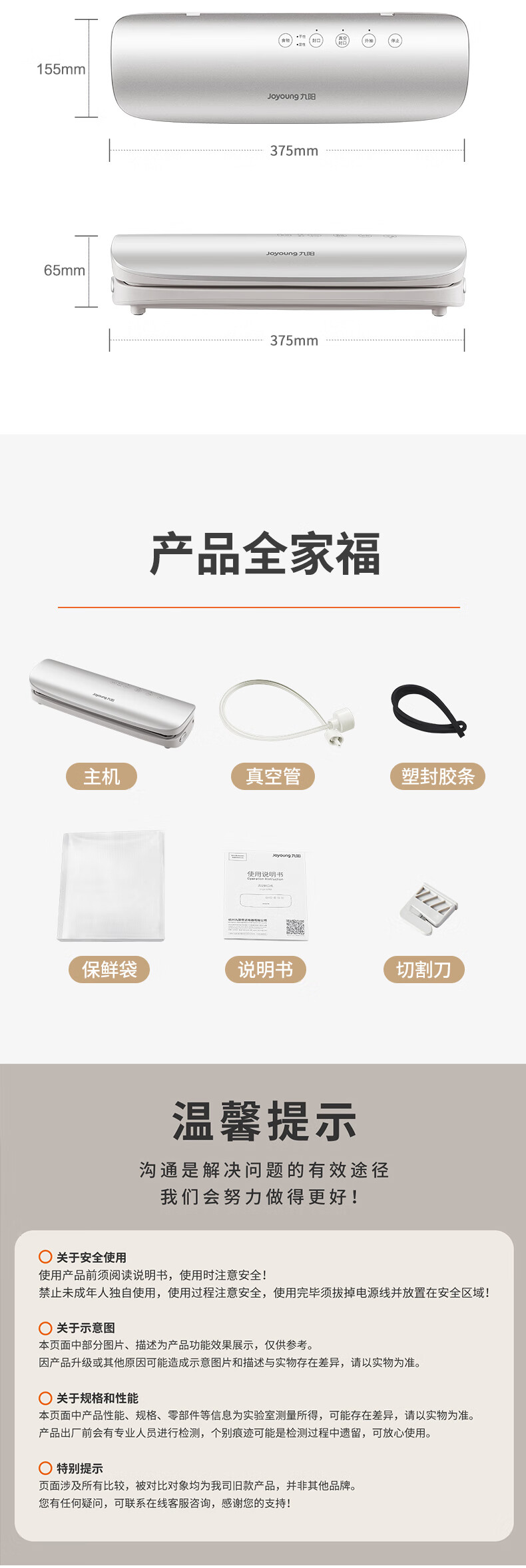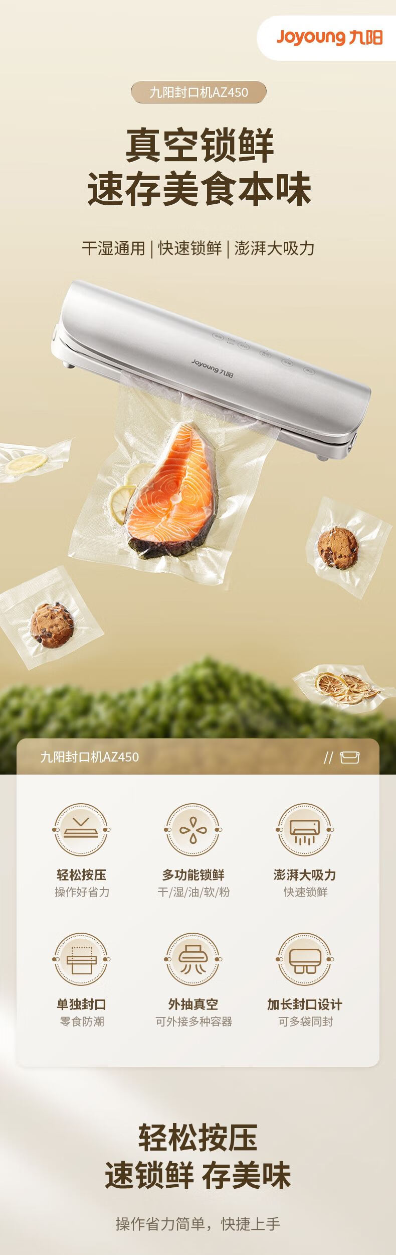 Joyoung sealing machine, household vacuuming, air-preservation and plastic sealing, special packaging bag sealing vacuum machine AZ450 specifications