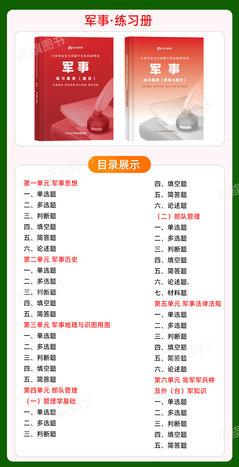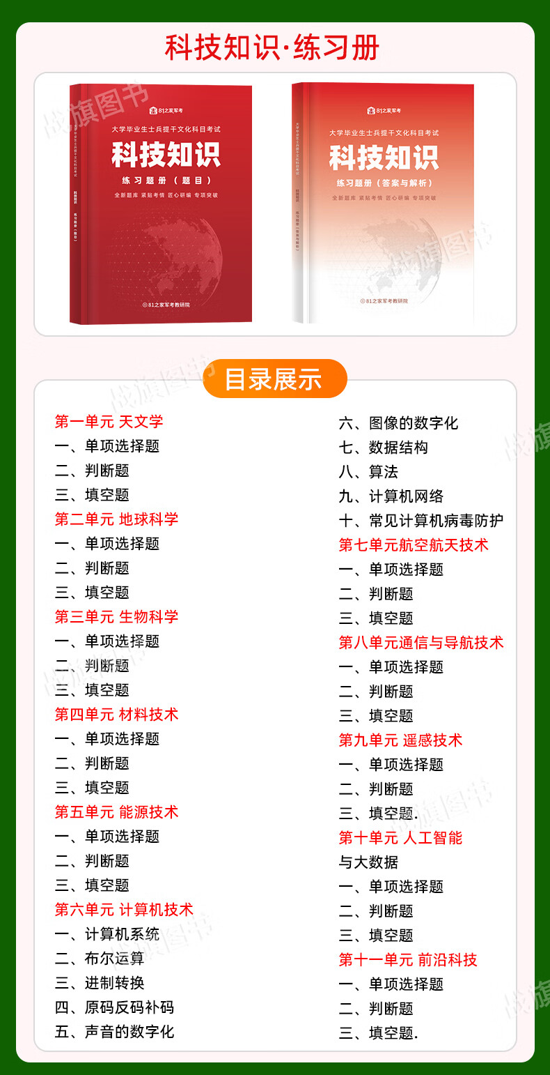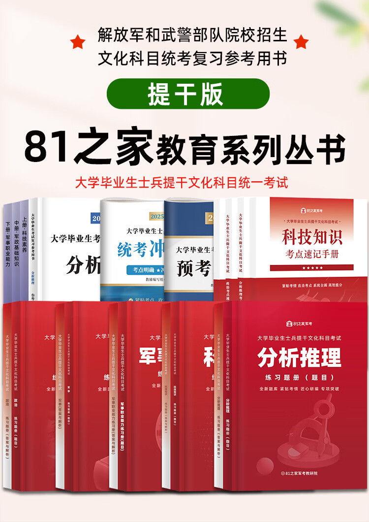 Review materials for the 2026 college student soldier promotion exam, textbooks, past real test papers, scientific and technological literacy, military and political basic knowledge, military professional abilities, political analysis, reasoning test points, official materials, memorization manual, pocket book, mind map, 9000 questions for undergraduate students, August 1, 2025, Rongtong Manpower National Defense Industry Press