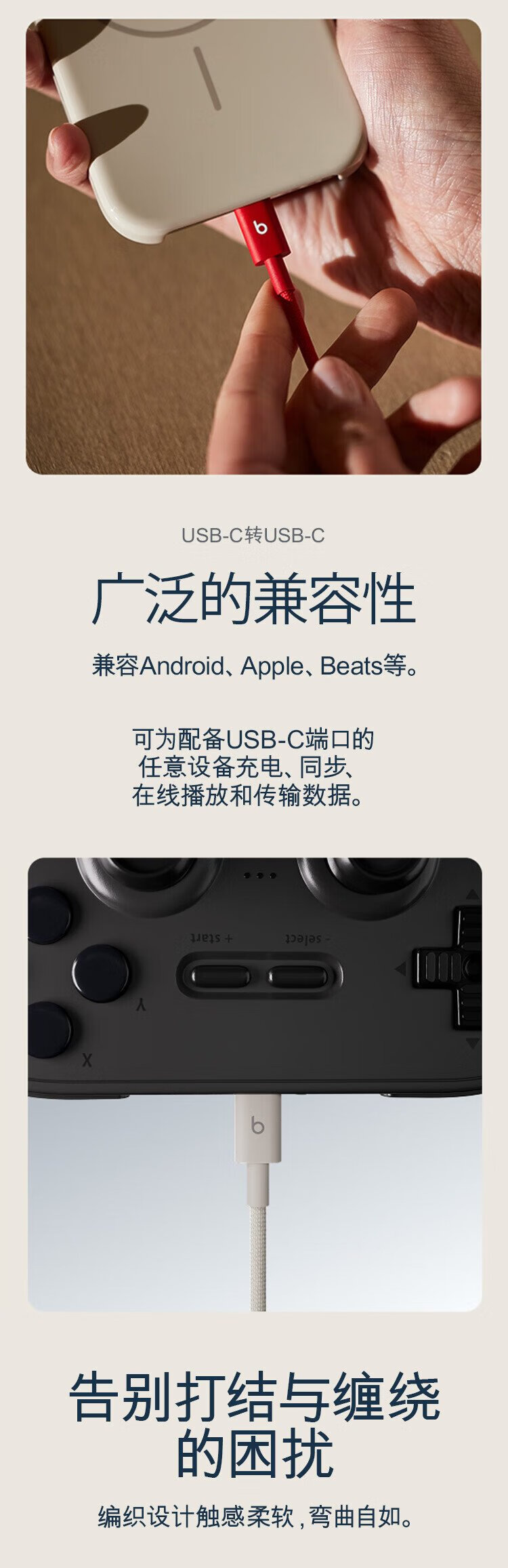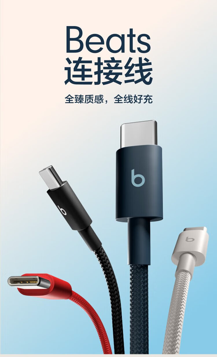 Beats headphones mobile phone charging cable braided cable Apple/Apple USB-C/type-c data cable suitable for iPhone15 16 17 mobile phone/original cable USB-C to USB-C Lightning Black (1.5 meters)