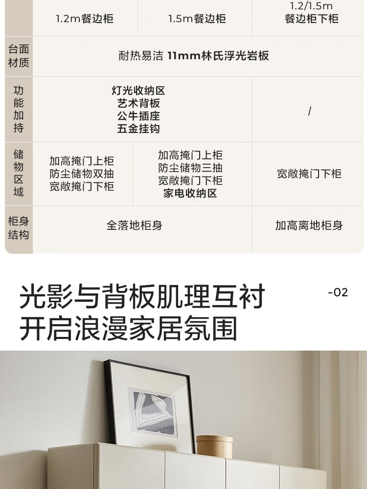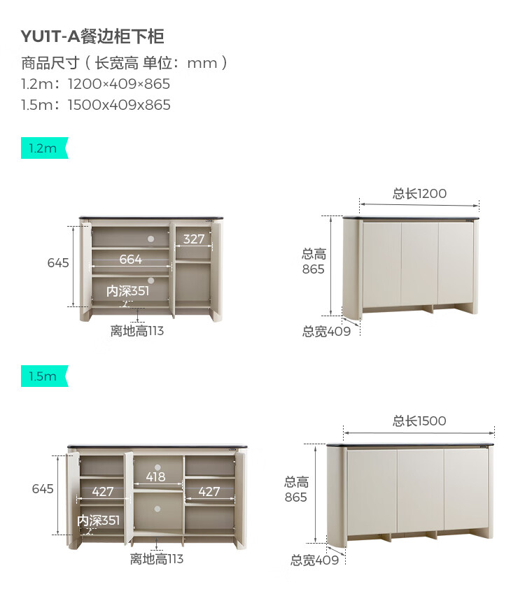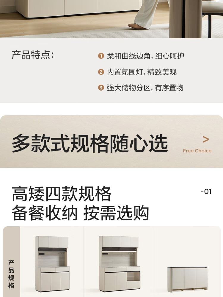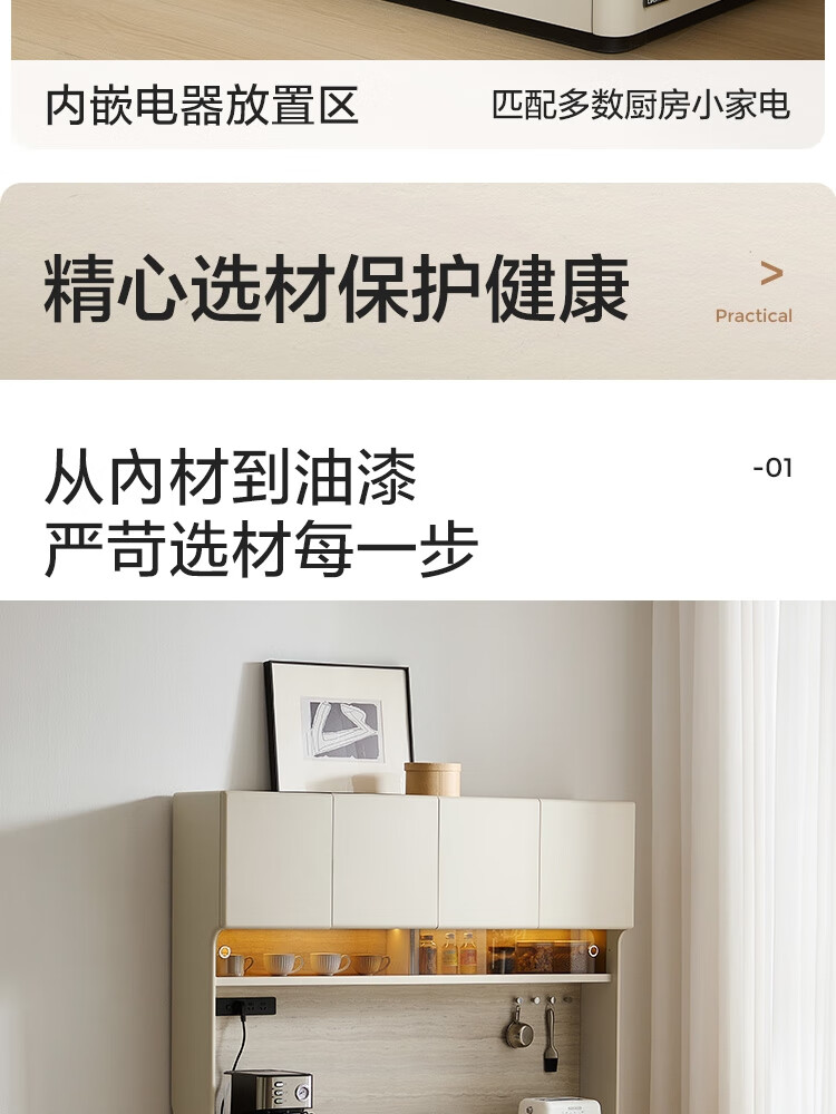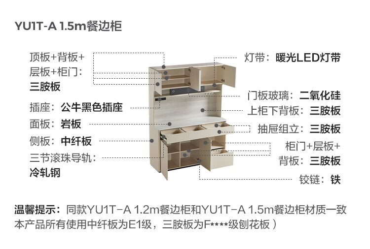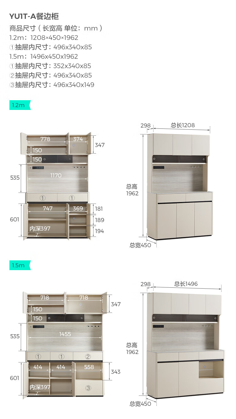 Lin's home sideboard wall-mounted integrated storage cabinet living room tea cabinet small apartment household Muguang series YU1T sideboard 1.2m