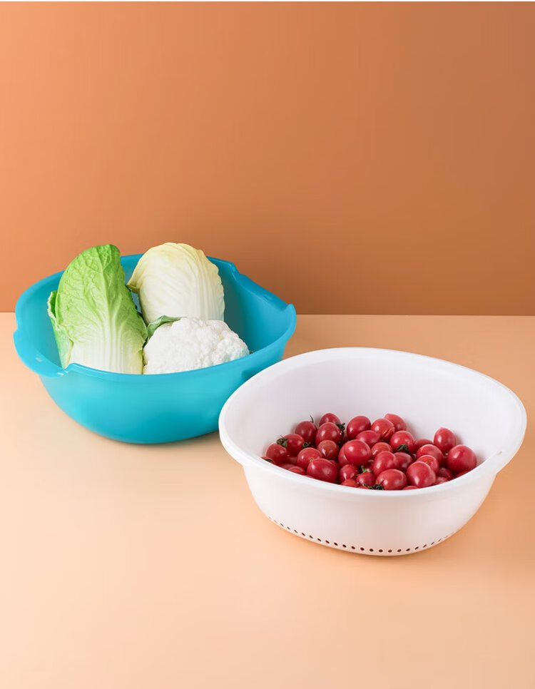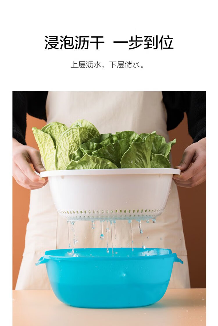 Camellia drain basket plastic double-layer large kitchen household creative sink basin fruit plate fruit and vegetable basket vegetable basket new green-1 piece