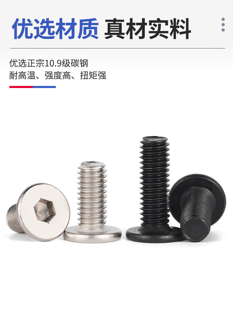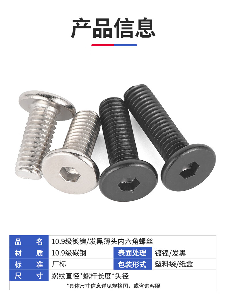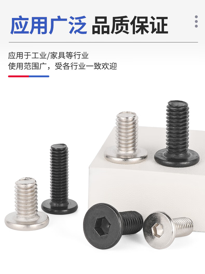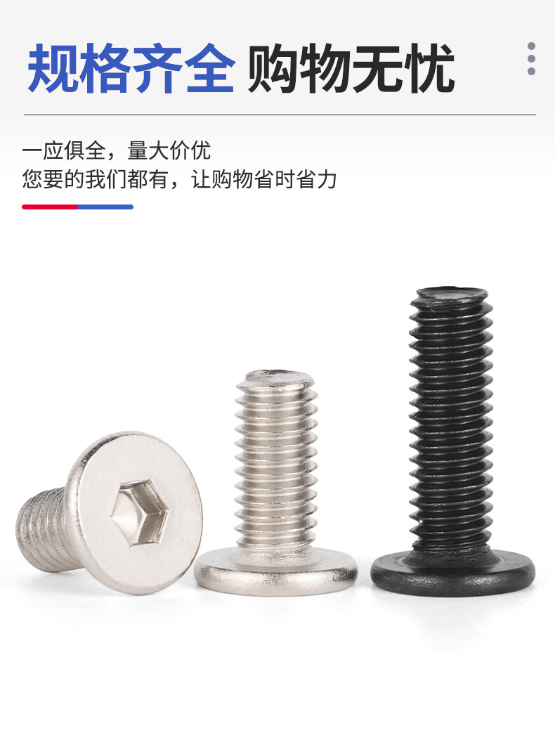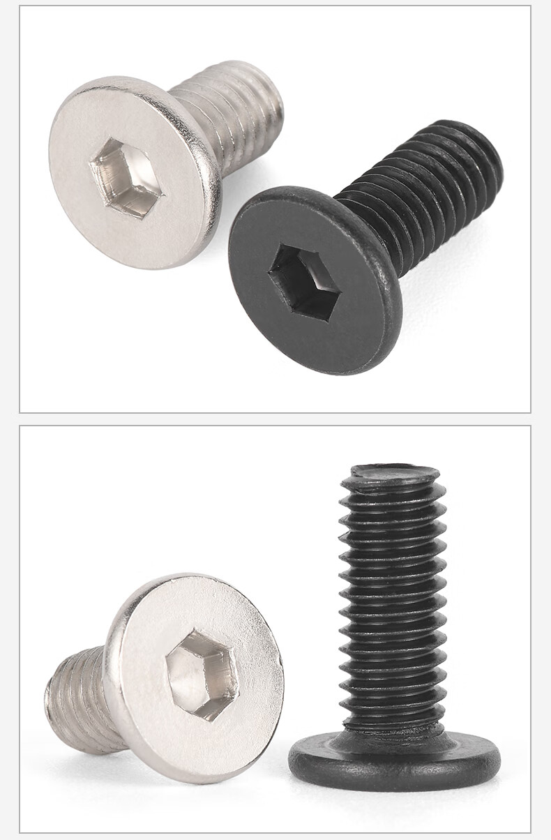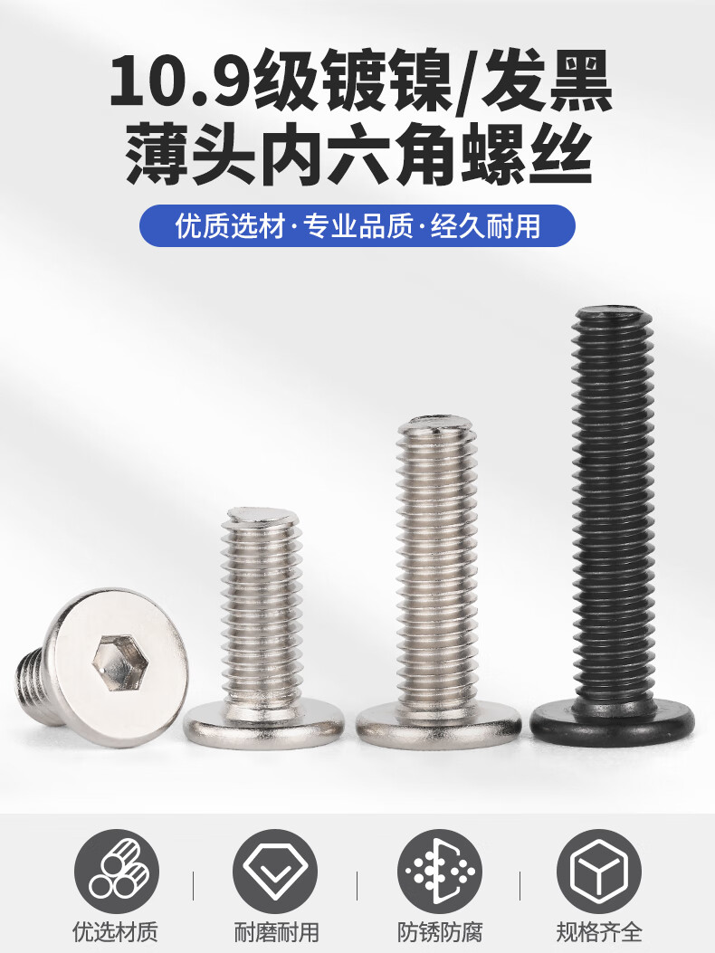 JINGGONG Grade 10.9 Black Flat Head Hexagon Screw CM Large Flat Head Thin Head Low Short Head Machine Screw Flat Head Bolt Nickel Plated M4*8*Head Diameter 8 (50 pcs)