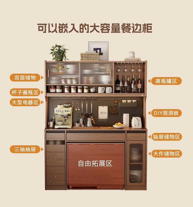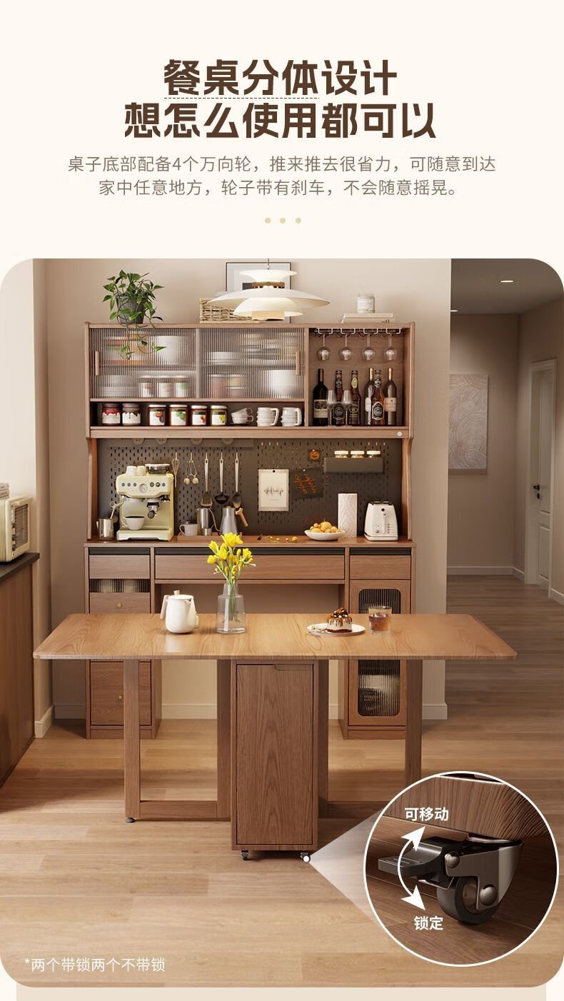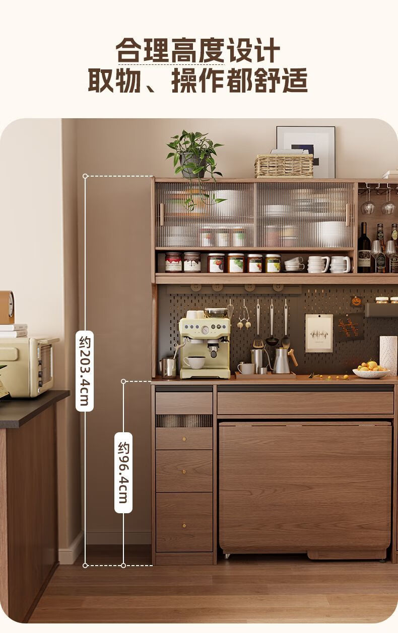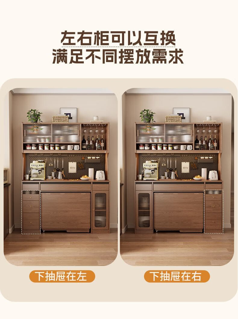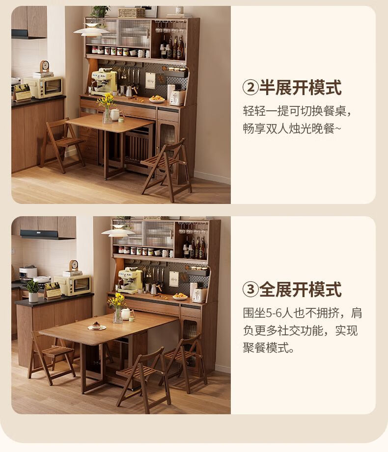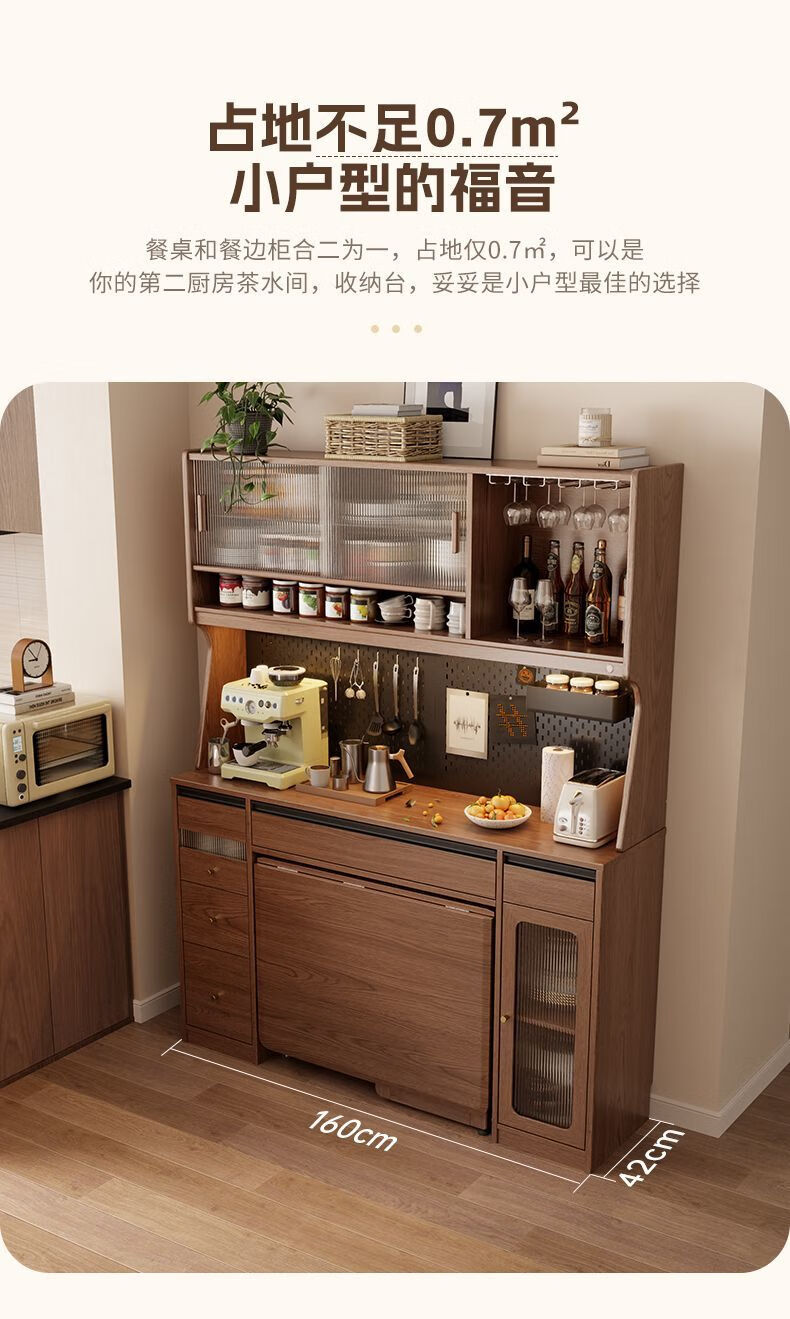Du Zhunyu solid wood sideboard dining table integrated living room storage cabinet wall wine cabinet simple storage cabinet with folding dining table cabinet walnut color 1.6m sideboard