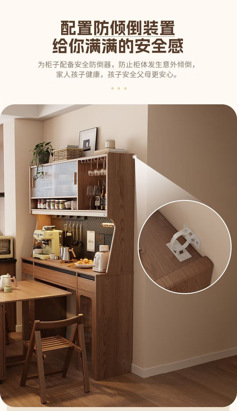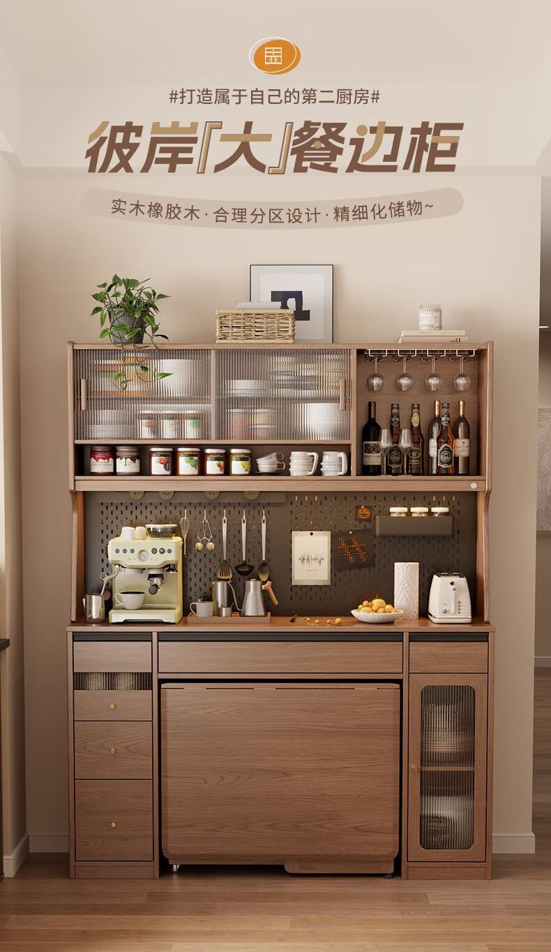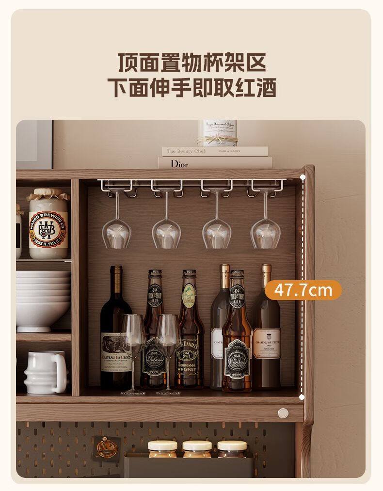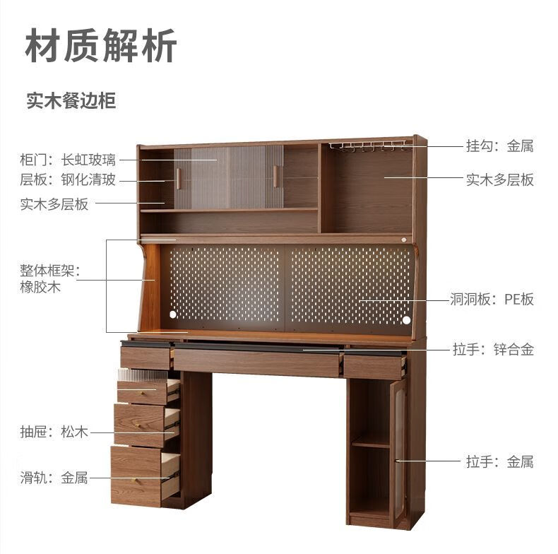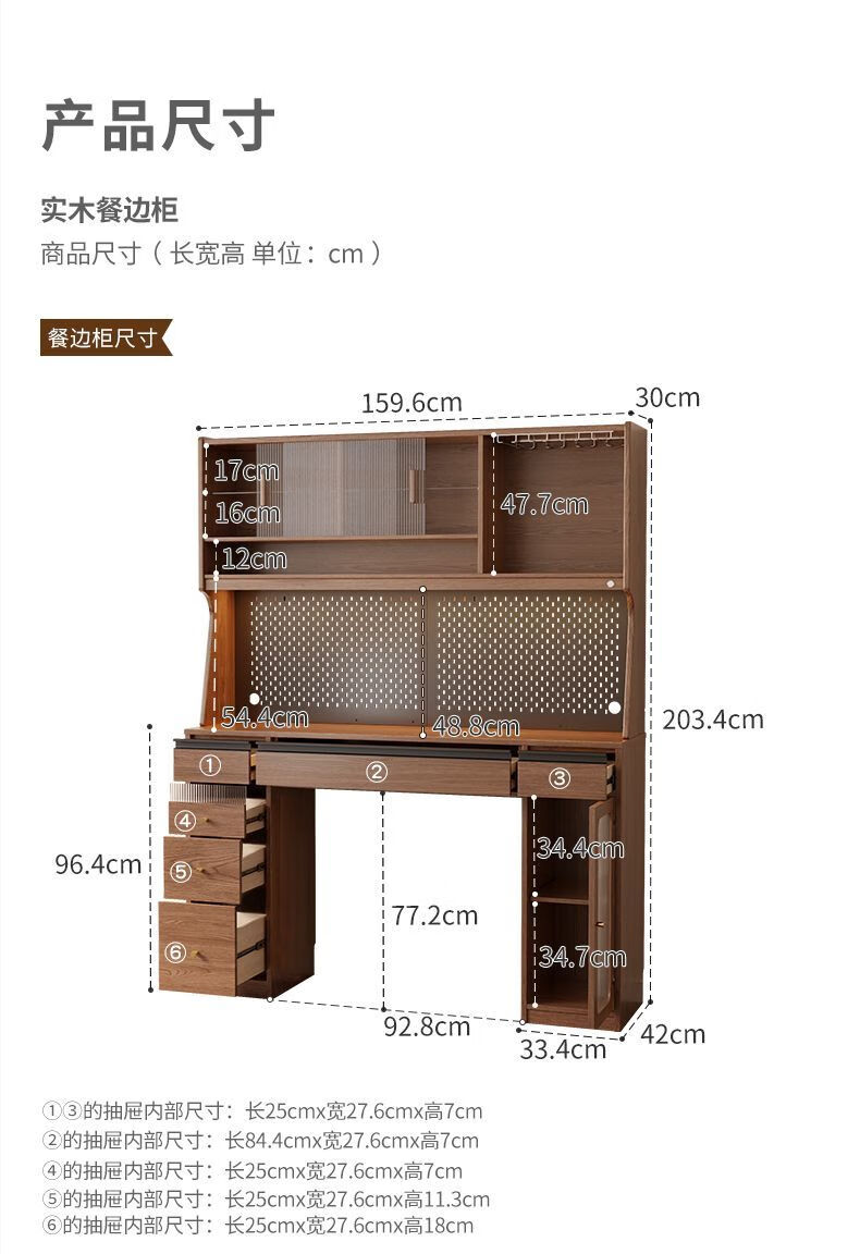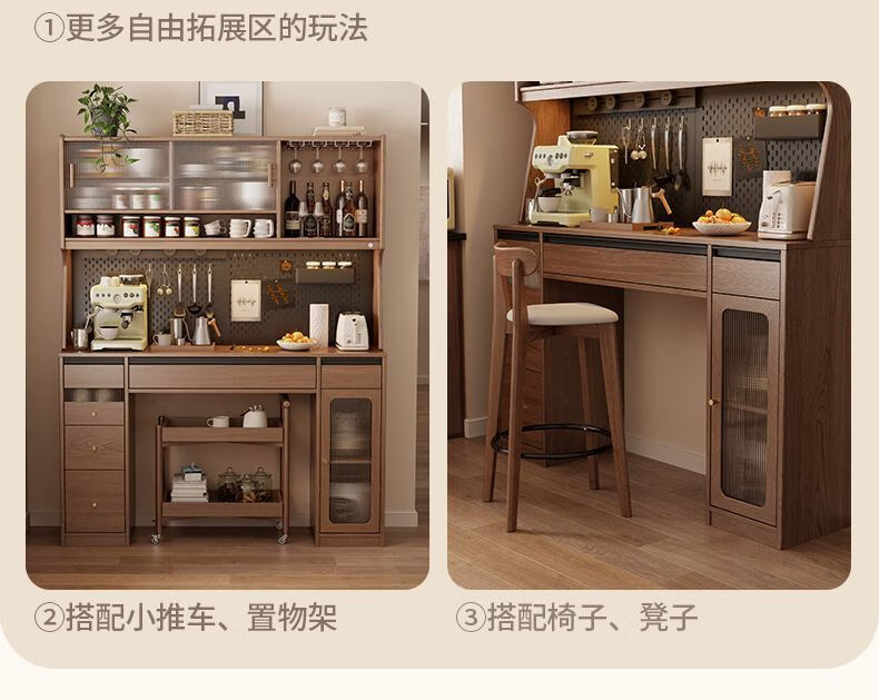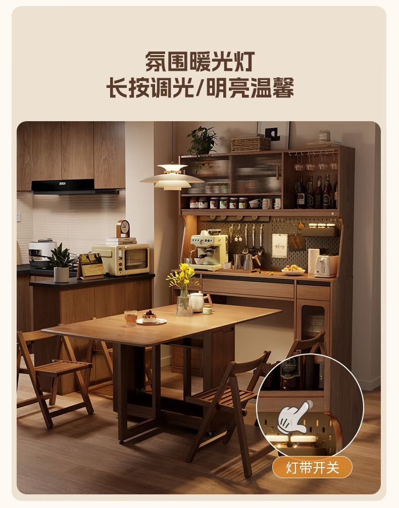 Du Zhunyu solid wood sideboard dining table integrated living room storage cabinet wall wine cabinet simple storage cabinet with folding dining table cabinet walnut color 1.6m sideboard