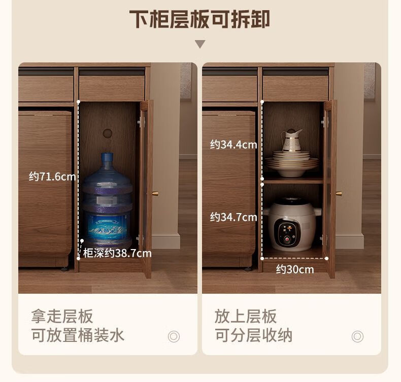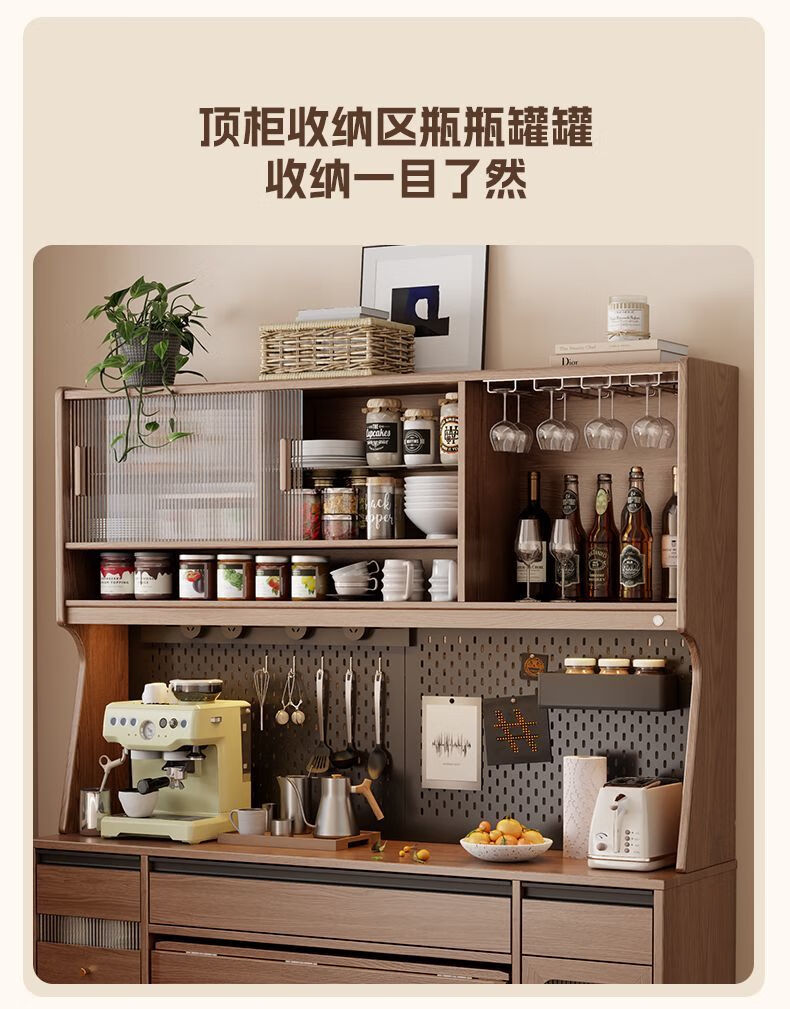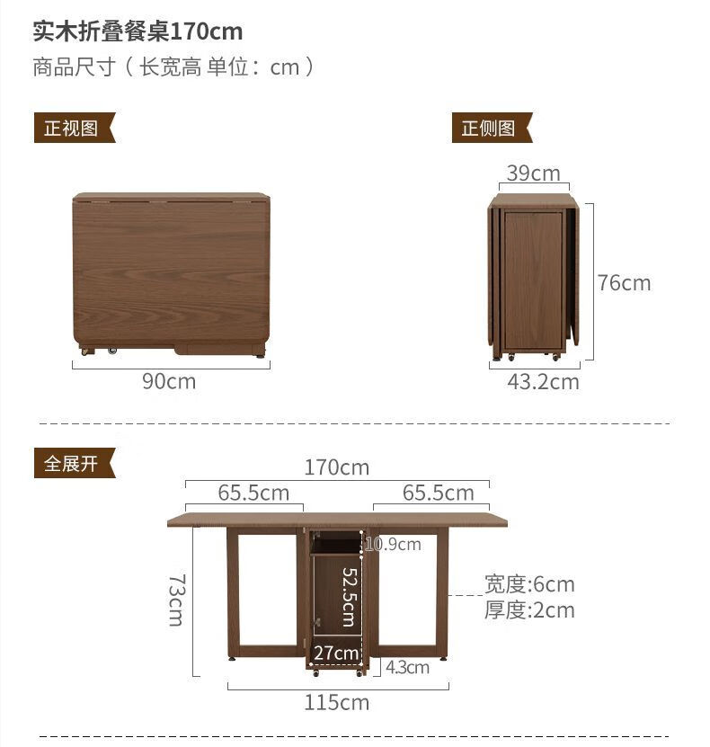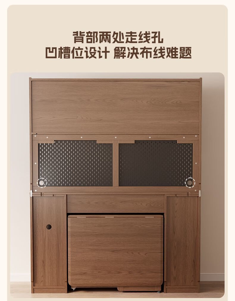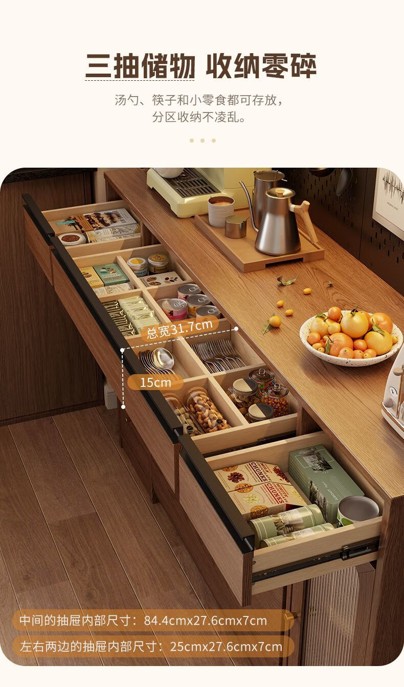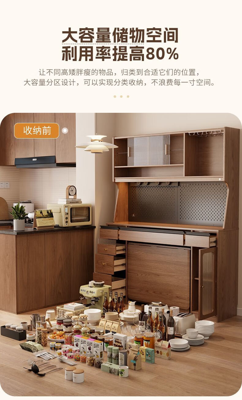 Du Zhunyu solid wood sideboard dining table integrated living room storage cabinet wall wine cabinet simple storage cabinet with folding dining table cabinet walnut color 1.6m sideboard