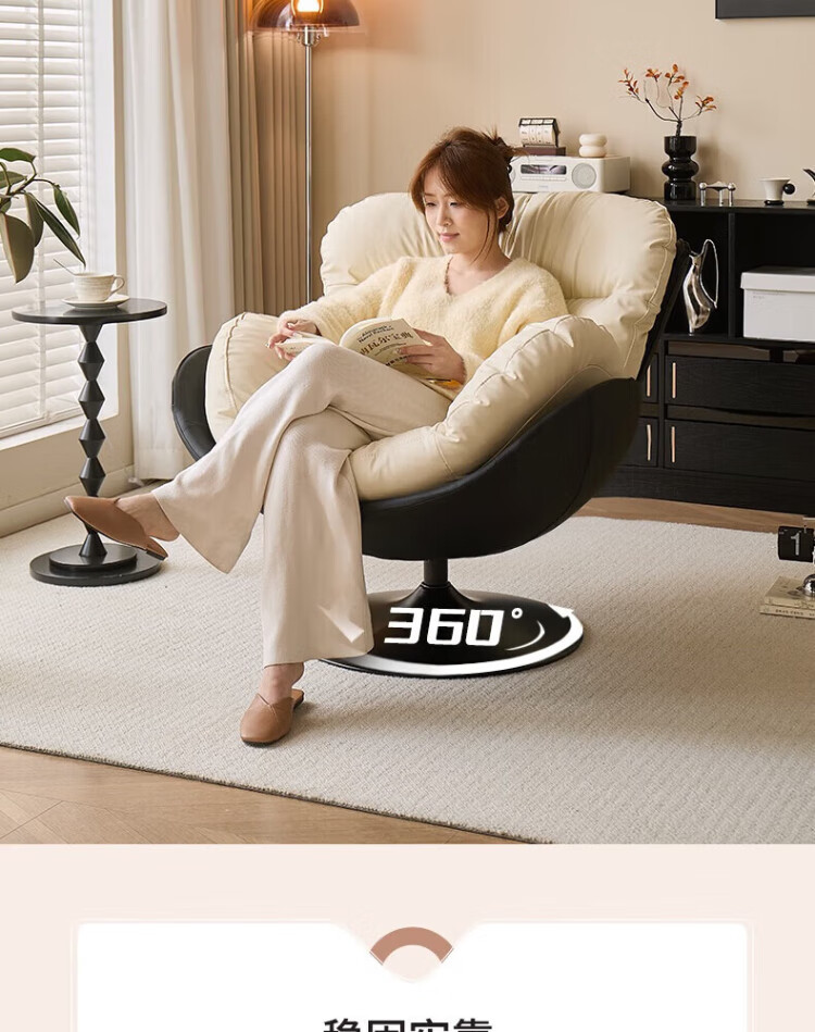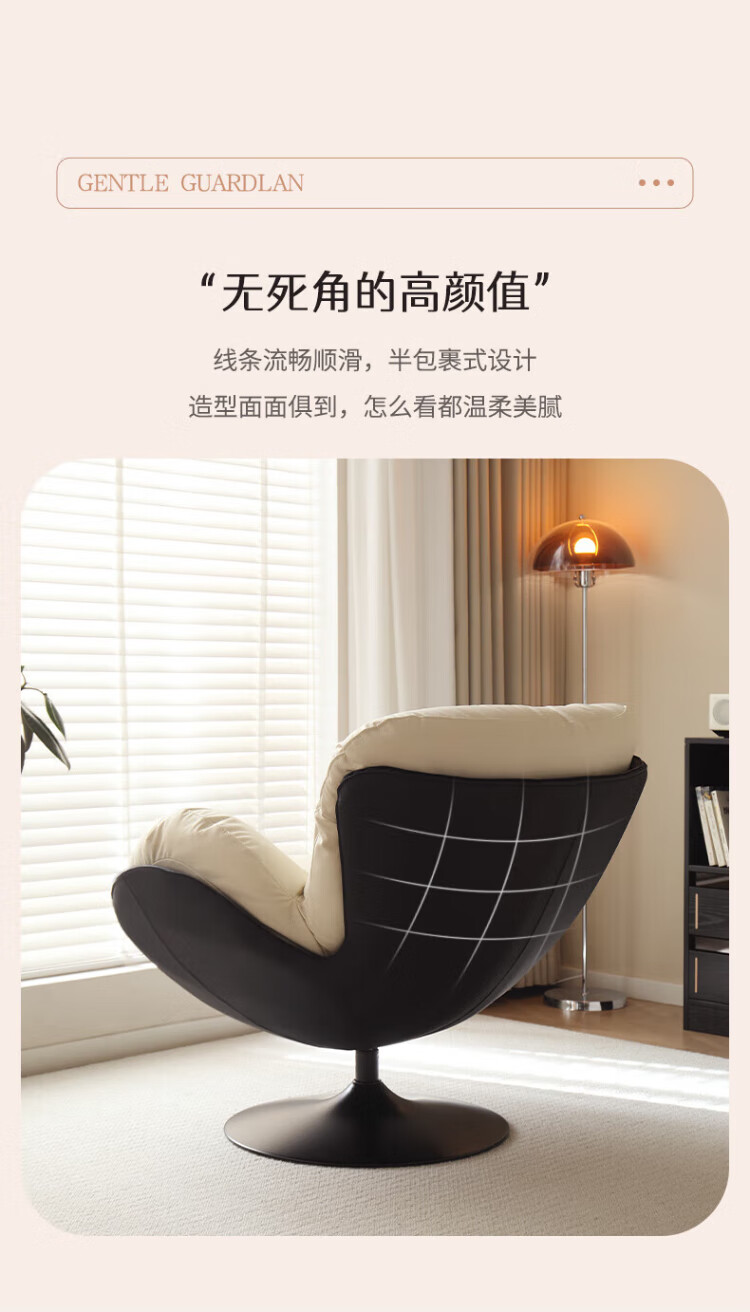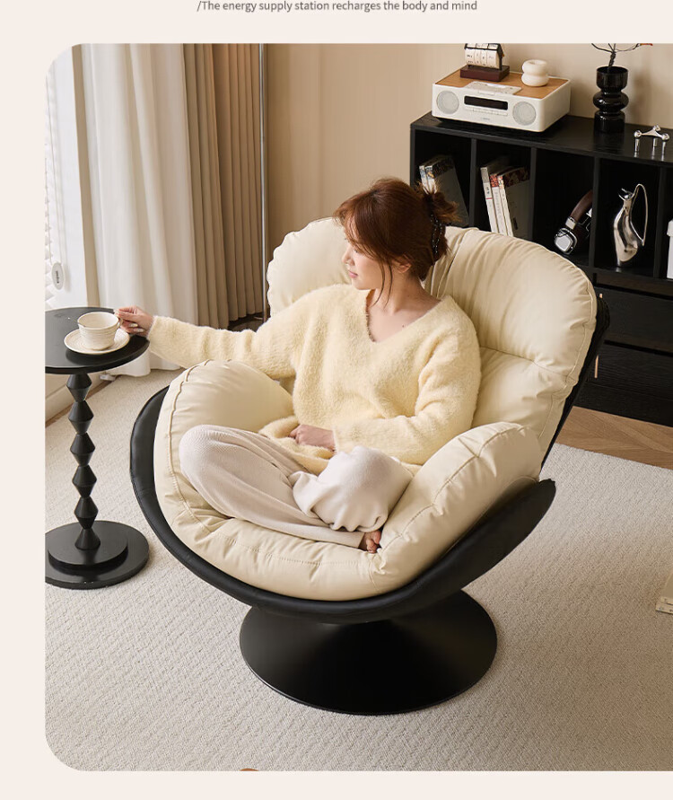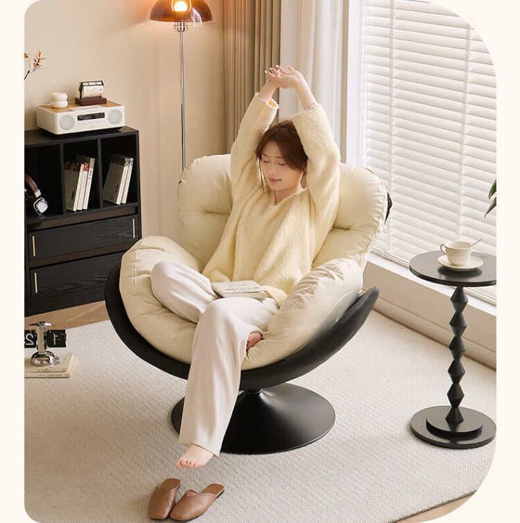 Yaji (YAJI) Nordic style single sofa chair rotating eggshell chair lazy sofa living room bedroom home light luxury leisure lounge chair high-end black and white doll cotton 360 rotation strong load-bearing capacity