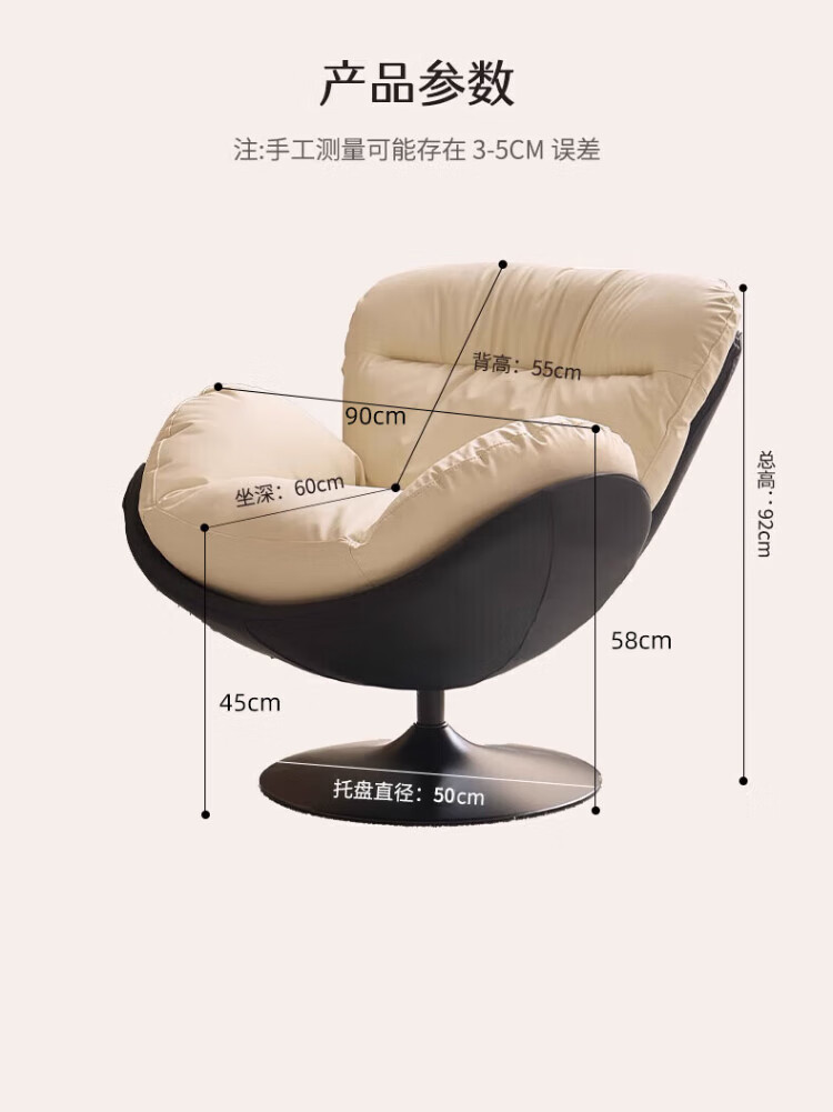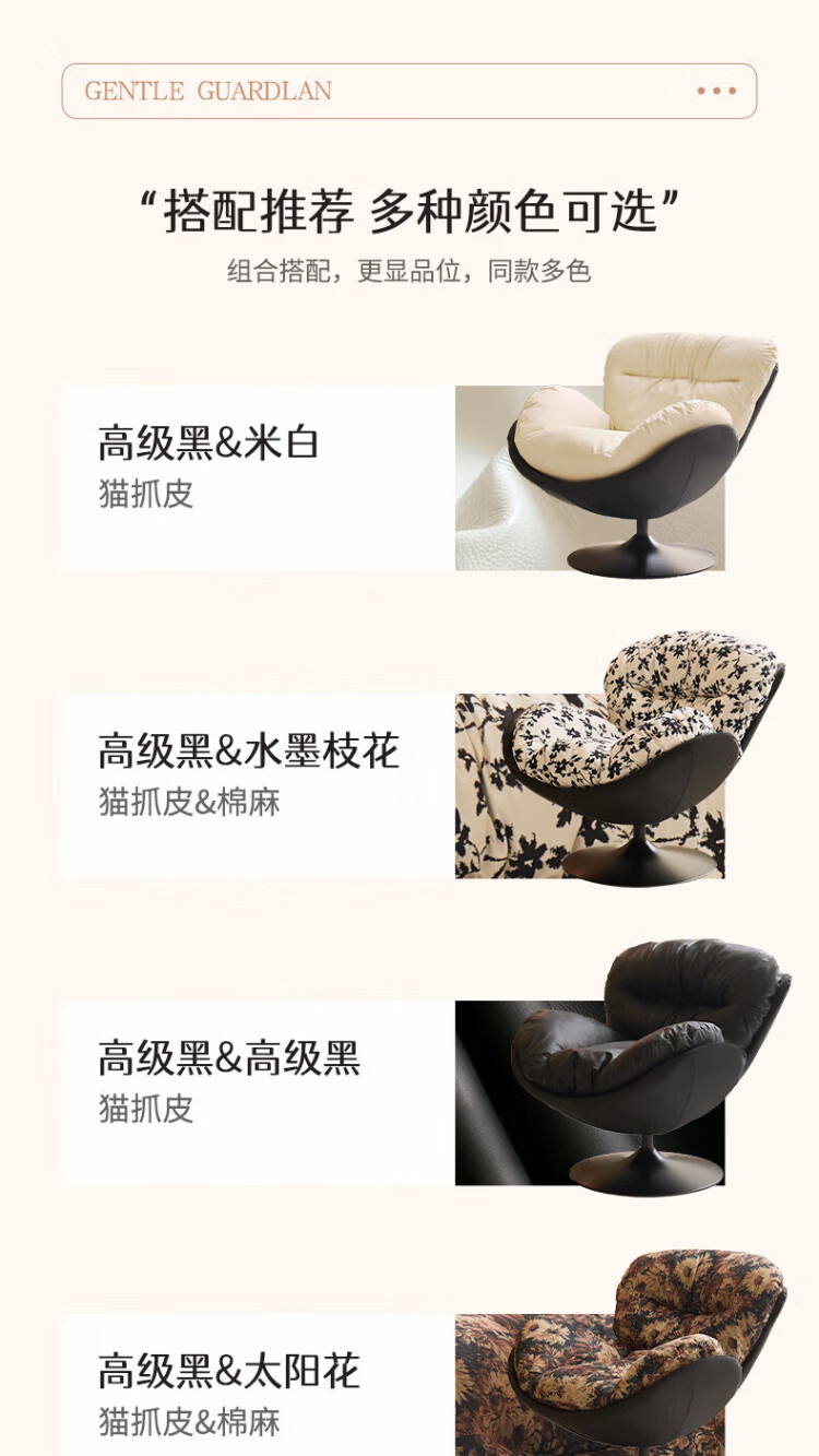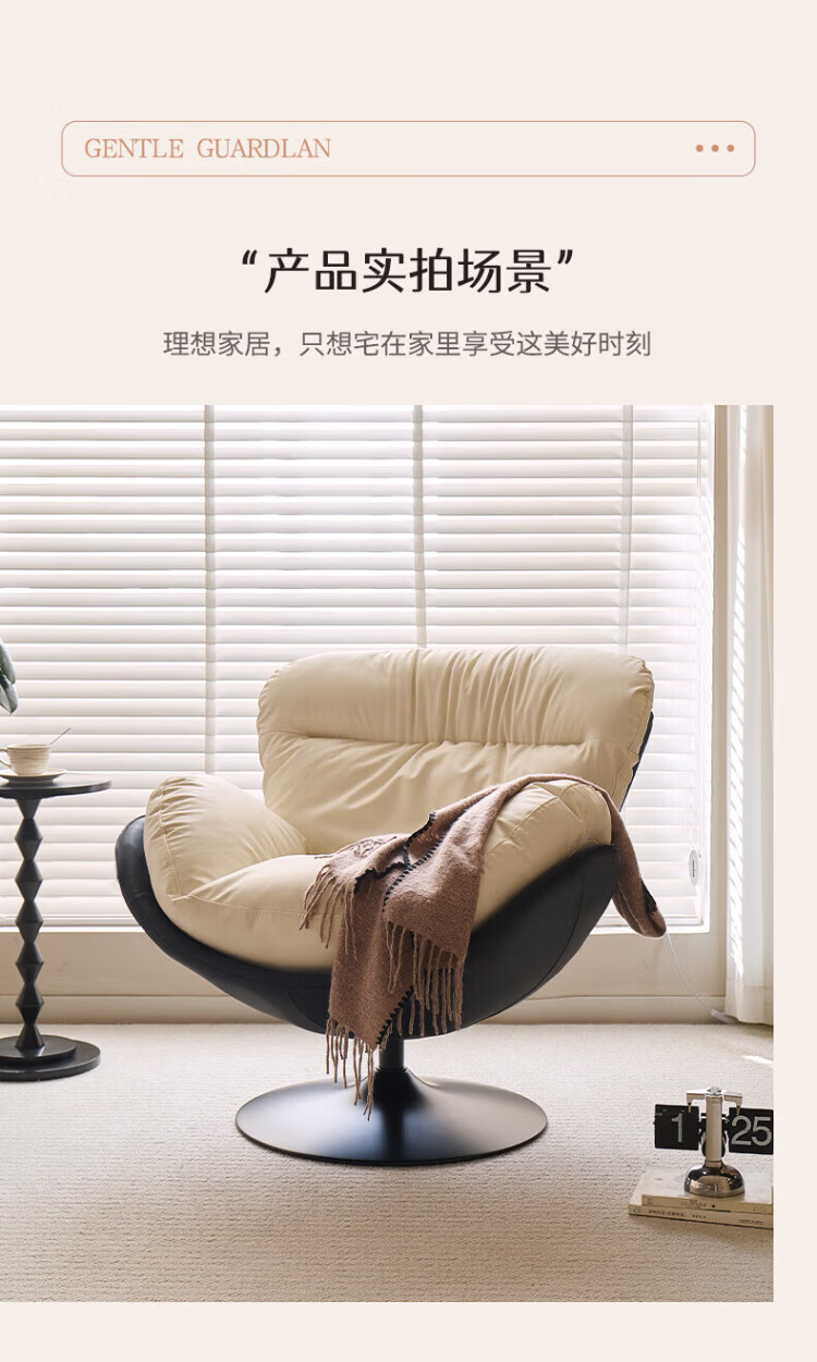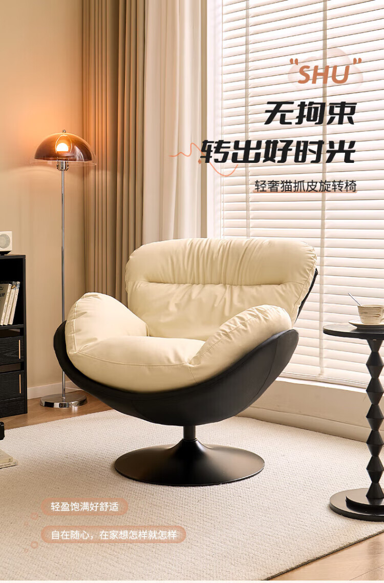 Yaji (YAJI) Nordic style single sofa chair rotating eggshell chair lazy sofa living room bedroom home light luxury leisure lounge chair high-end black and white doll cotton 360 rotation strong load-bearing capacity