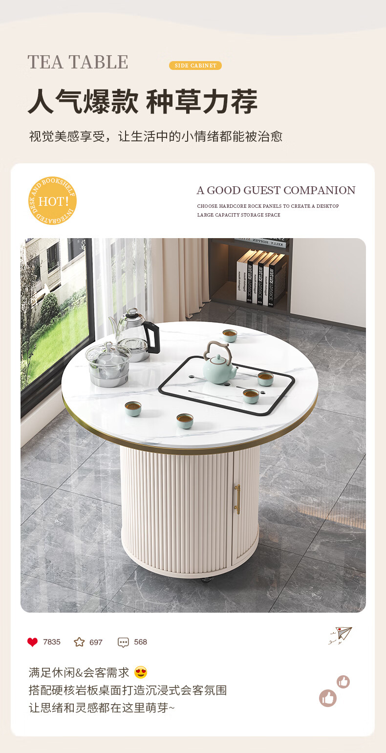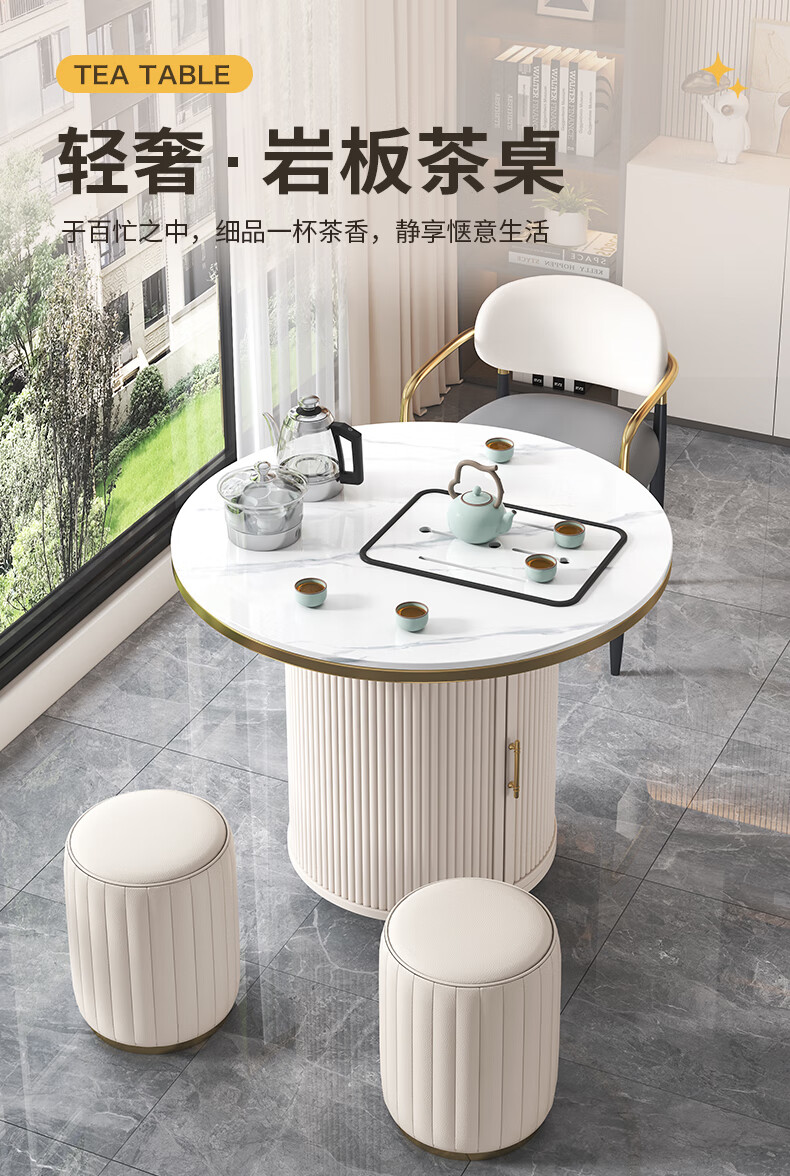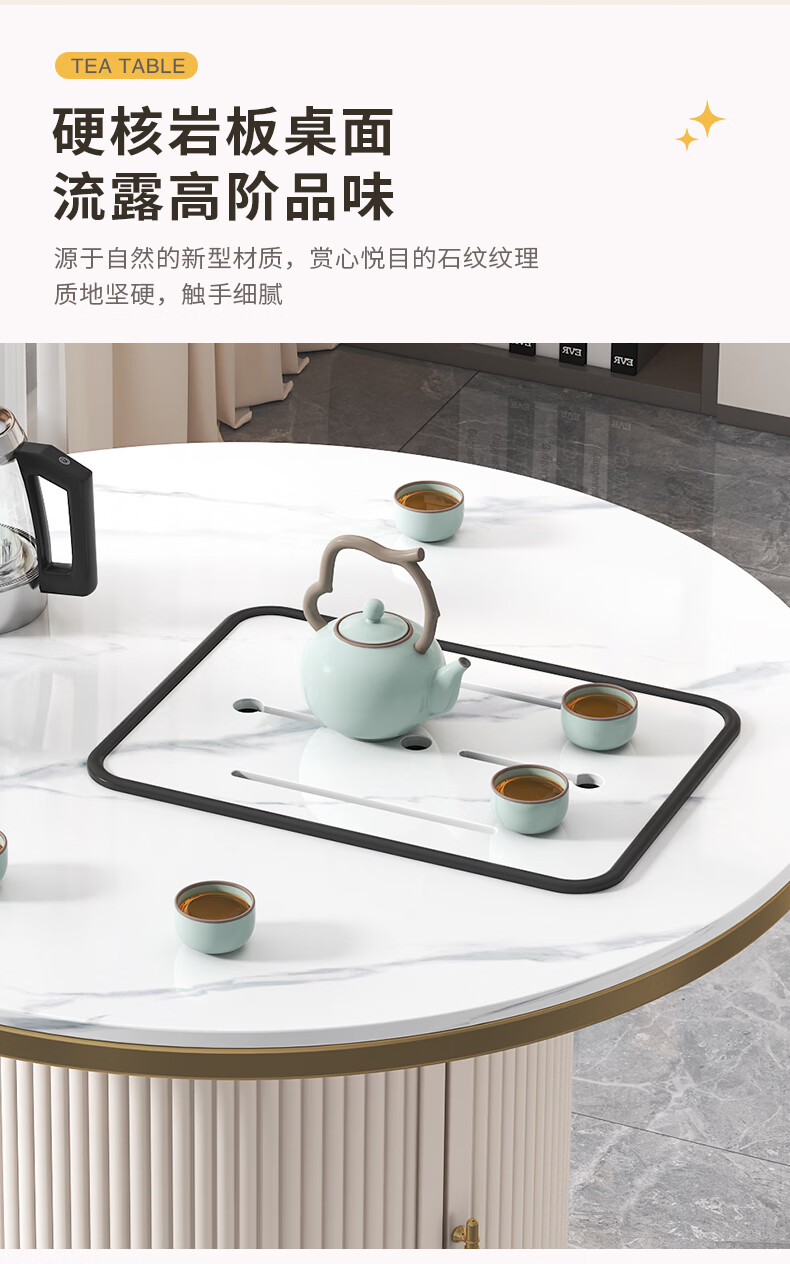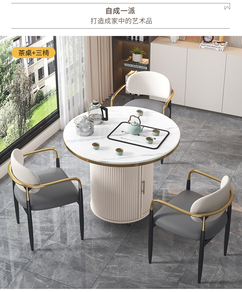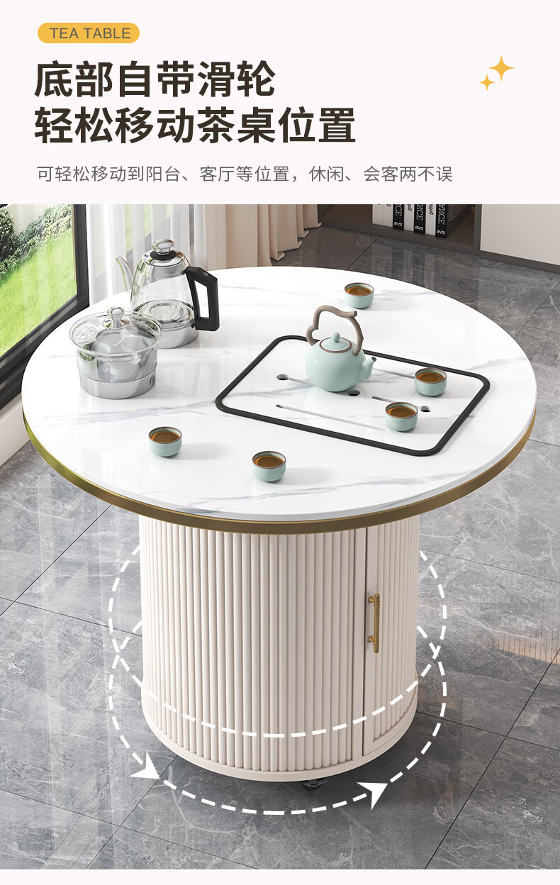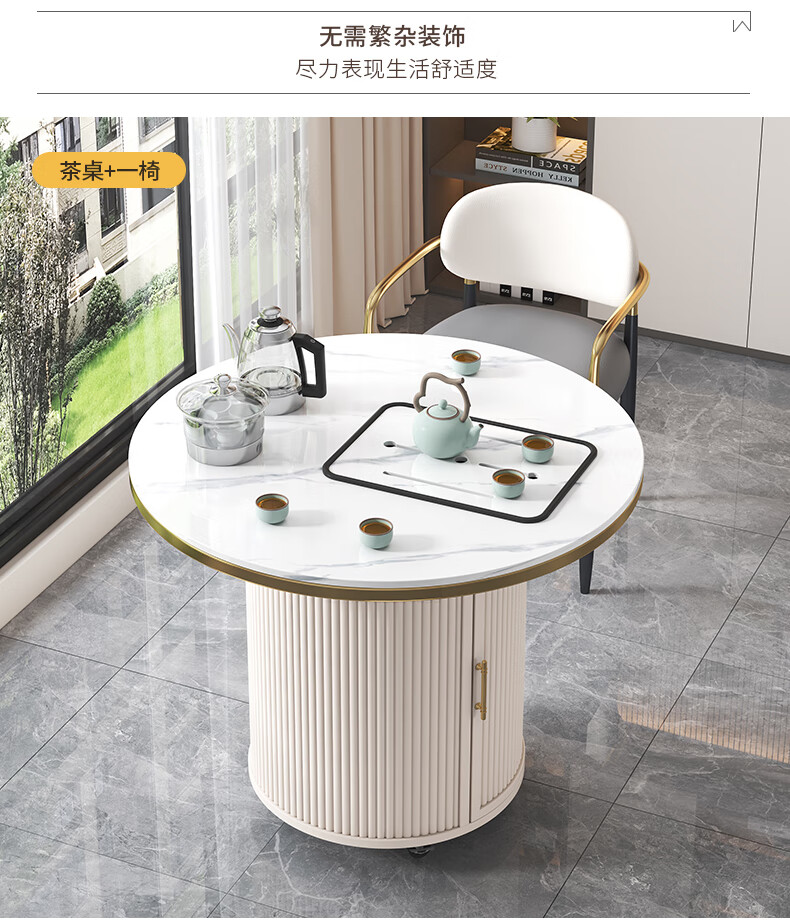 Yu Xiangyuan tea table modern simple movable slate tea table and chair combination light luxury balcony household kettle integrated table coffee table snow mountain white slate round tea table