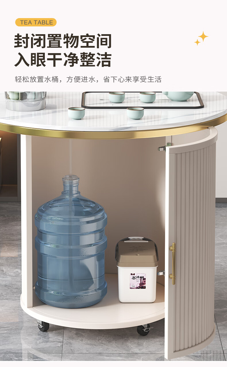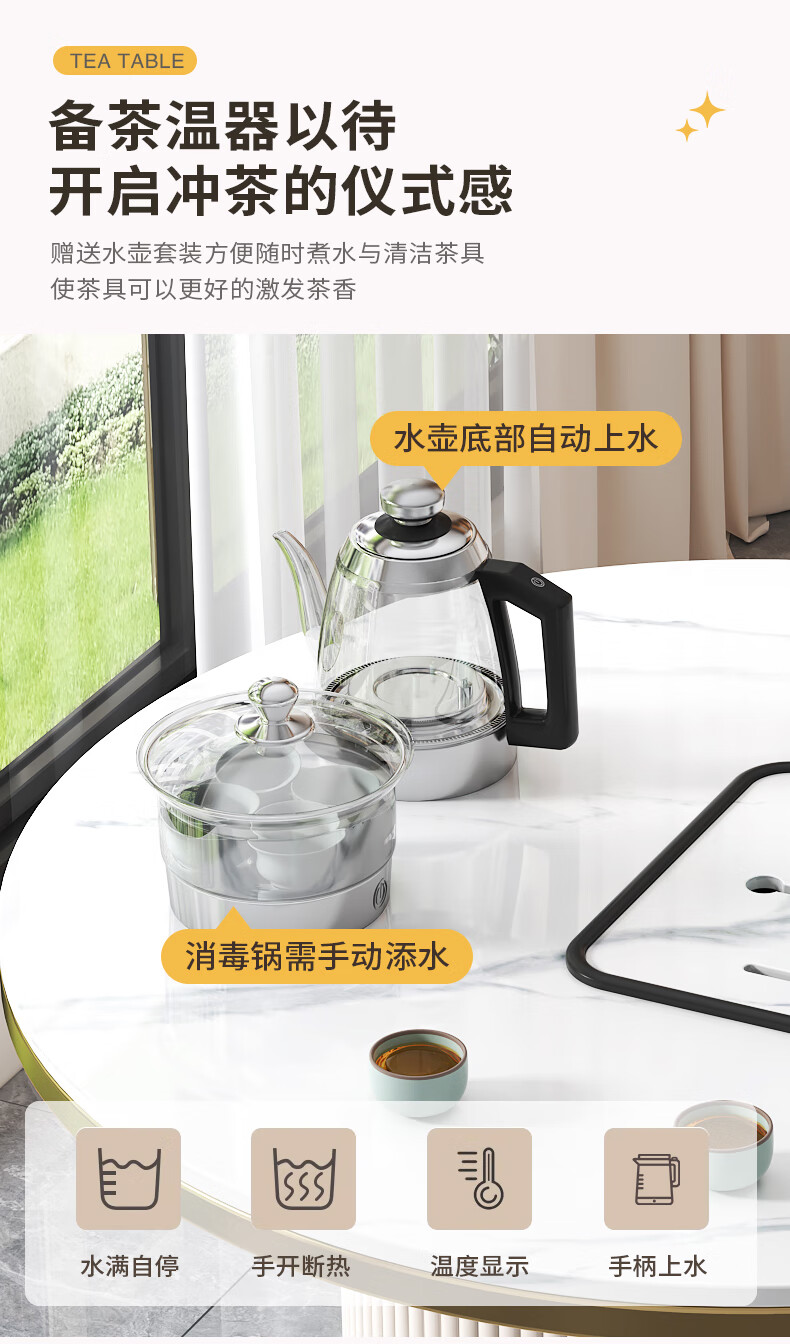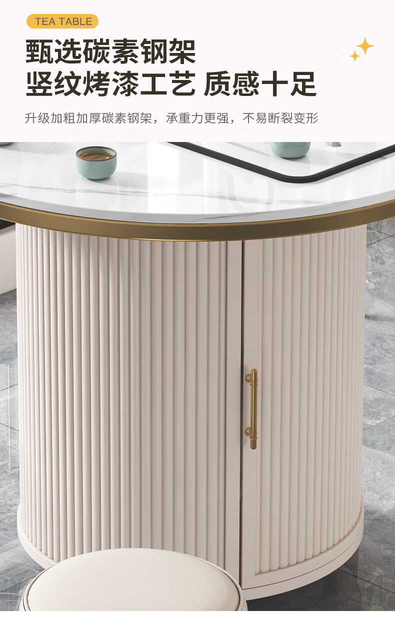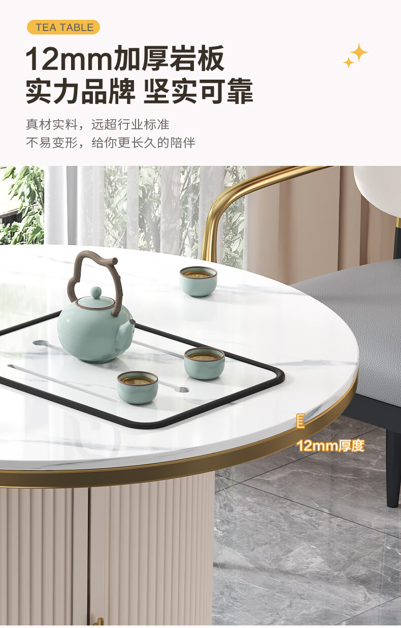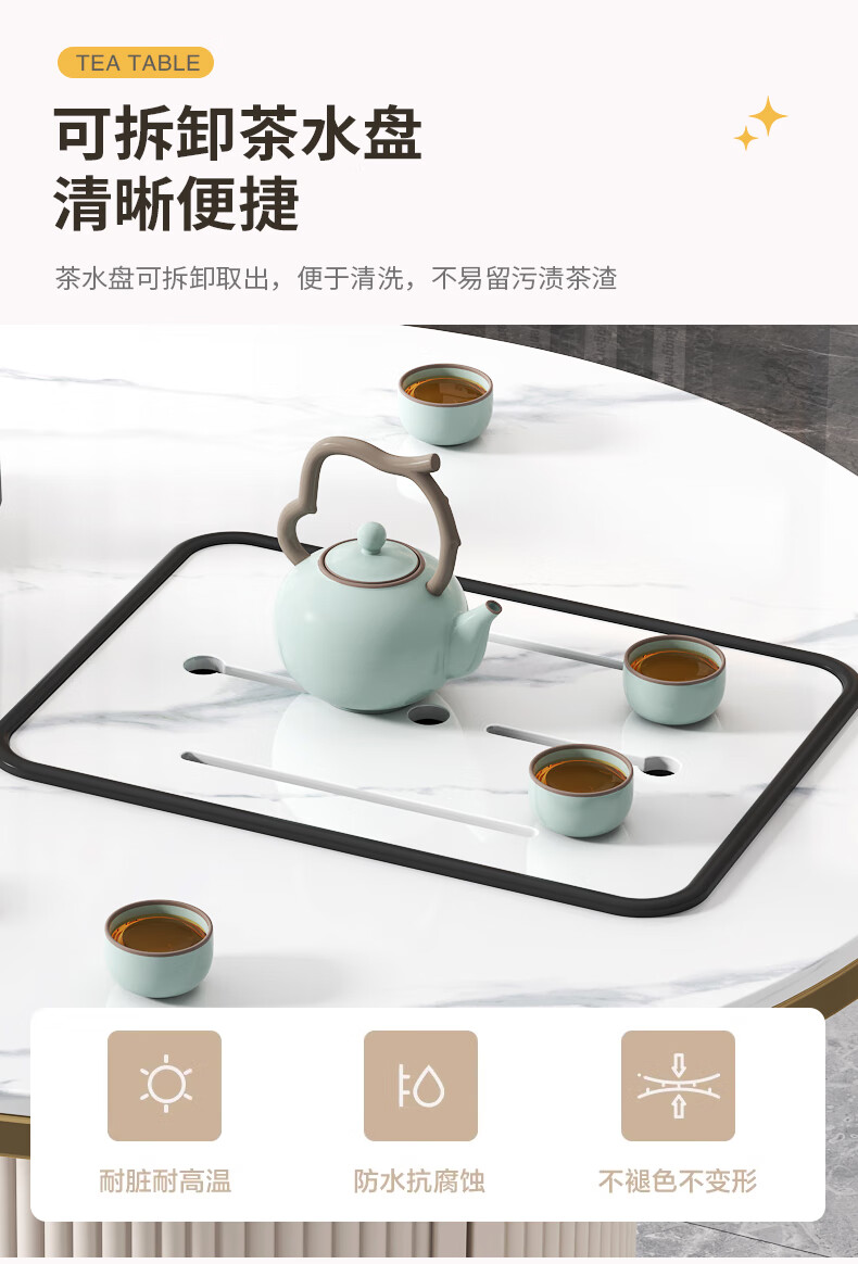 Yu Xiangyuan tea table modern simple movable slate tea table and chair combination light luxury balcony household kettle integrated table coffee table snow mountain white slate round tea table