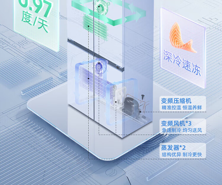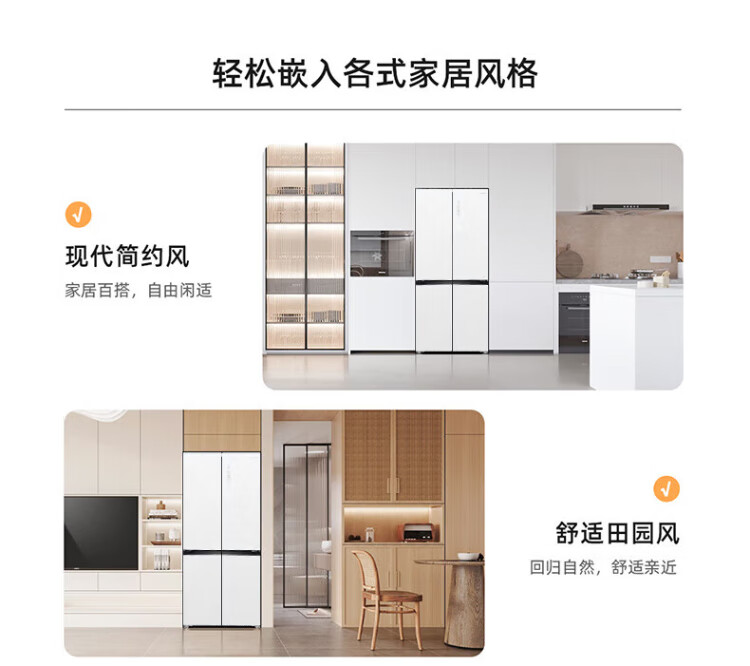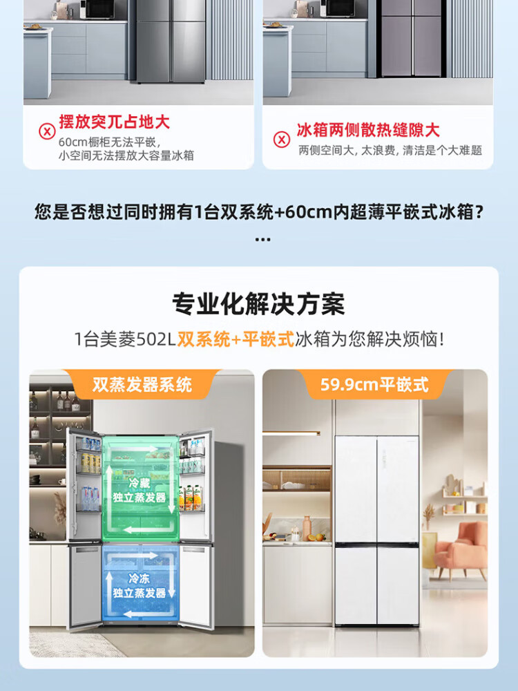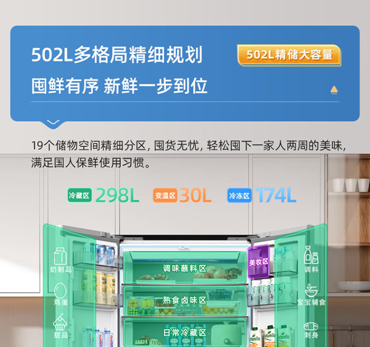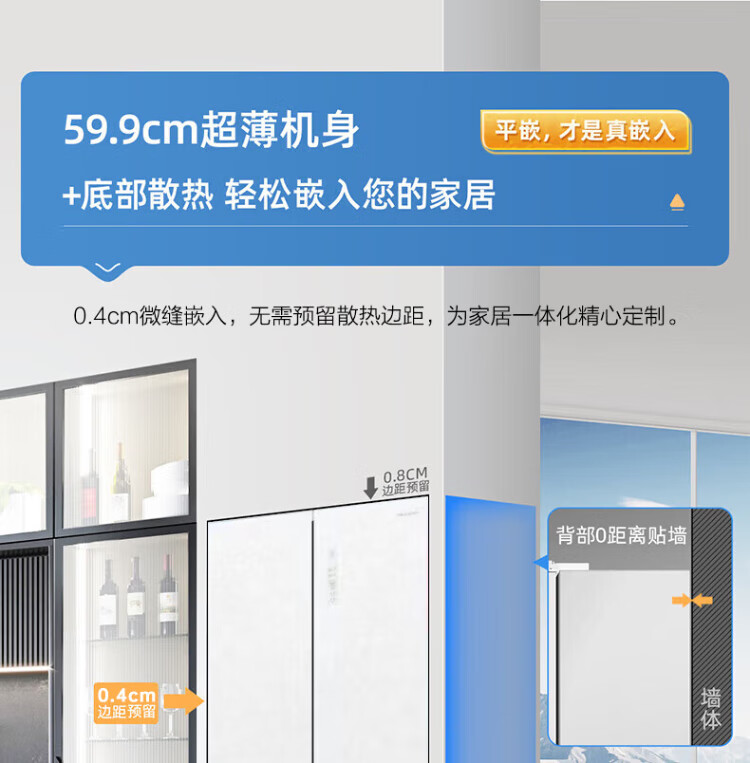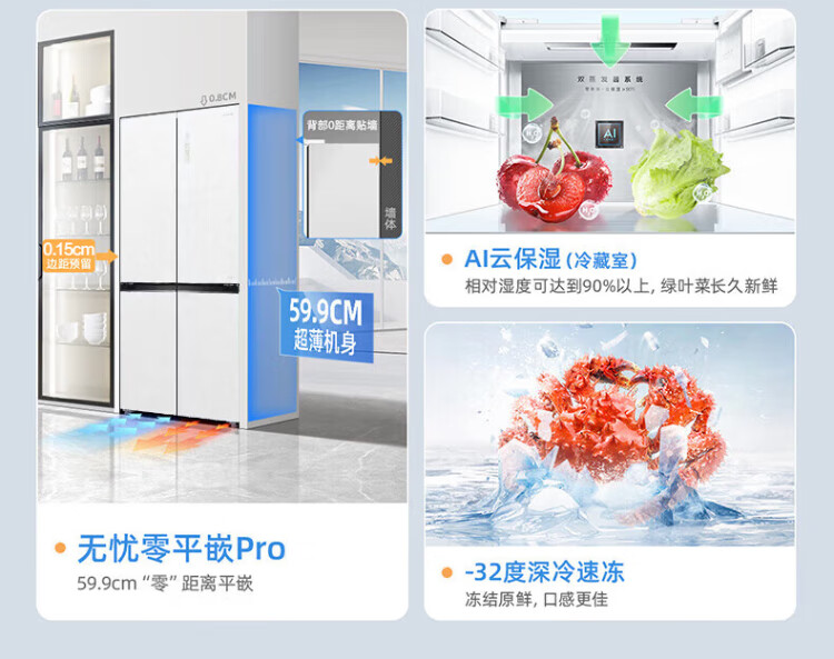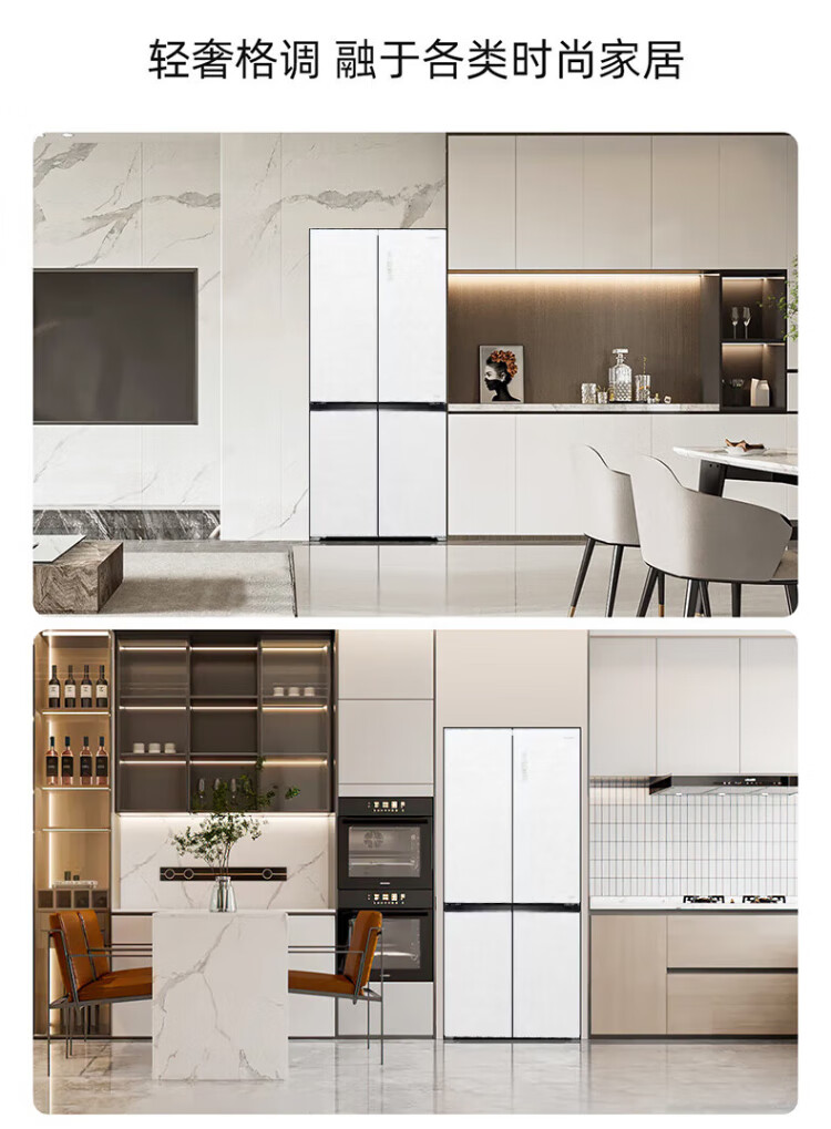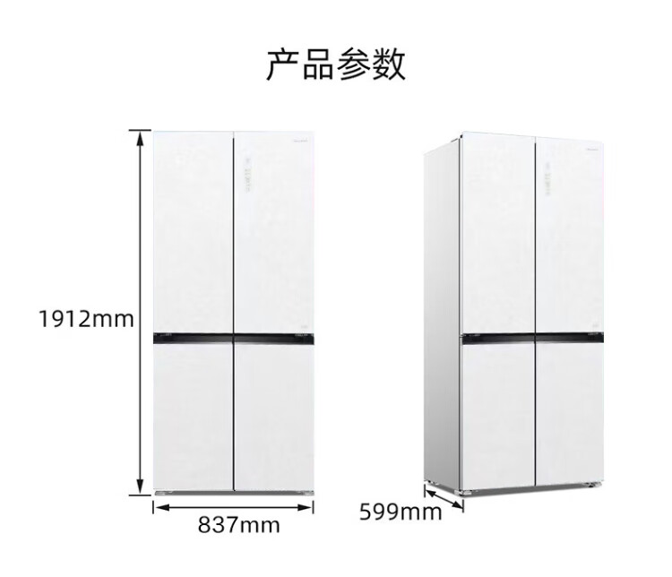 MeiLing dual system zero-flat built-in refrigerator 502 liters household cross-door four-door 60cm thin full-space odor-free frost-free color crystal glass door built-in smart large refrigerator BCD-502WP9BTZX Shu Jin White