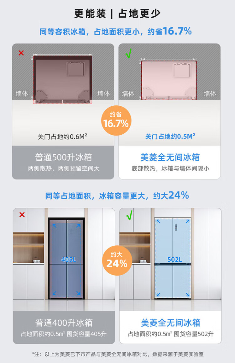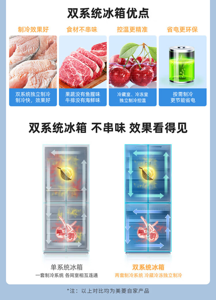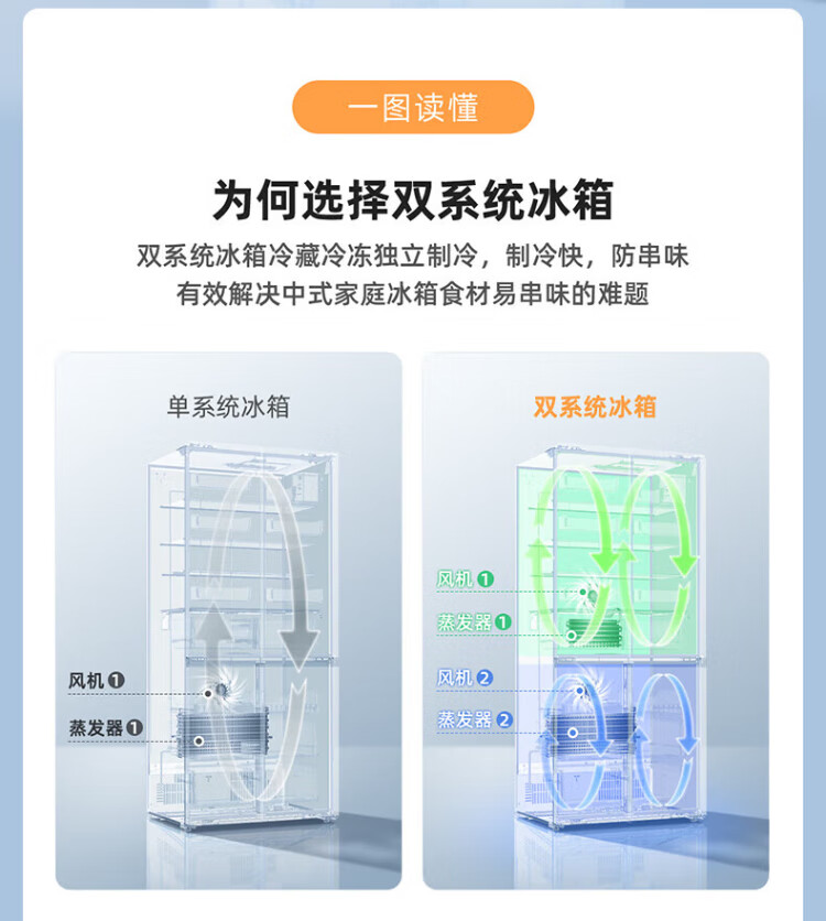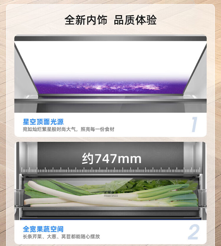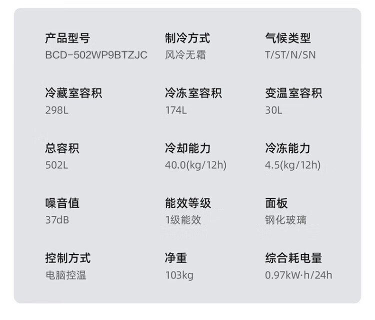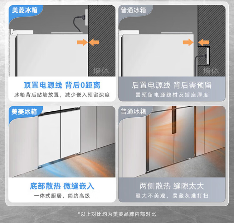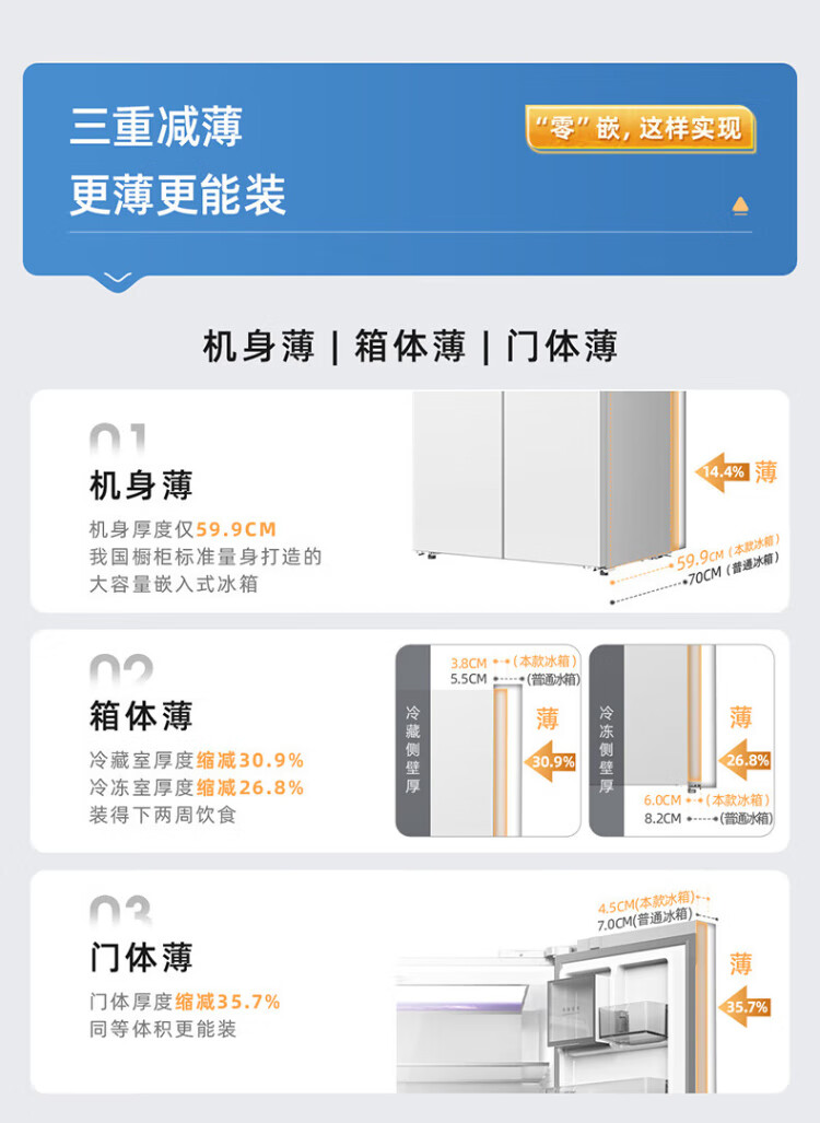 MeiLing dual system zero-flat built-in refrigerator 502 liters household cross-door four-door 60cm thin full-space odor-free frost-free color crystal glass door built-in smart large refrigerator BCD-502WP9BTZX Shu Jin White