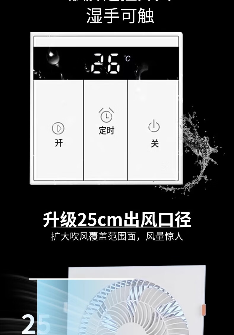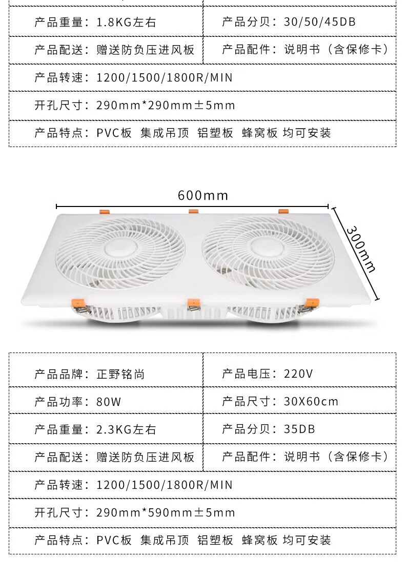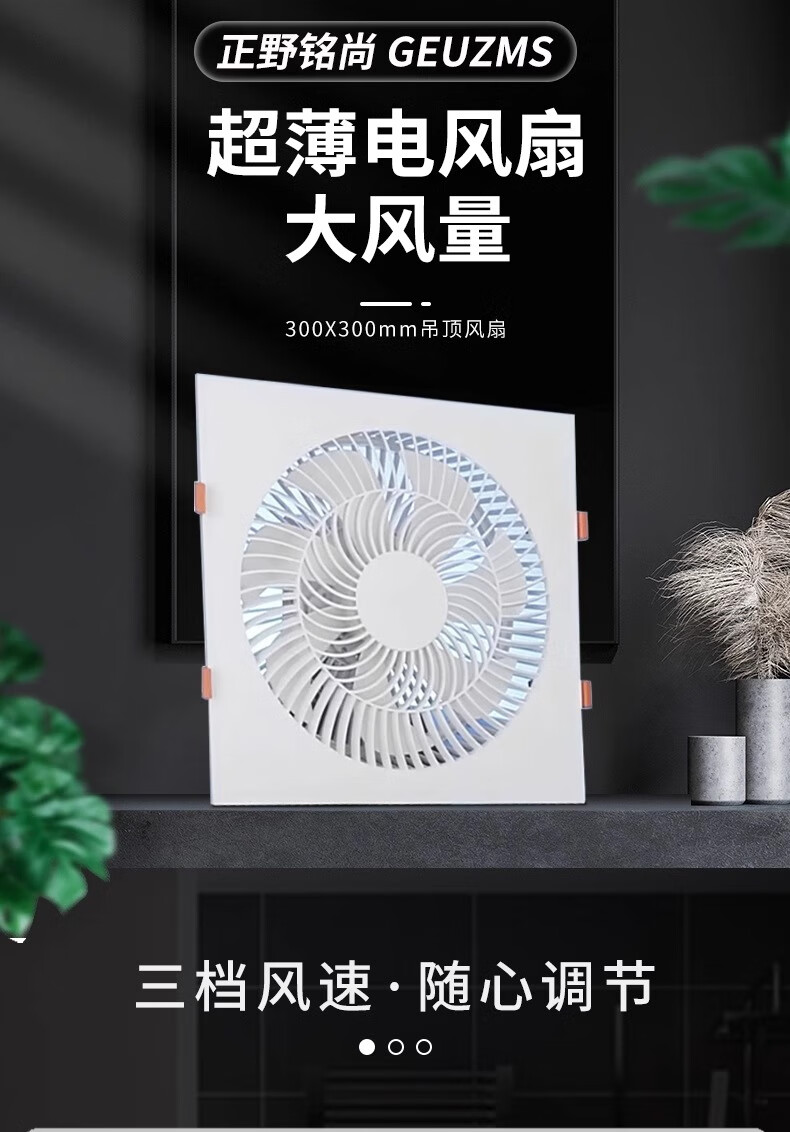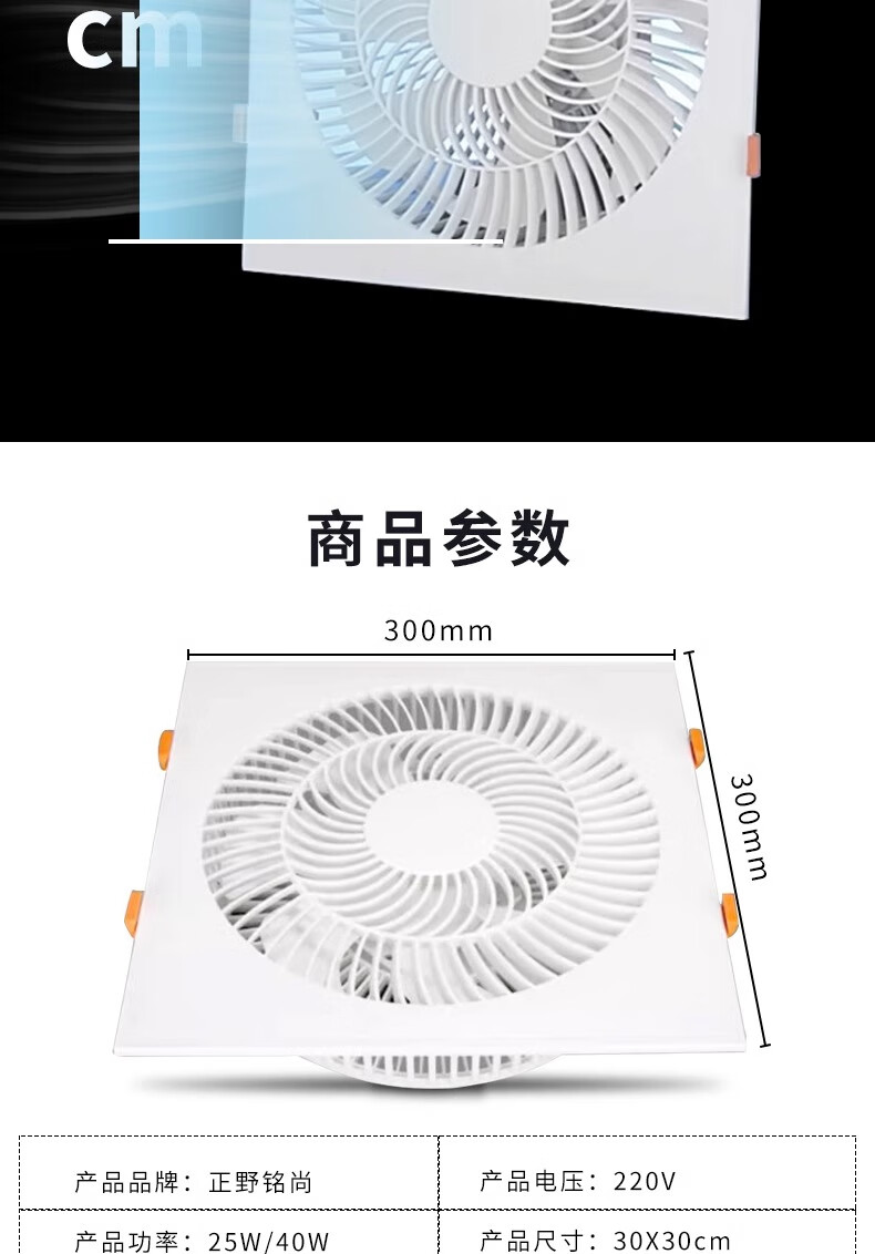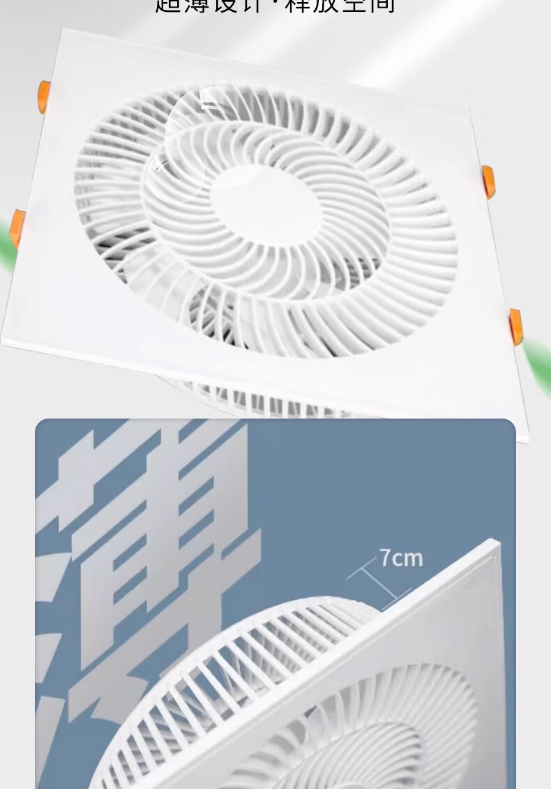Zhengye Mingshang Zhengye Mingshang ultra-thin 7cm kitchen cooler embedded bathroom integrated ceiling blower ceiling cooling fan丨30x30丨Direct blowing three speeds without switch clasp丨Universal ceiling style