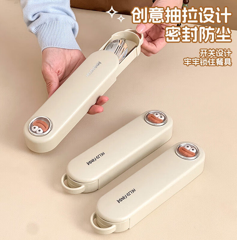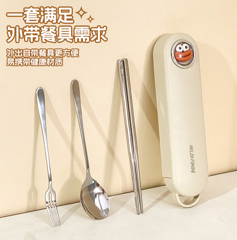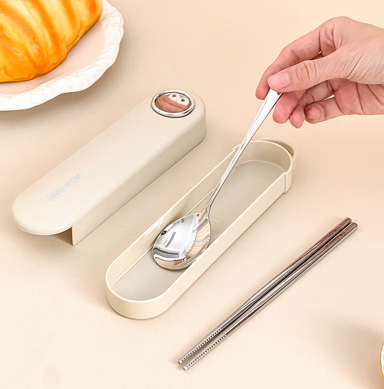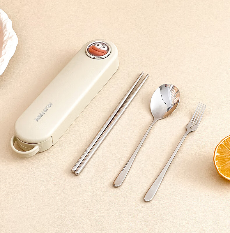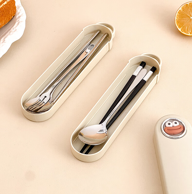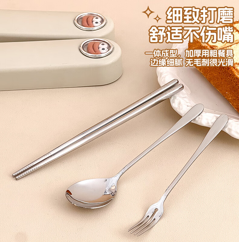 WORTHBUY 316 stainless steel chopsticks and spoon set portable tableware three-piece set for children and primary school students special take-out storage box 304 chopsticks + spoon + box
