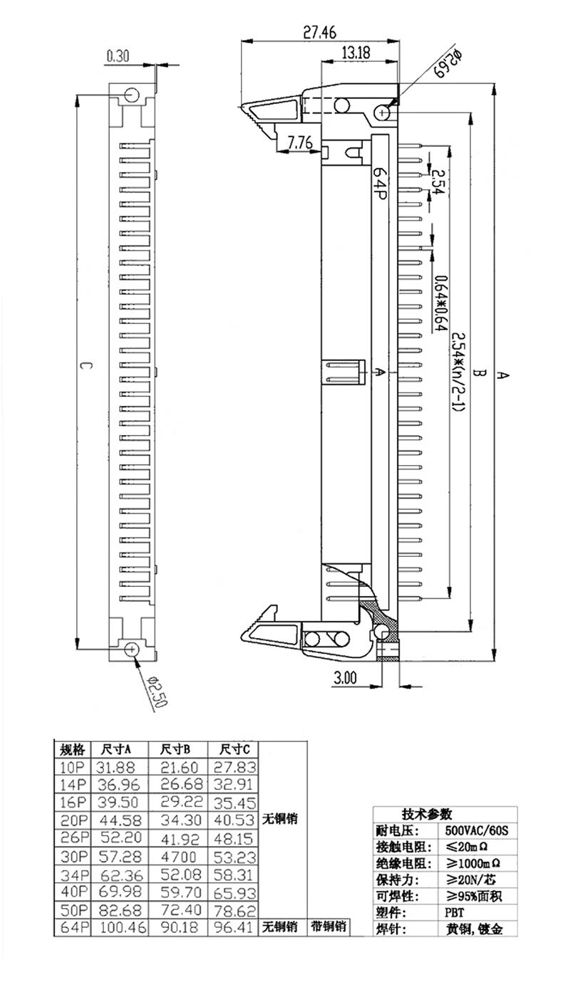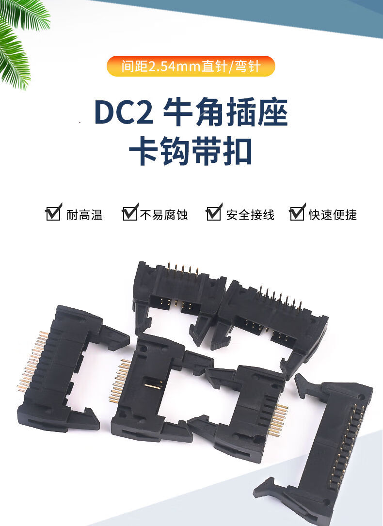 DC2 horn socket 10P/14/16/20/26/34/40P straight pin curved pin horn socket 2.54mm with buckle DC2-10P straight pin (5 pieces)
