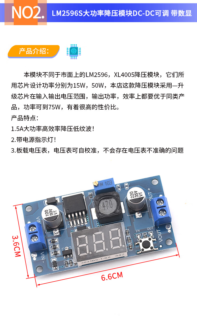 LM2596S DC-DC DC adjustable buck-stabilized constant current power supply module 3A with digital display 3.3V5V12V LM2596 DC-DC adjustable with digital display