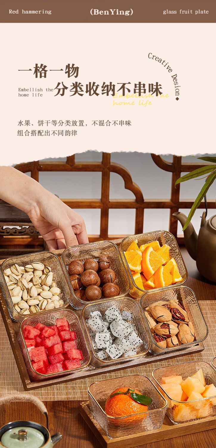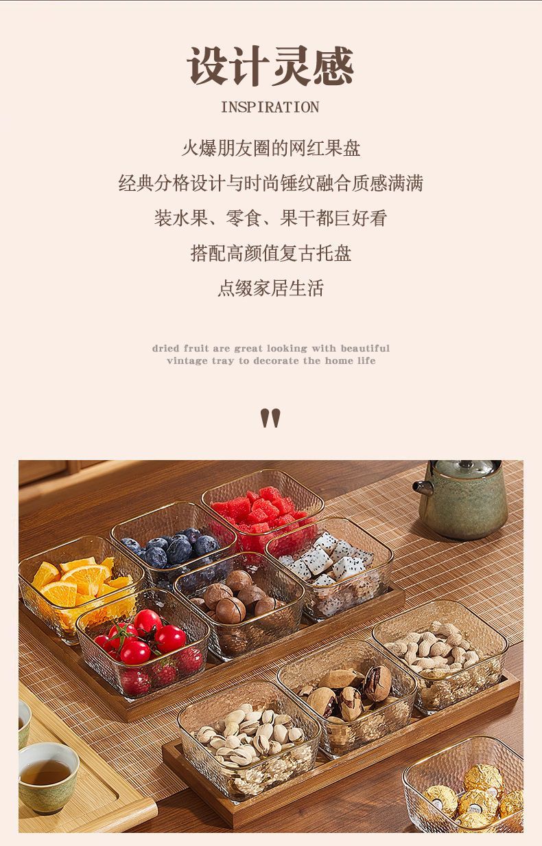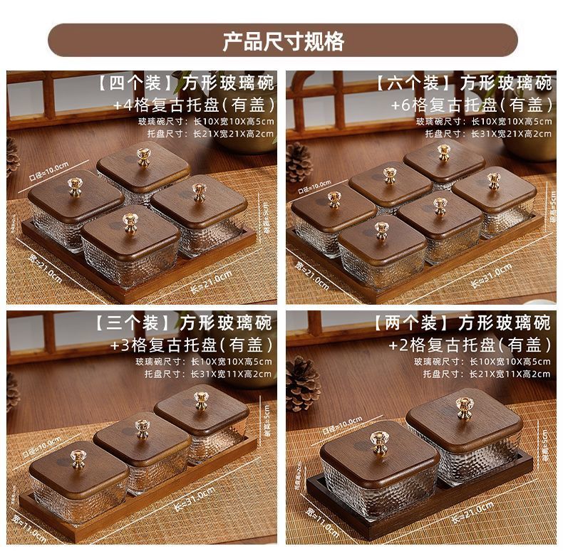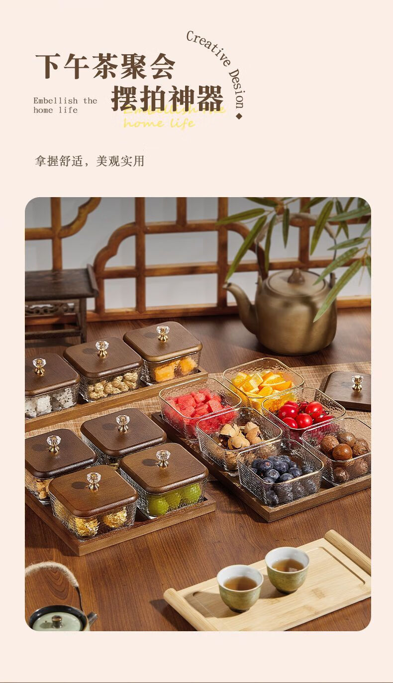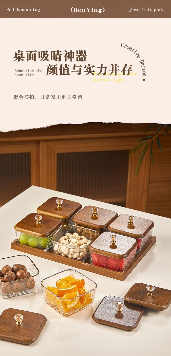Honsakura Retro Dried Fruit Plate New 2026 High-Looking Melon Seed Candy Fruit Plate New Year Living Room Nut Storage Box Fruit Plate Walnut Color Cover Transparent 6 Pieces + Retro Tray