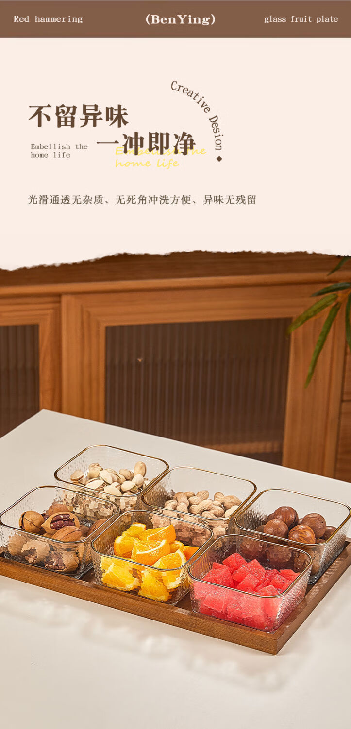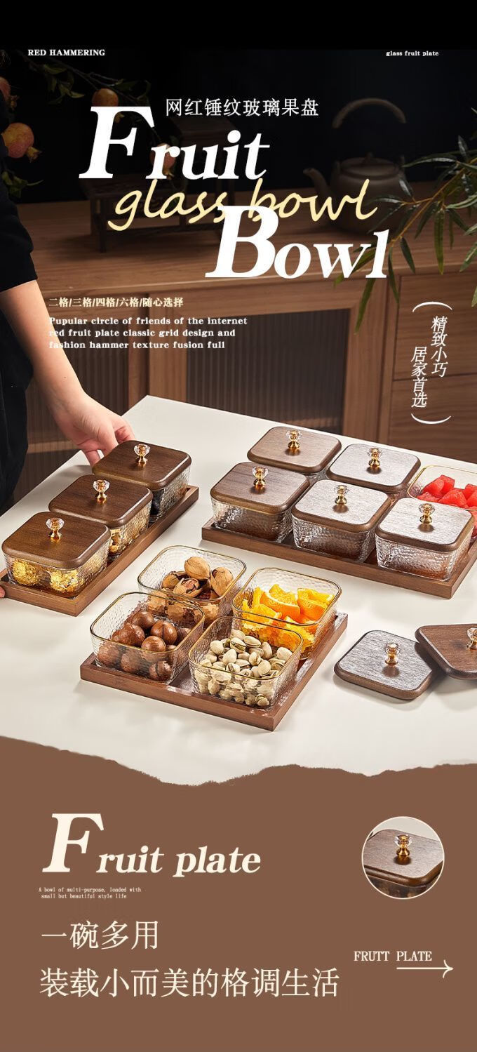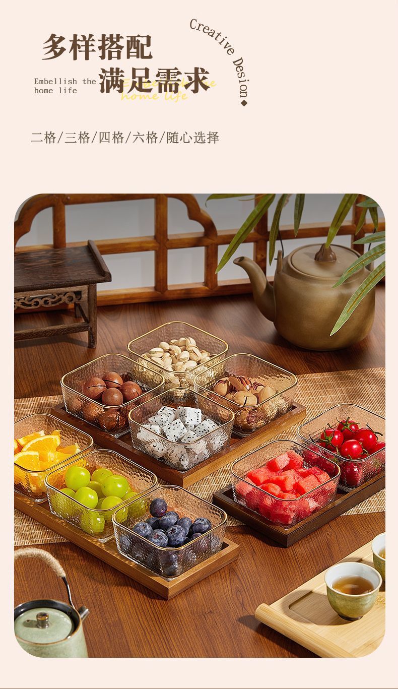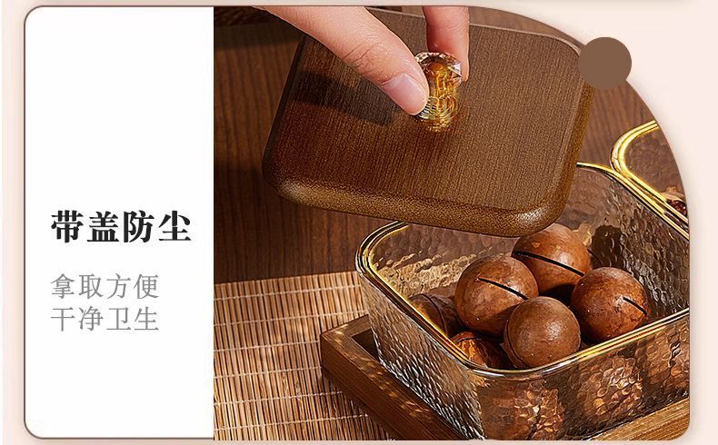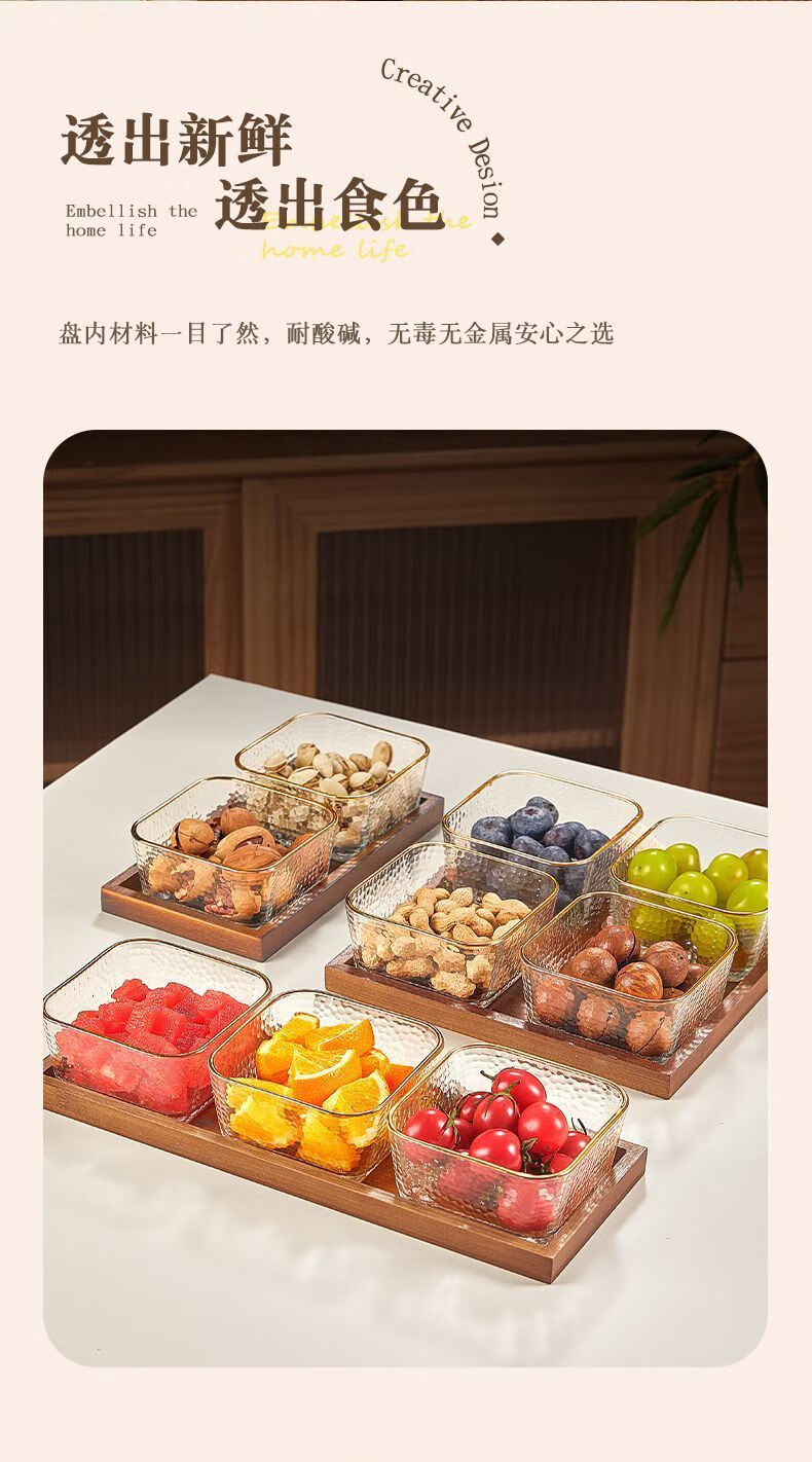 Honsakura Retro Dried Fruit Plate New 2026 High-Looking Melon Seed Candy Fruit Plate New Year Living Room Nut Storage Box Fruit Plate Walnut Color Cover Transparent 6 Pieces + Retro Tray