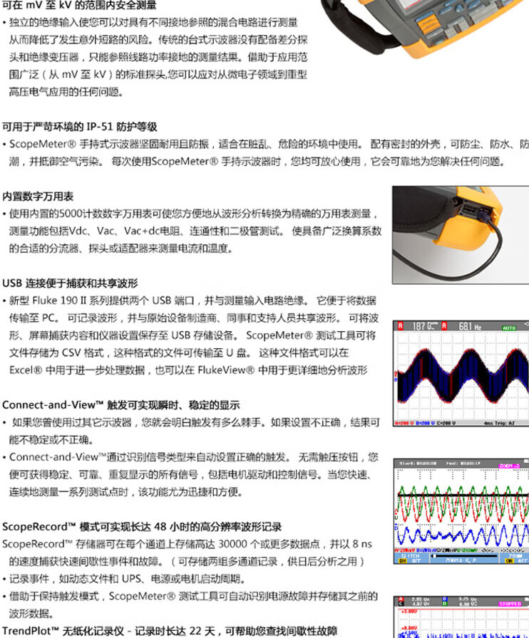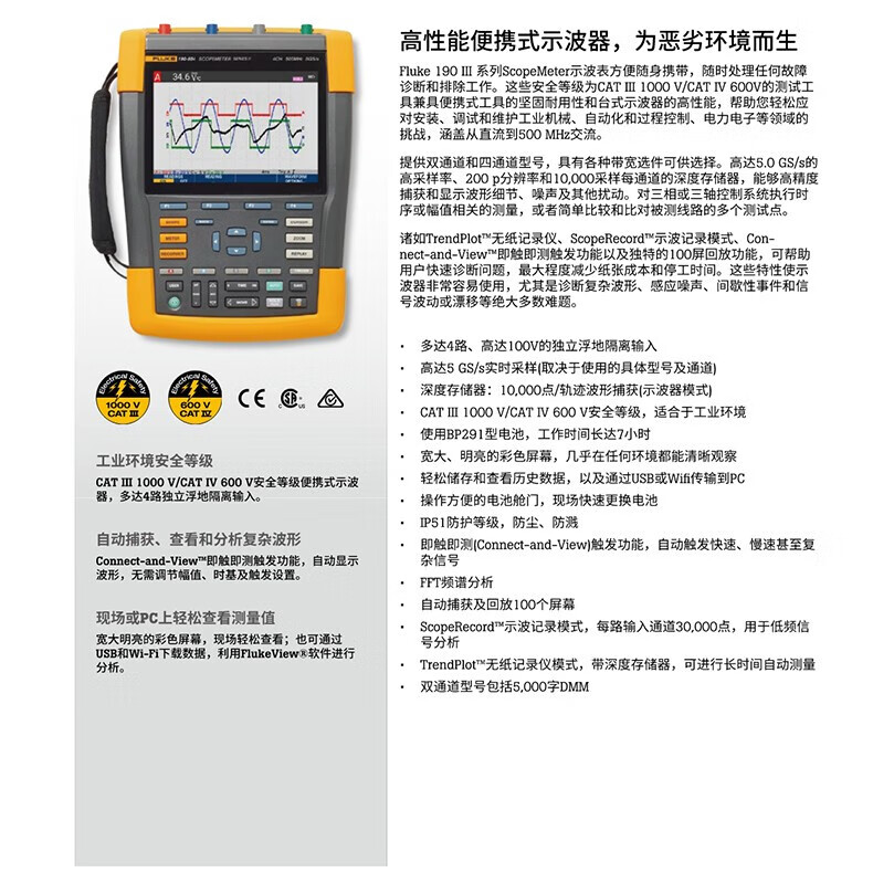 Oscilloscope 190II series high-precision handheld digital oscilloscope FLUKE-190-062-III