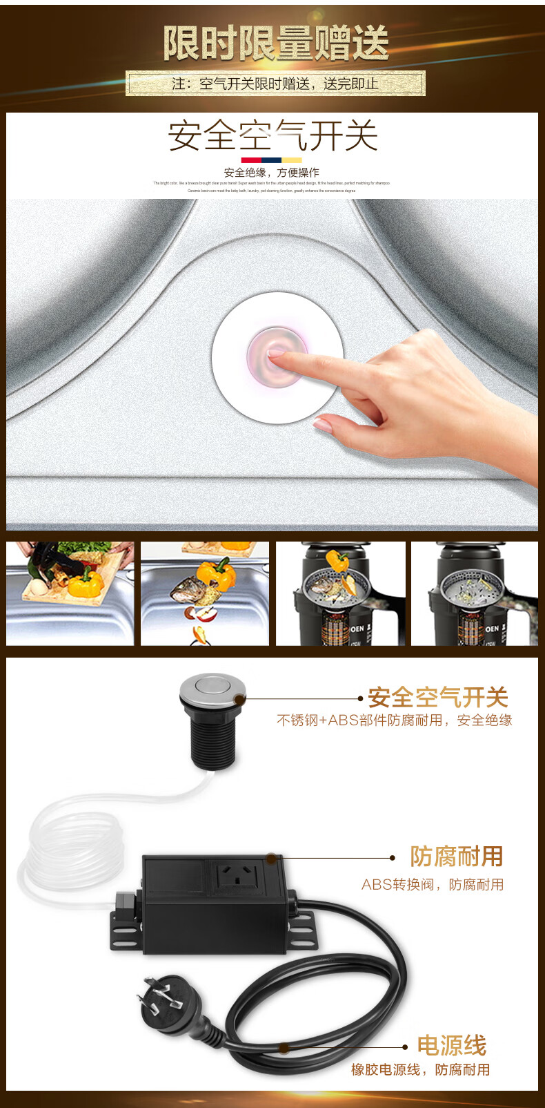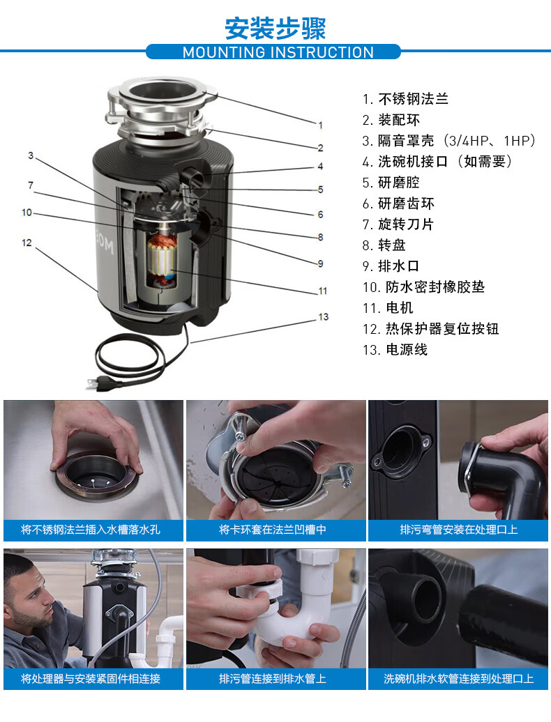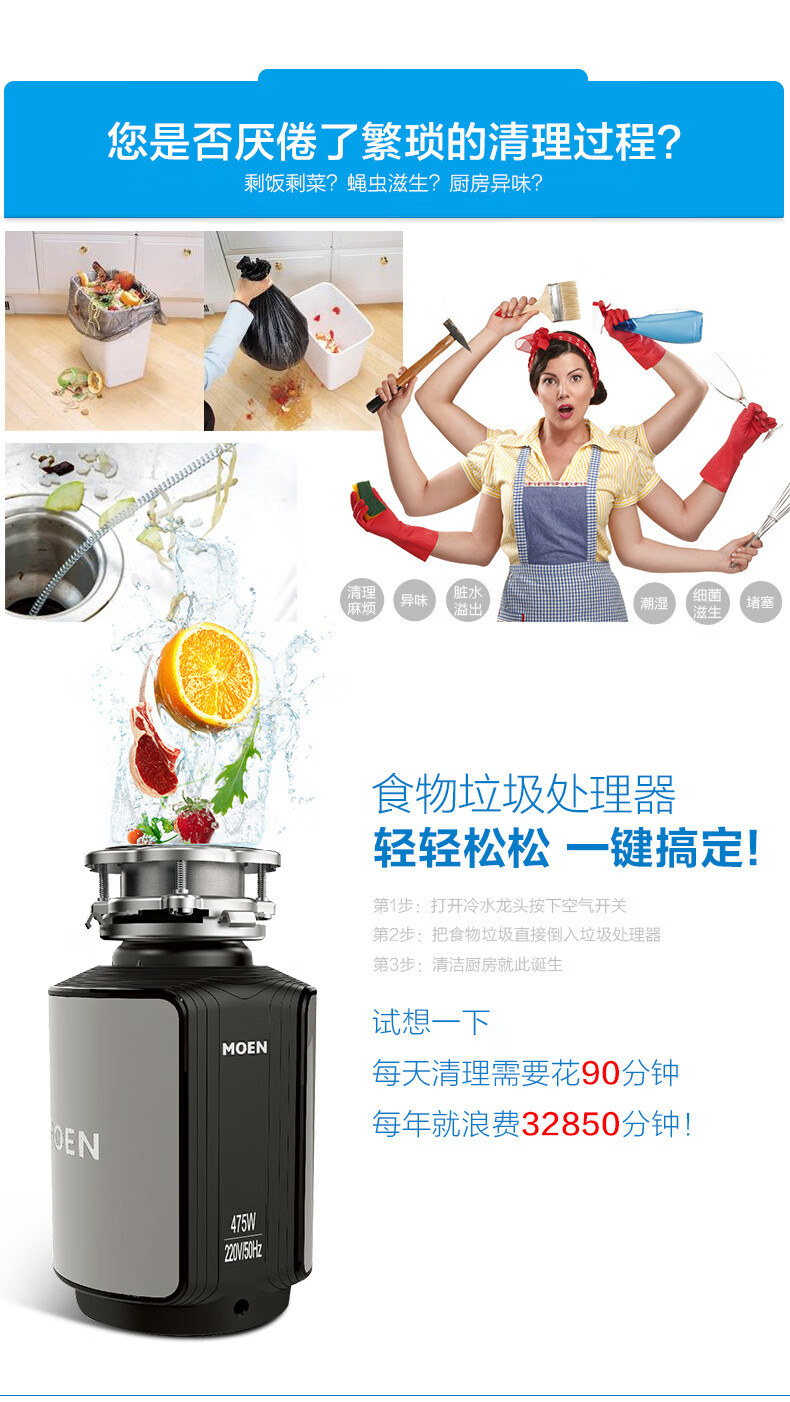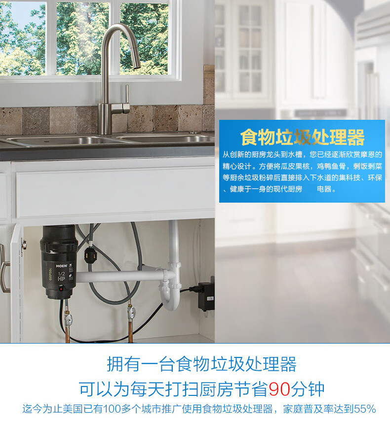MOEN Home Kitchen Food Waste Disposer Sink Kitchen Waste Crusher Bone Crusher Silent Package Installation Sensor Remote Switch (Old Model)