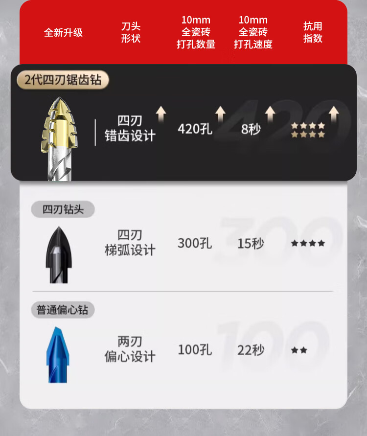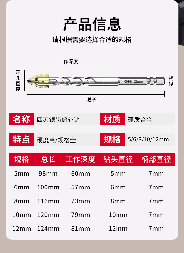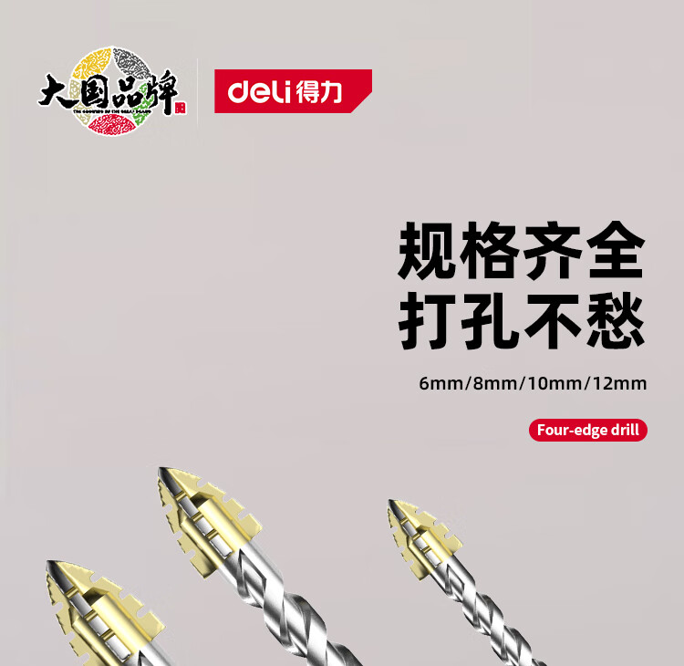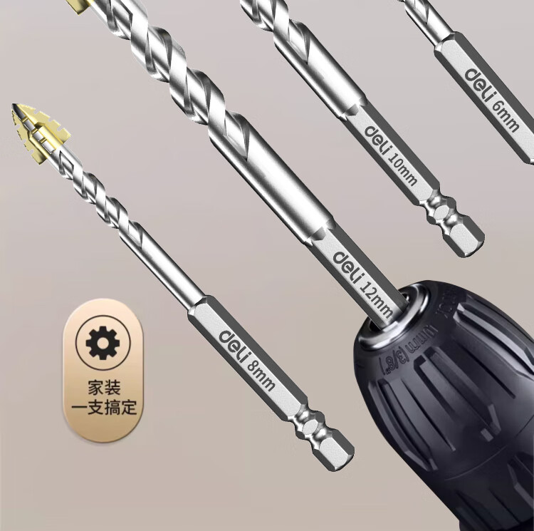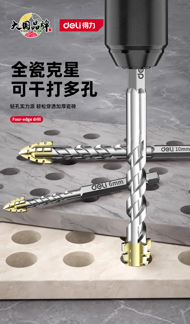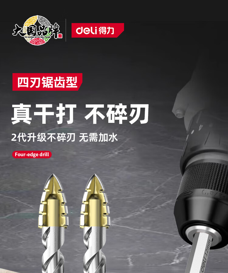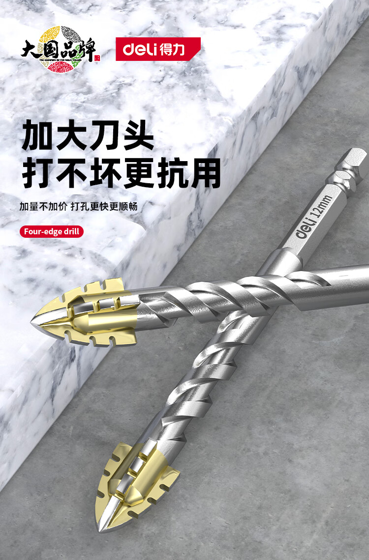 Deli four-edged serrated multi-functional eccentric drill bit tile concrete opening alloy glass electric drill drilling set four-edged serrated drill 6mm 2 pieces