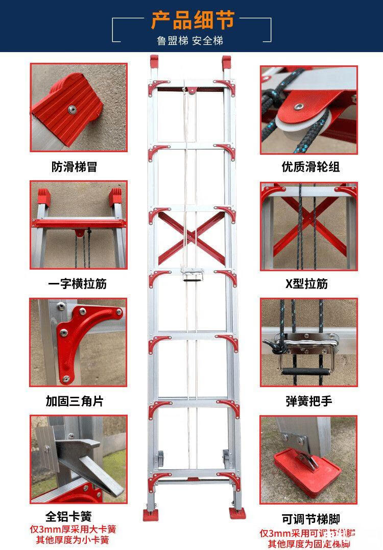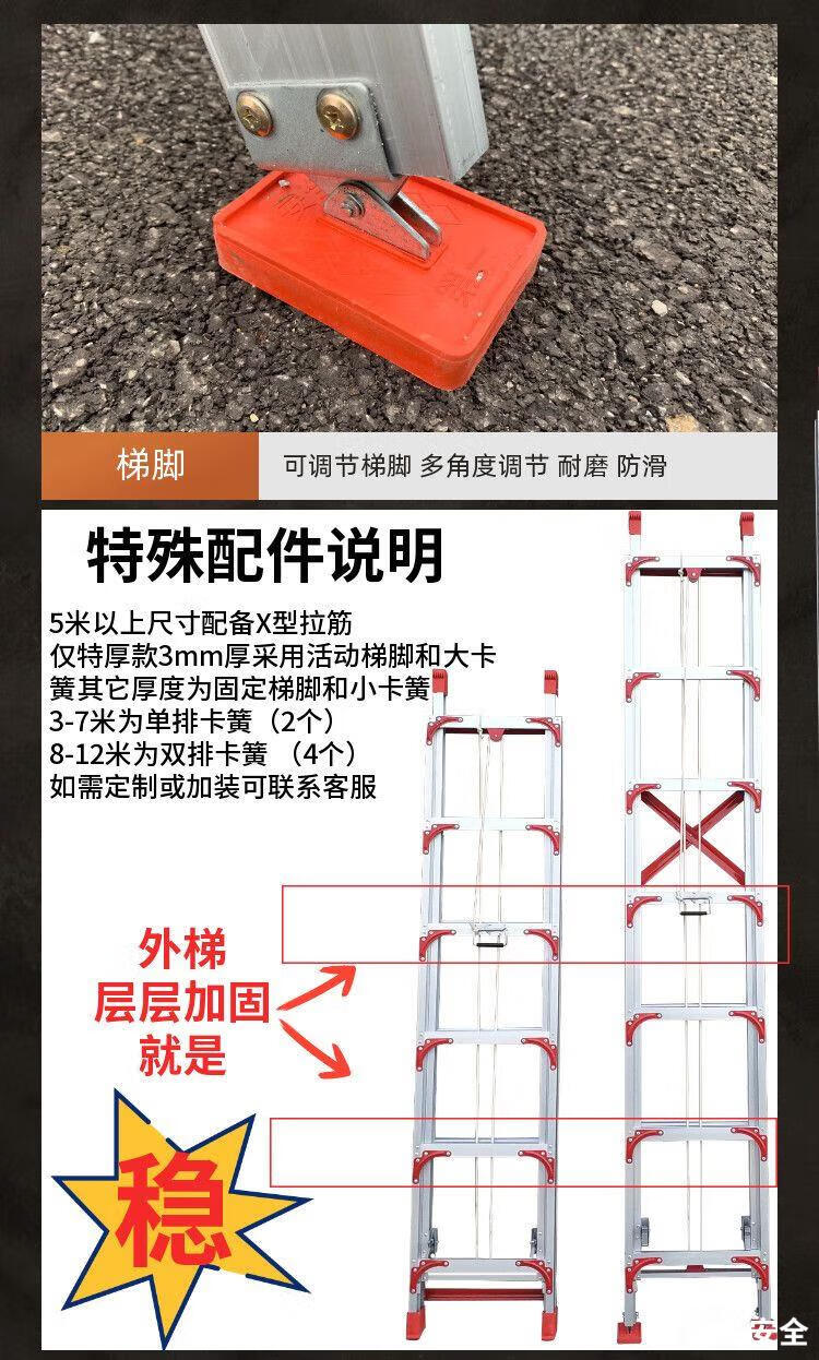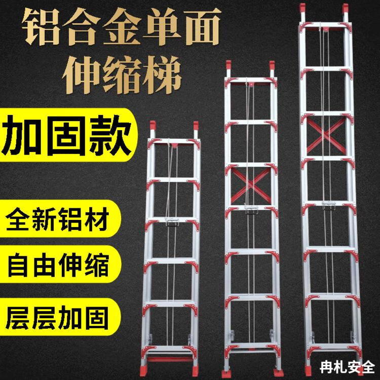 Stable ladder telescopic straight ladder thickened aluminum alloy lifting household attic staircase 4-12 meters single-sided project standard 6 meters use height 5.5 meters 1.5mm telescopic straight ladder