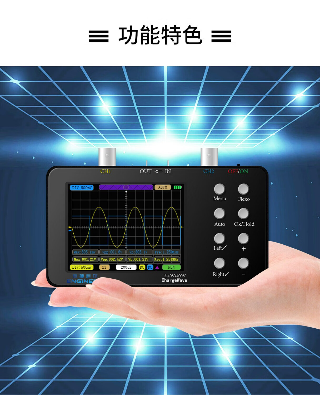 Jiangli high-performance dual-channel handheld small portable digital oscilloscope 50M sampling rate current oscilloscope mobile phone repair package 2