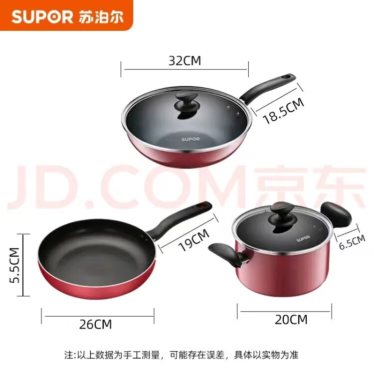 Supor Aijia three-piece wok, soup pot and frying pan set T0933T1360 two non-stick pans 0933T three-piece set Supor genuine products please buy the whole box