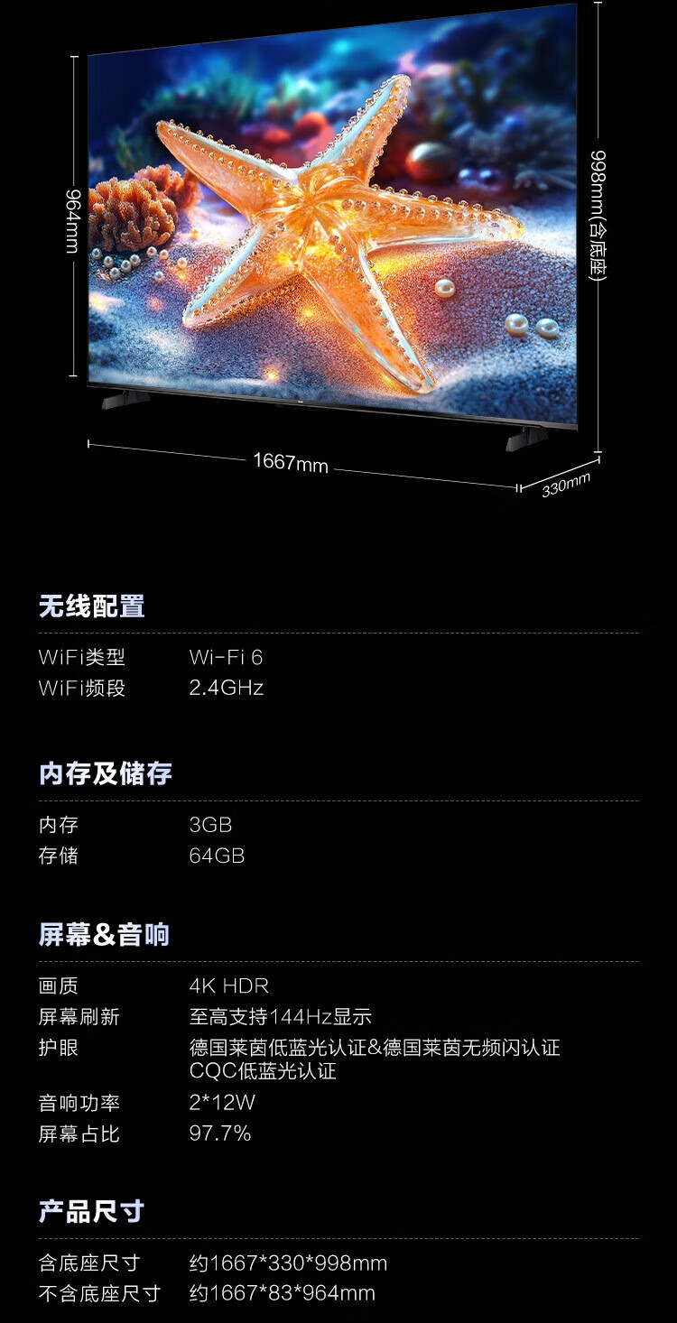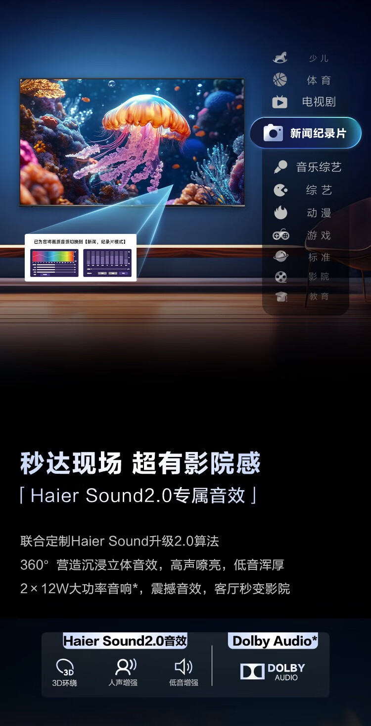 Haier TV 75/65/55/85-inch H5C Xiaohonghua series voice control 4K ultra-high definition 144Hz refresh rate 3+64GB ultra-thin smart flat-panel first-class energy efficiency TV 65 inches new product launch first-class energy efficiency +3+32G 144HZ